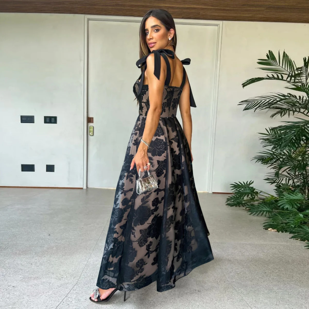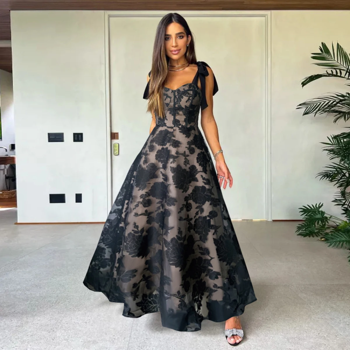 MQTIME - New Summer Elegant Solid Lace Women Dress Strapless Suspender Hook Flower Hollow Long Dress Evening Party Chic Female Clothing