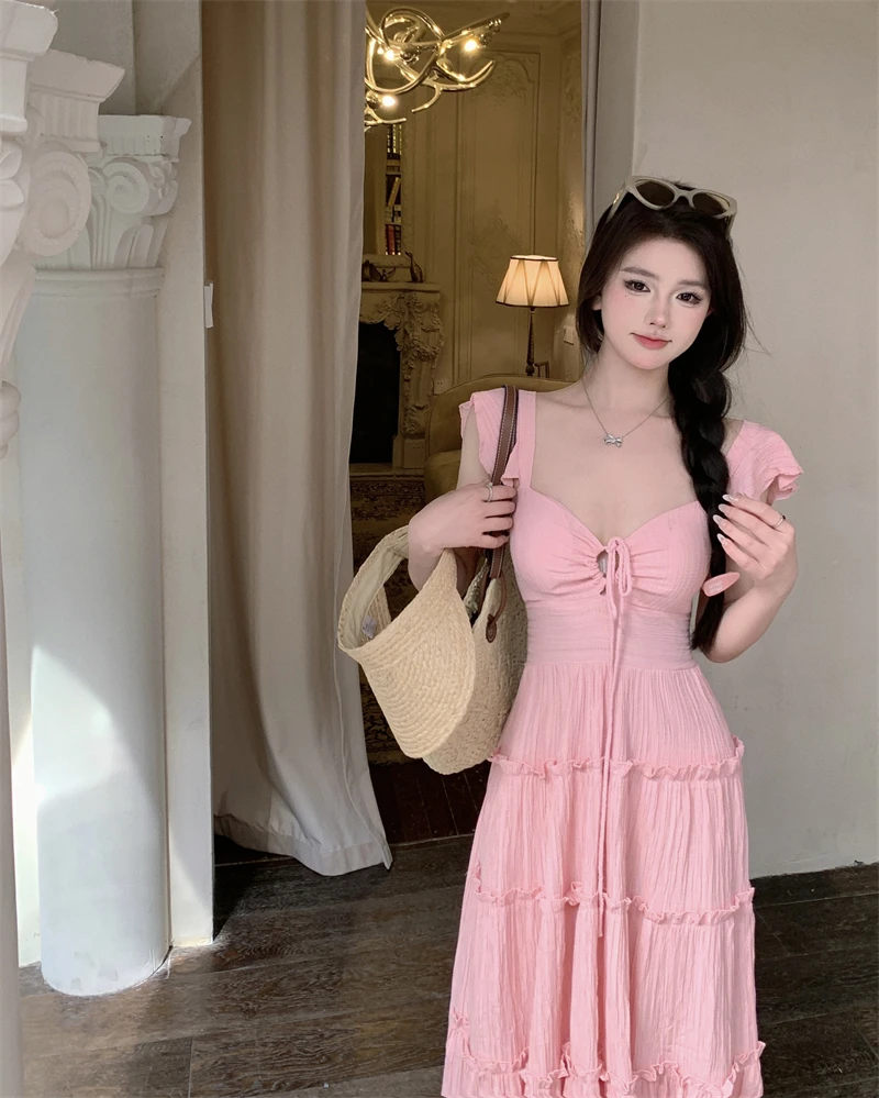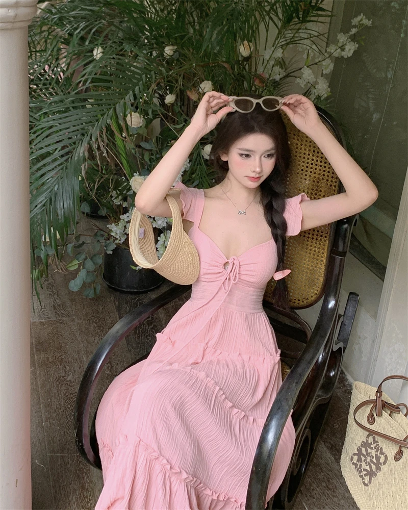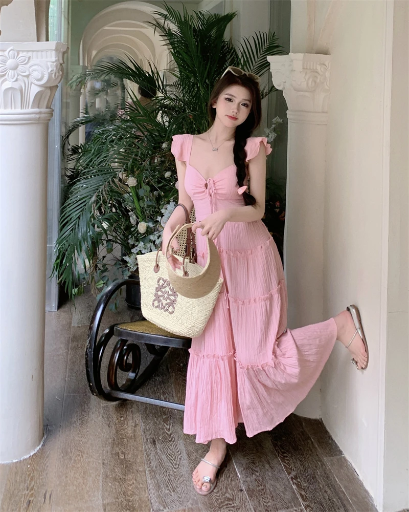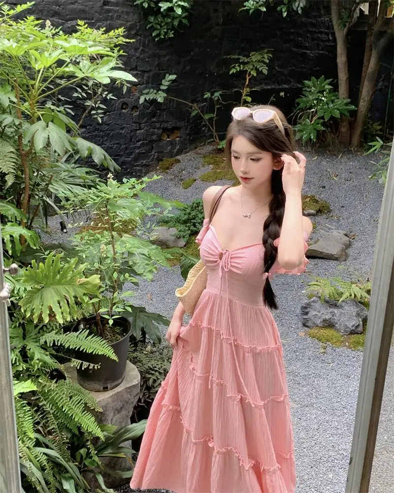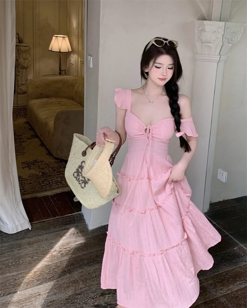 MQTIME - New Summer Long Dresses for Women Off Shoulder A-line Ruched Korean Fashion Holiday Beach Style Sexy Party Dress Robe Vestido