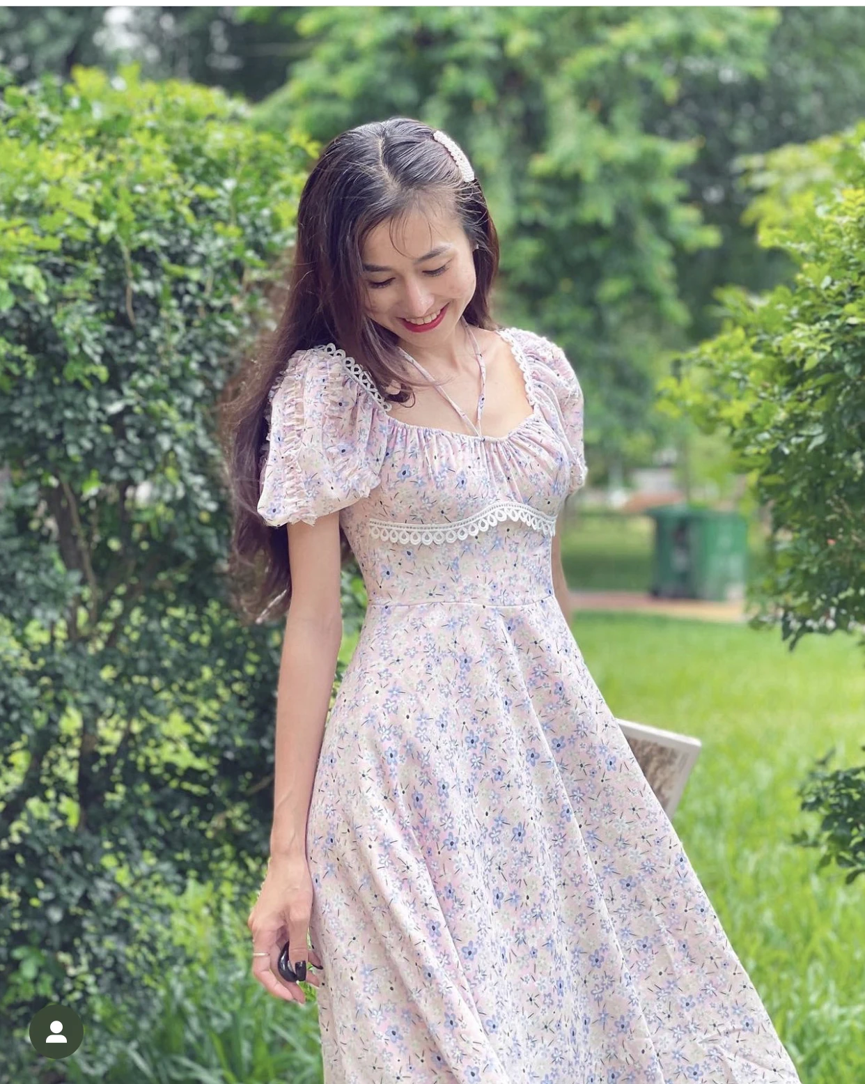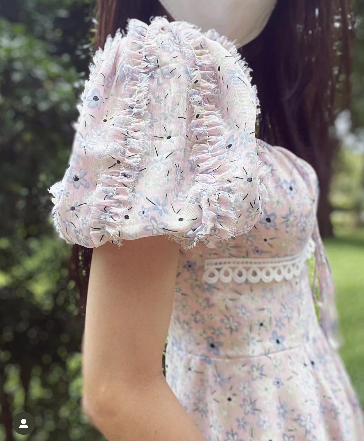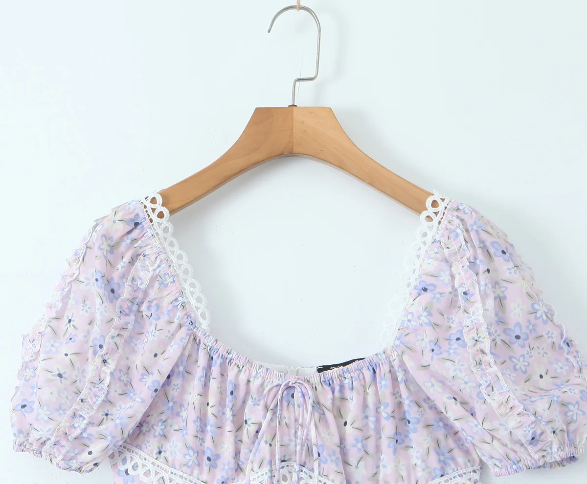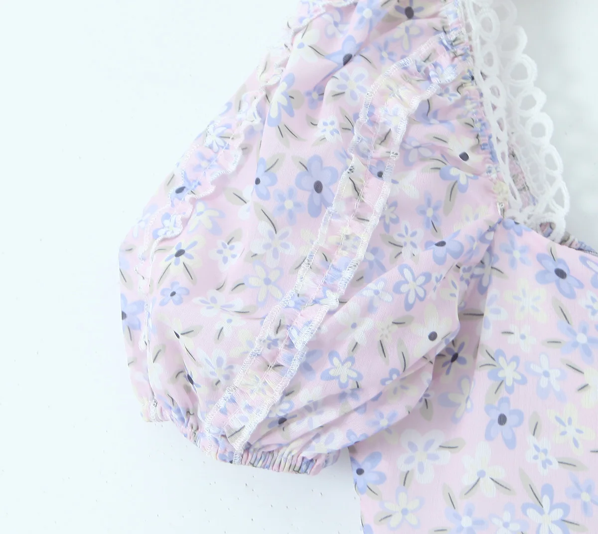 MQTIME - New Summer Print Puff Sleeve Square Collar Split High Waist Long Women Dress