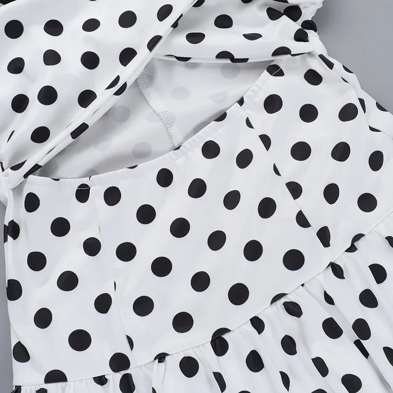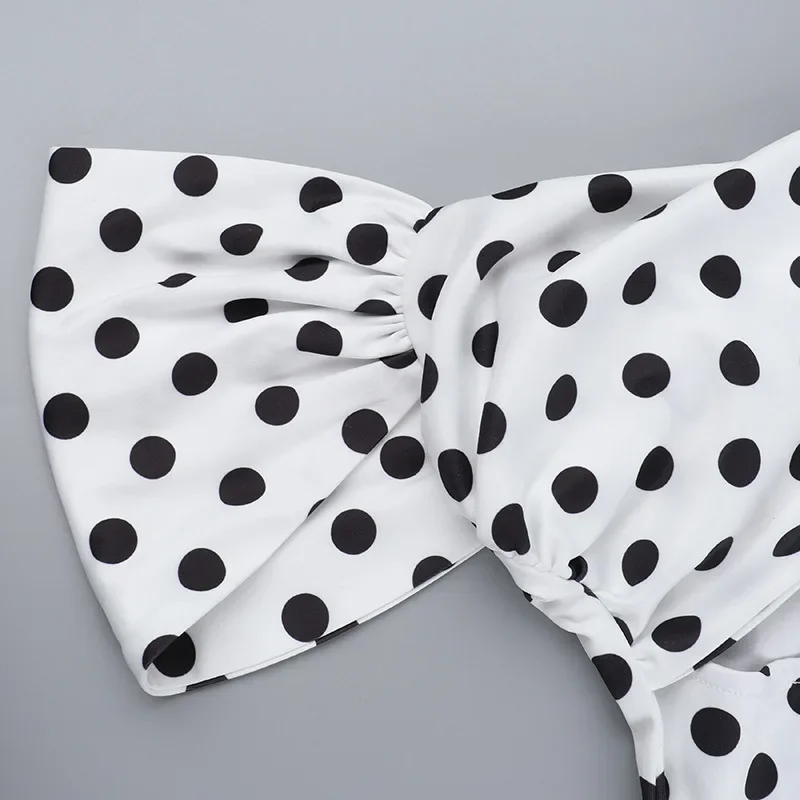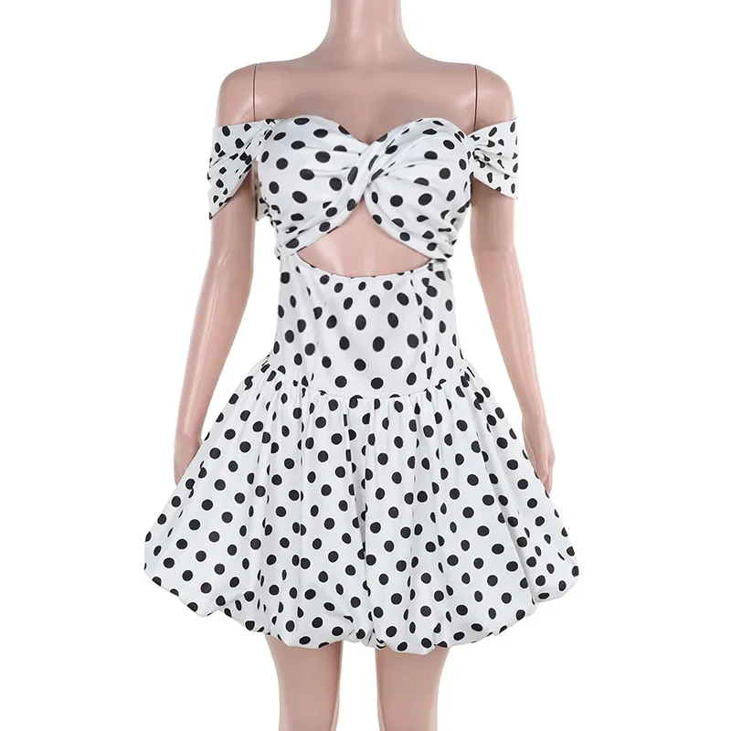 MQTIME - Off Shoulder Spotted Dress For Women Slim Sexy Hollow Sleeveless Tube Top Dresses Club Sexy Backless Ruffle Dress Femme
