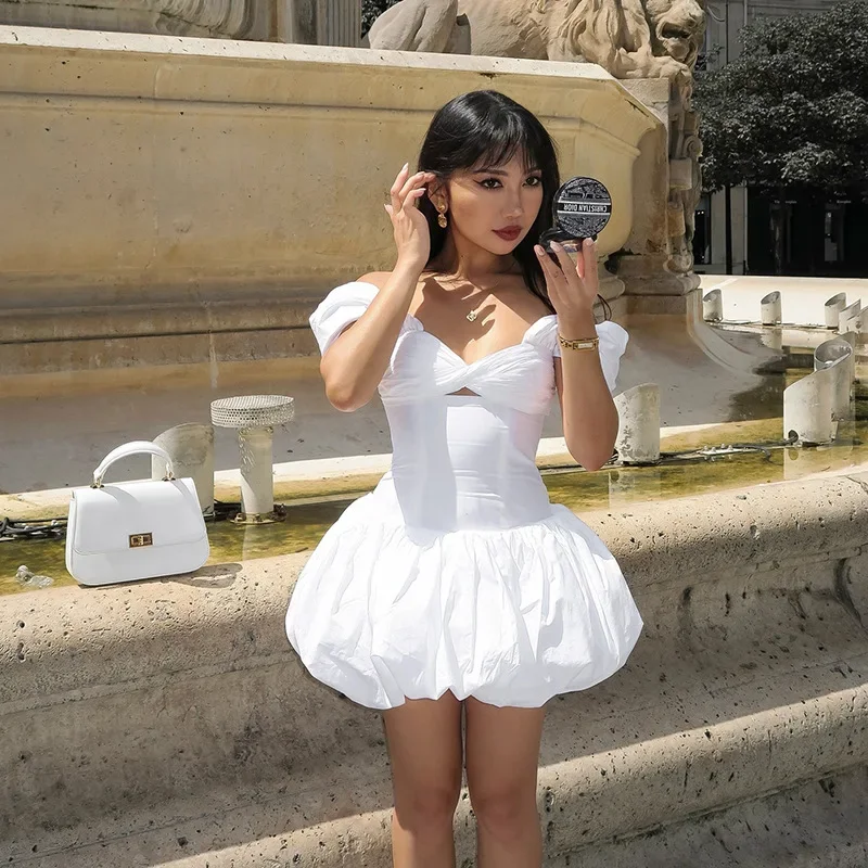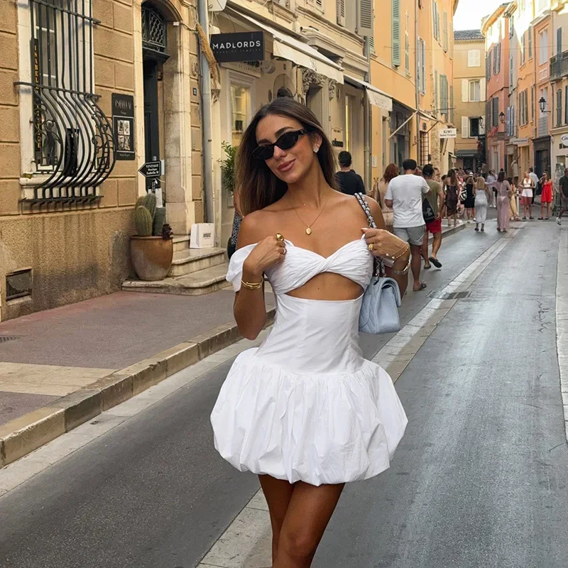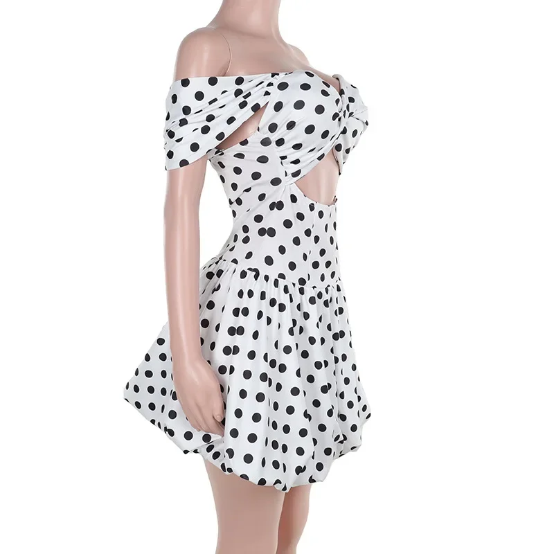 MQTIME  -  Off Shoulder Spotted Dress For Women Slim Sexy Hollow Sleeveless Tube Top Dresses Club Sexy Backless Ruffle Dress Femme