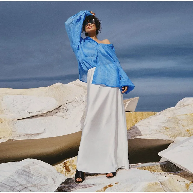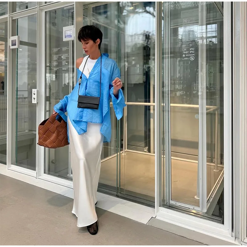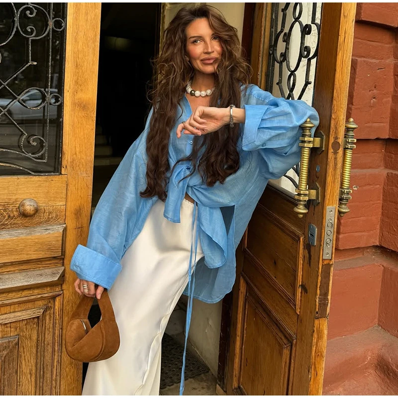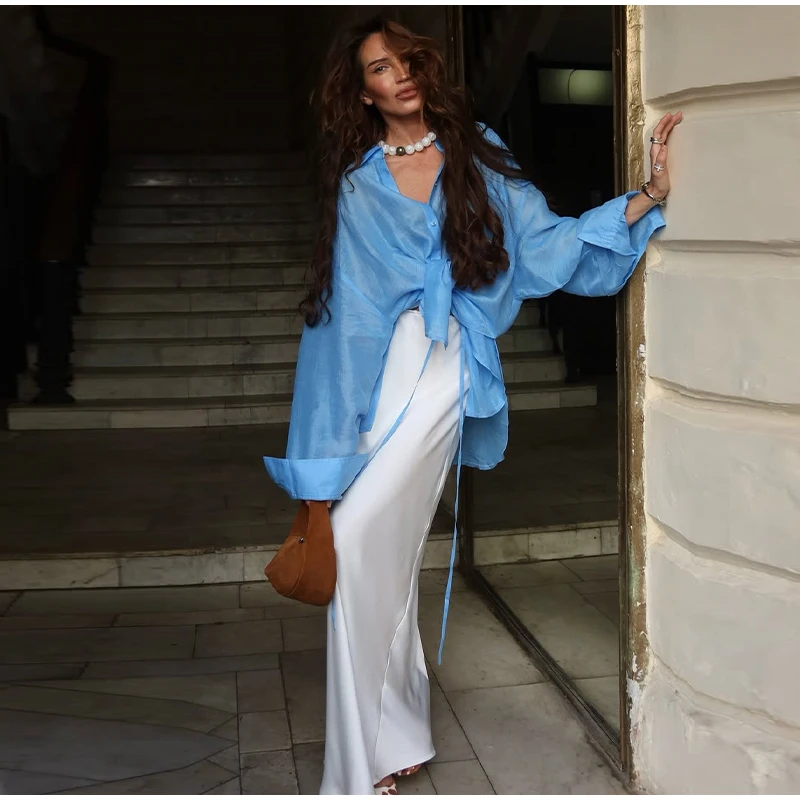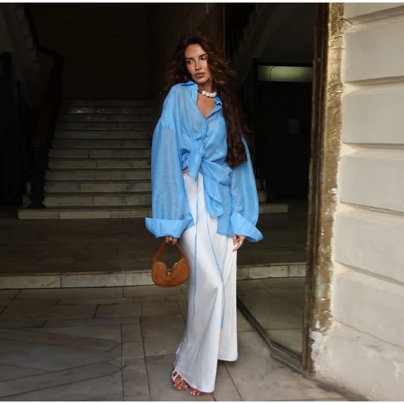 MQTIME - Oversized Women's Sheer Casual Shirt Blouse Draped Long Sleeve Lapel Loose Fit Outerwear New Casual Daily Streetwear Outfit
