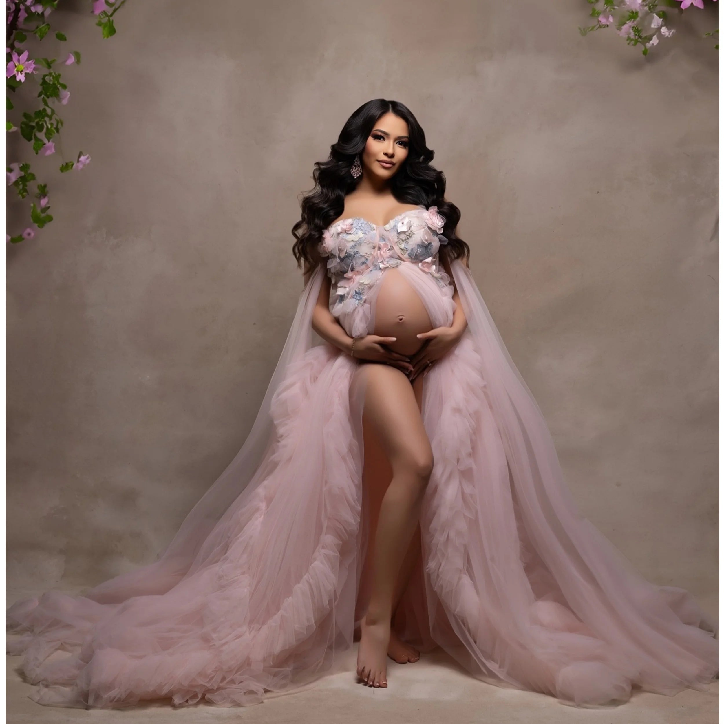 MQTIME - Pink Maternity Dresses for Photography Sexy Lace Appliques Pregnant Prom Dress Elegant Customized Babyshower Gowns