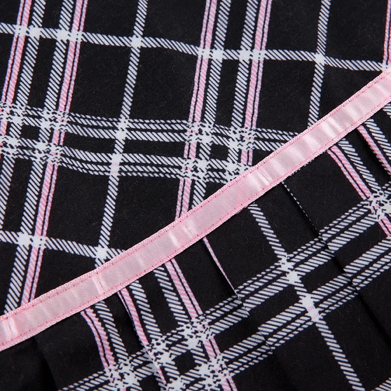 MQTIME  -  Pink Ribbon Bow Plaid A-line Pleated Mini Skirt Short Skirts @e-girl harajuku fairycore 2000s grunge goth aesthetic korean cloth