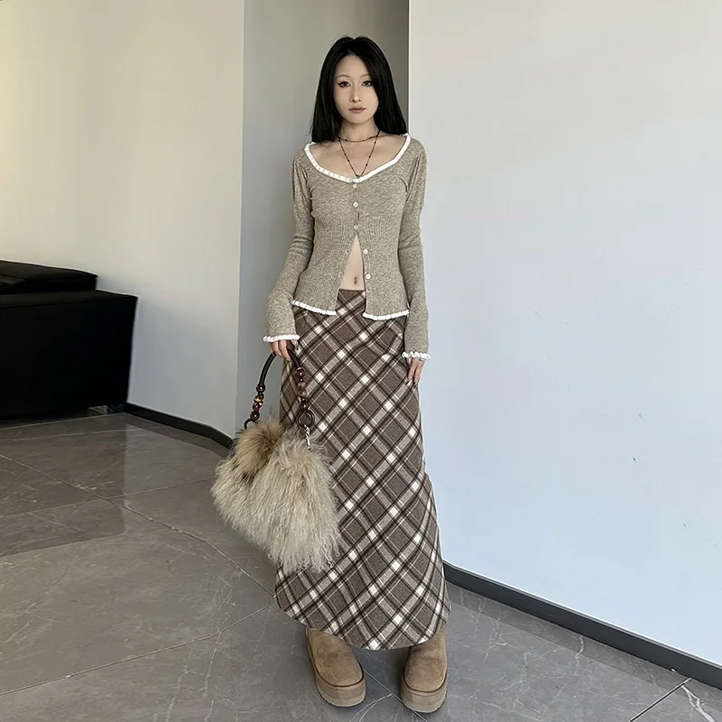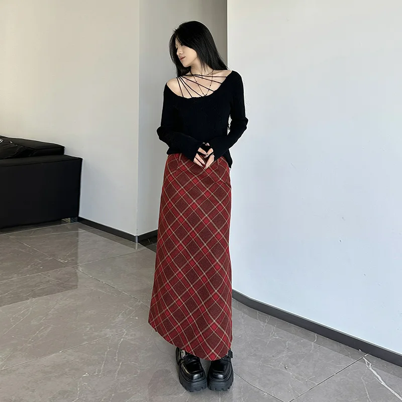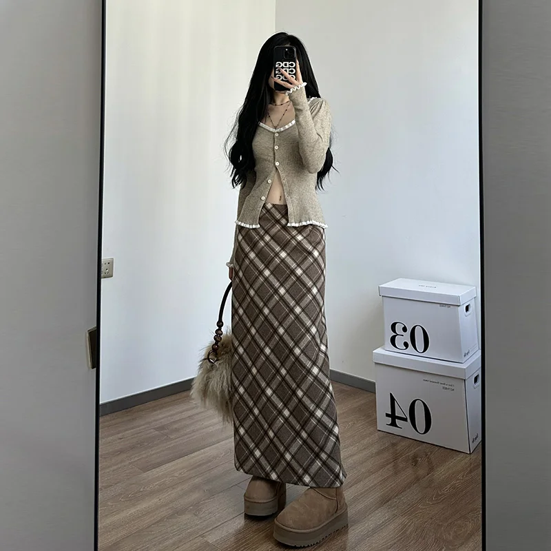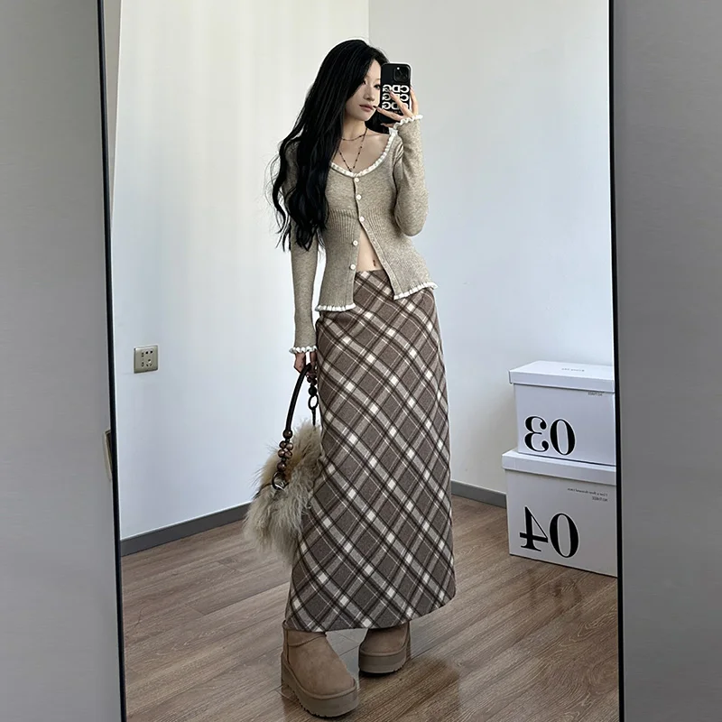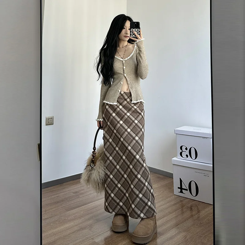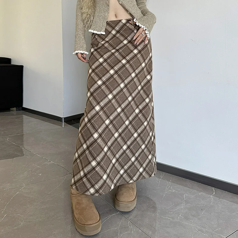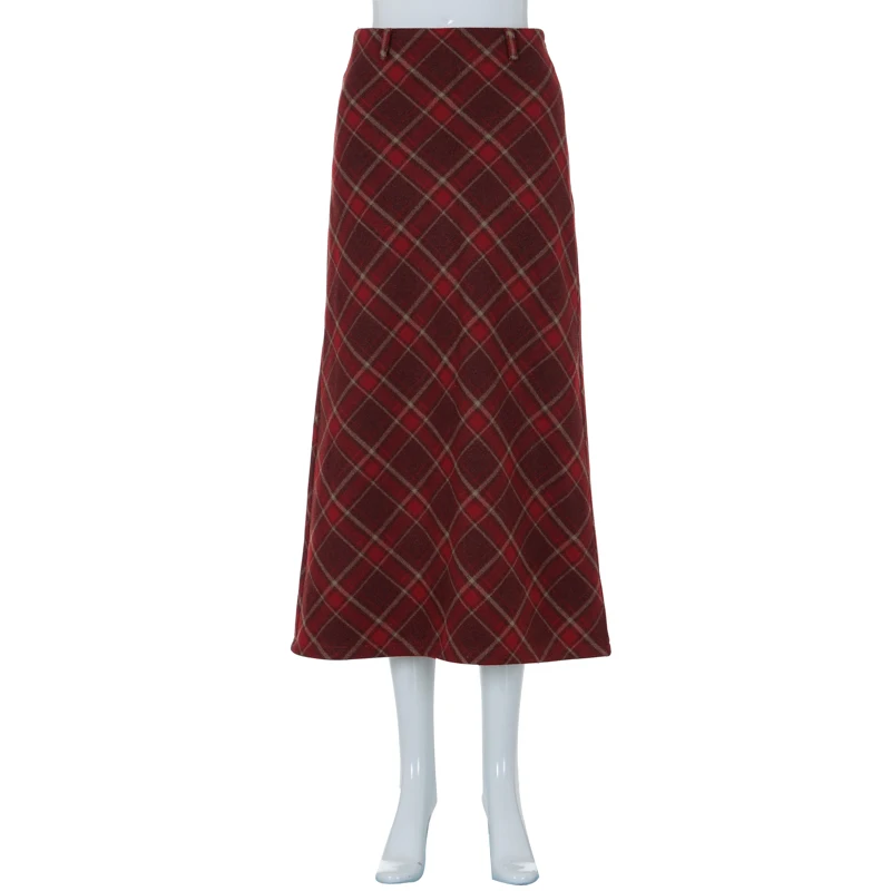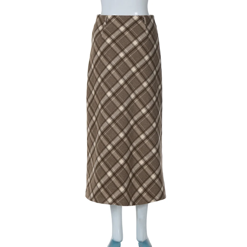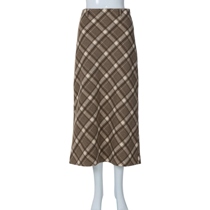 MQTIME - Plaid Pattern Zipper Side High Waist Women'S Skirts Winter Y2K Casual Party Fashion Daily Clothing