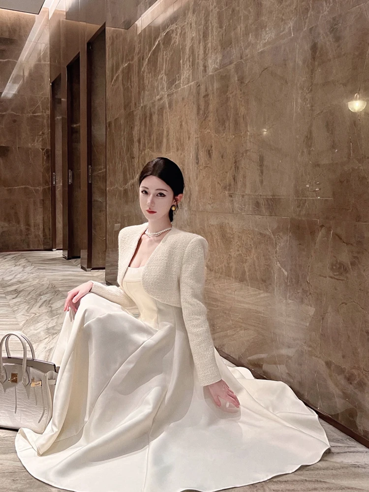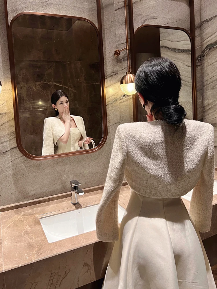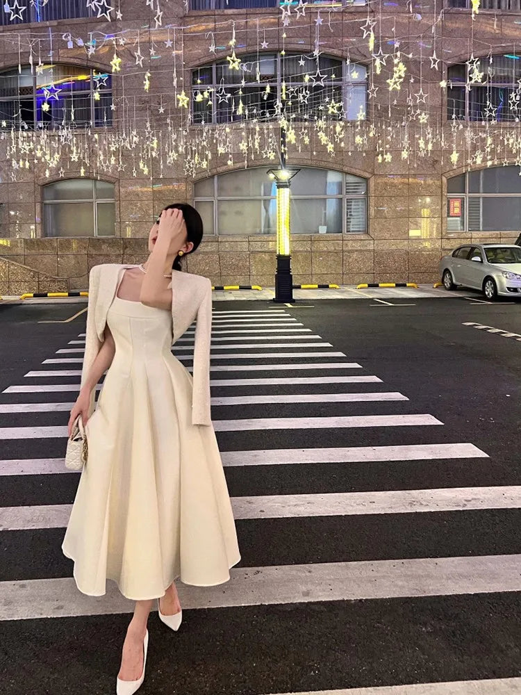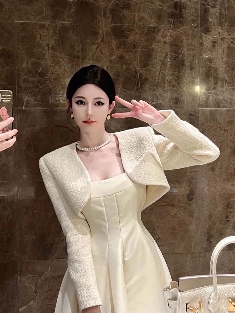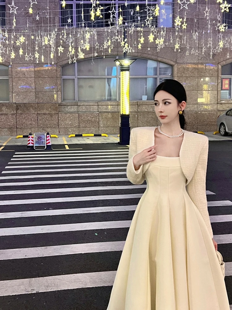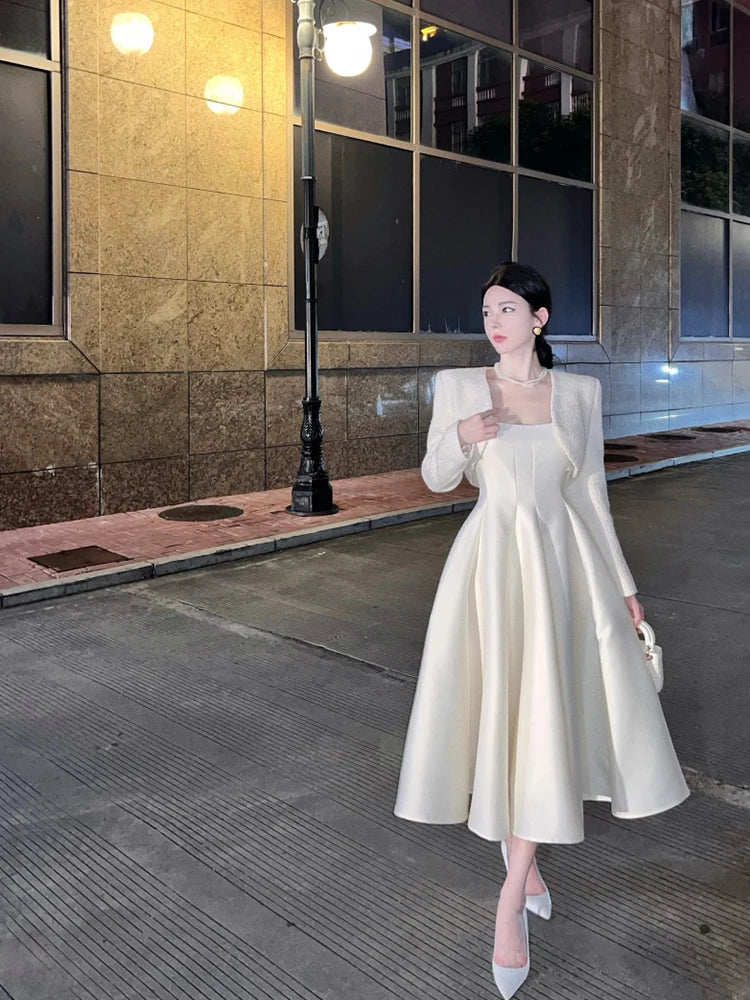MQTIME - Plus Size Ele Ladylike ort Coat Dr Set plus Size Autumn Long A-Line Skirt Formal Wear Korean Sle High Waist Long Sve