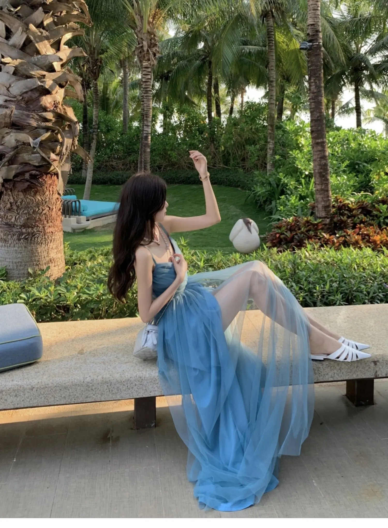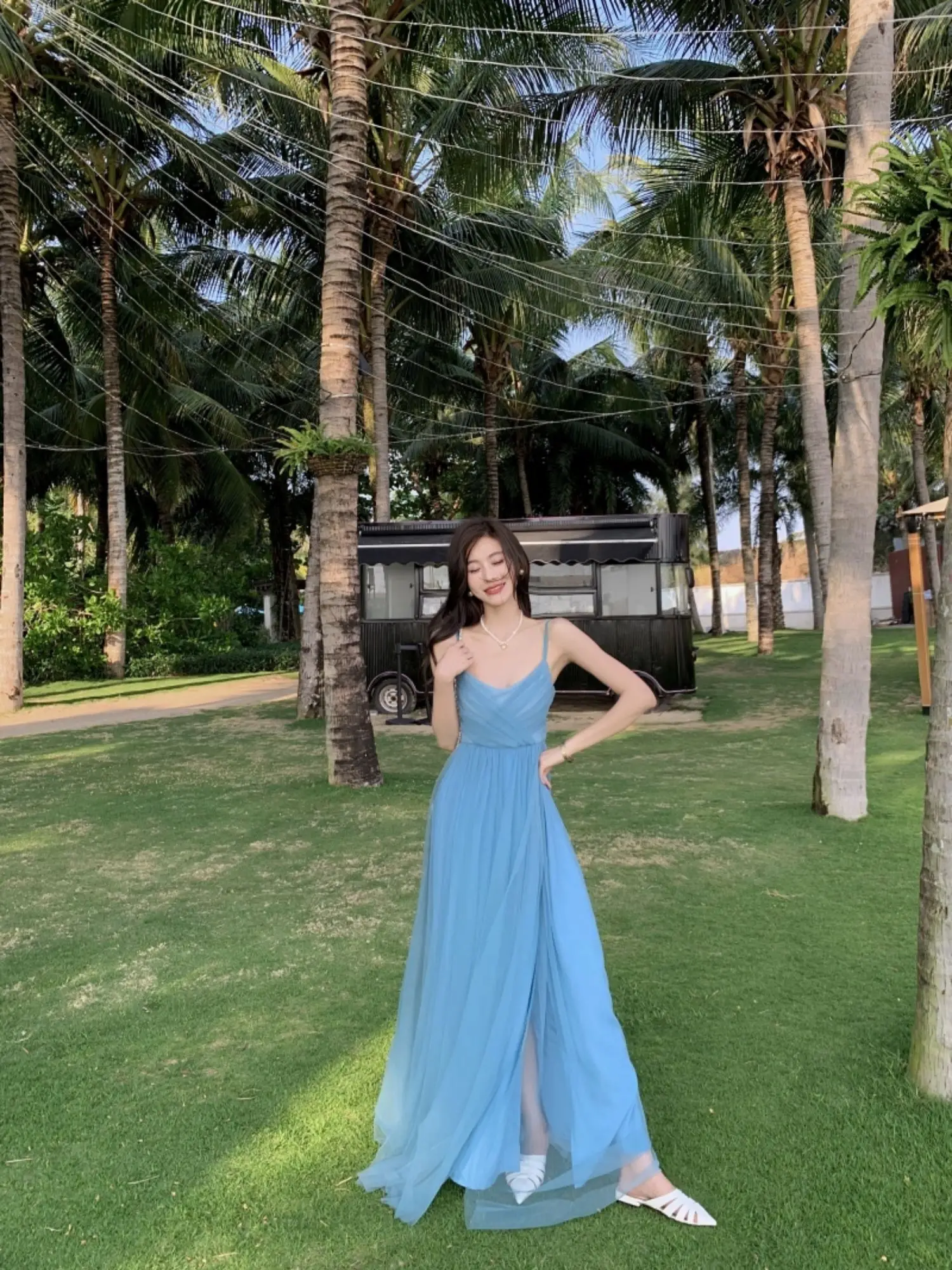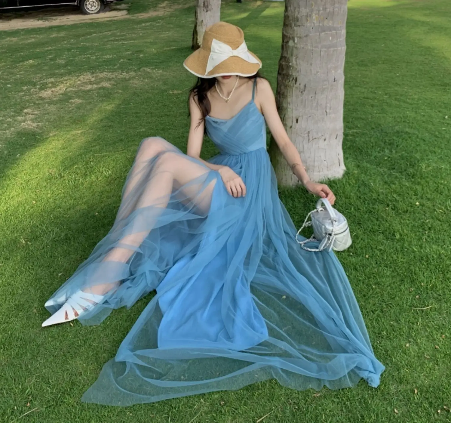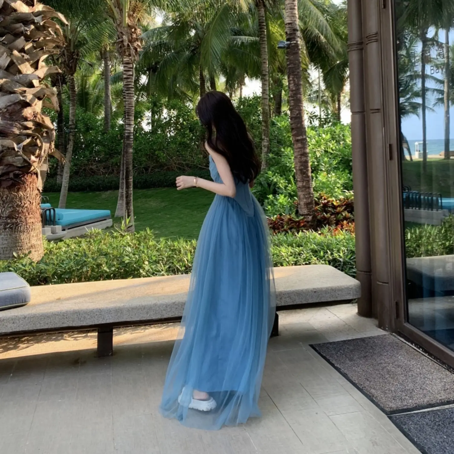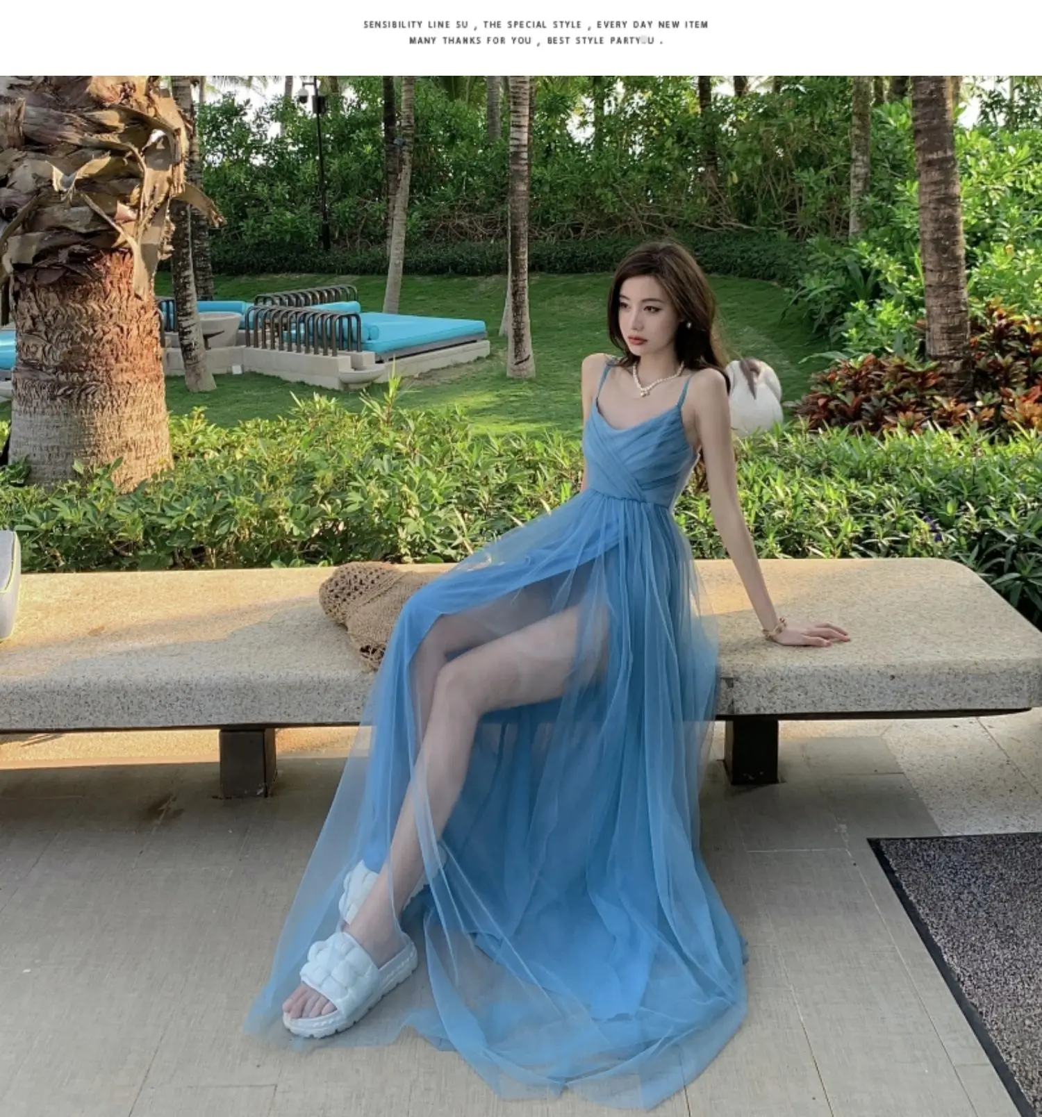 MQTIME - Plus Size Sweet n Sle Maxi Dr Women's Sexy Slit Beach Holiday Long Skirt Bali Beach Dr High Waist V-Ne Svel A-Li...