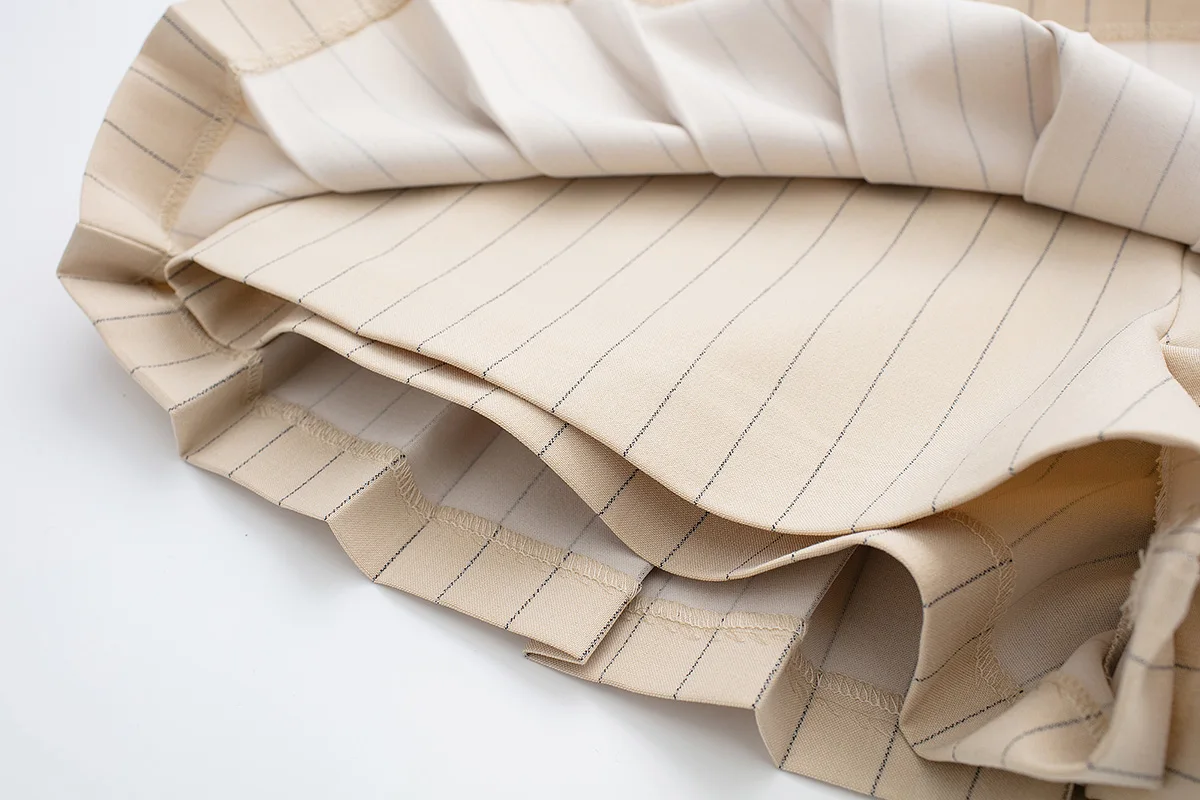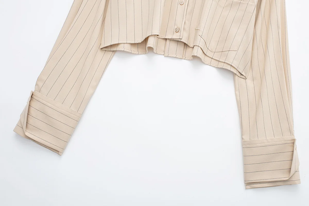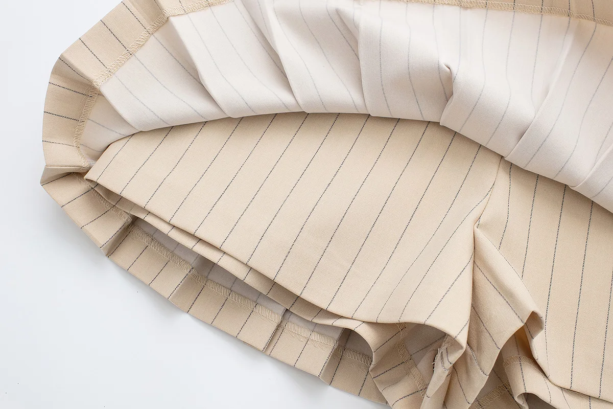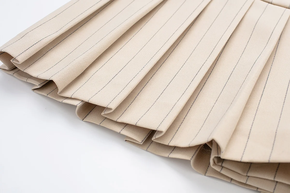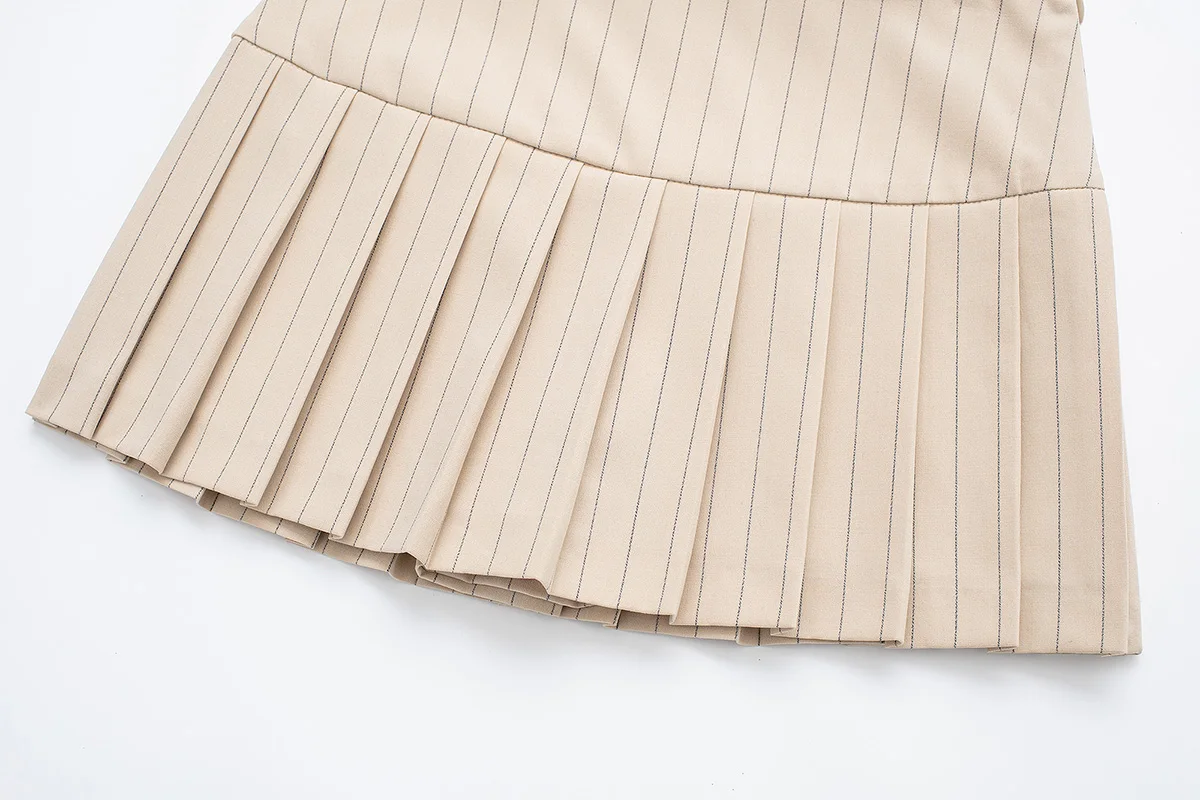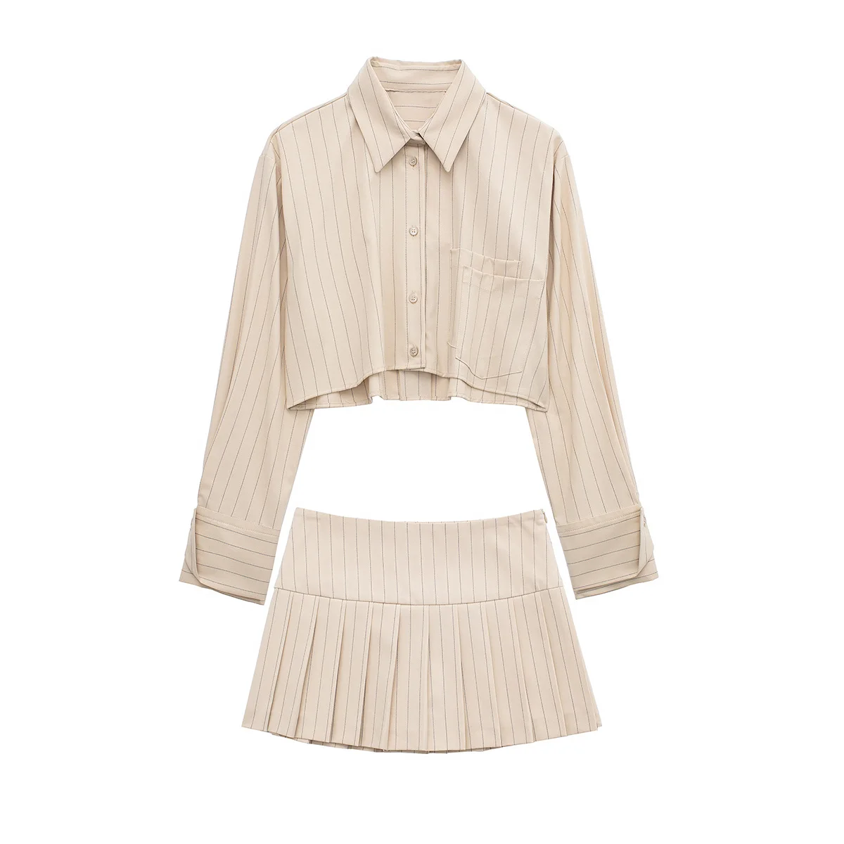 Mqtime Preppy Style Striped Sets Womens Outfits Long Sleeve Cropped Shirt And High Waist Skort Mini Pleated Skirt Two Piece Set