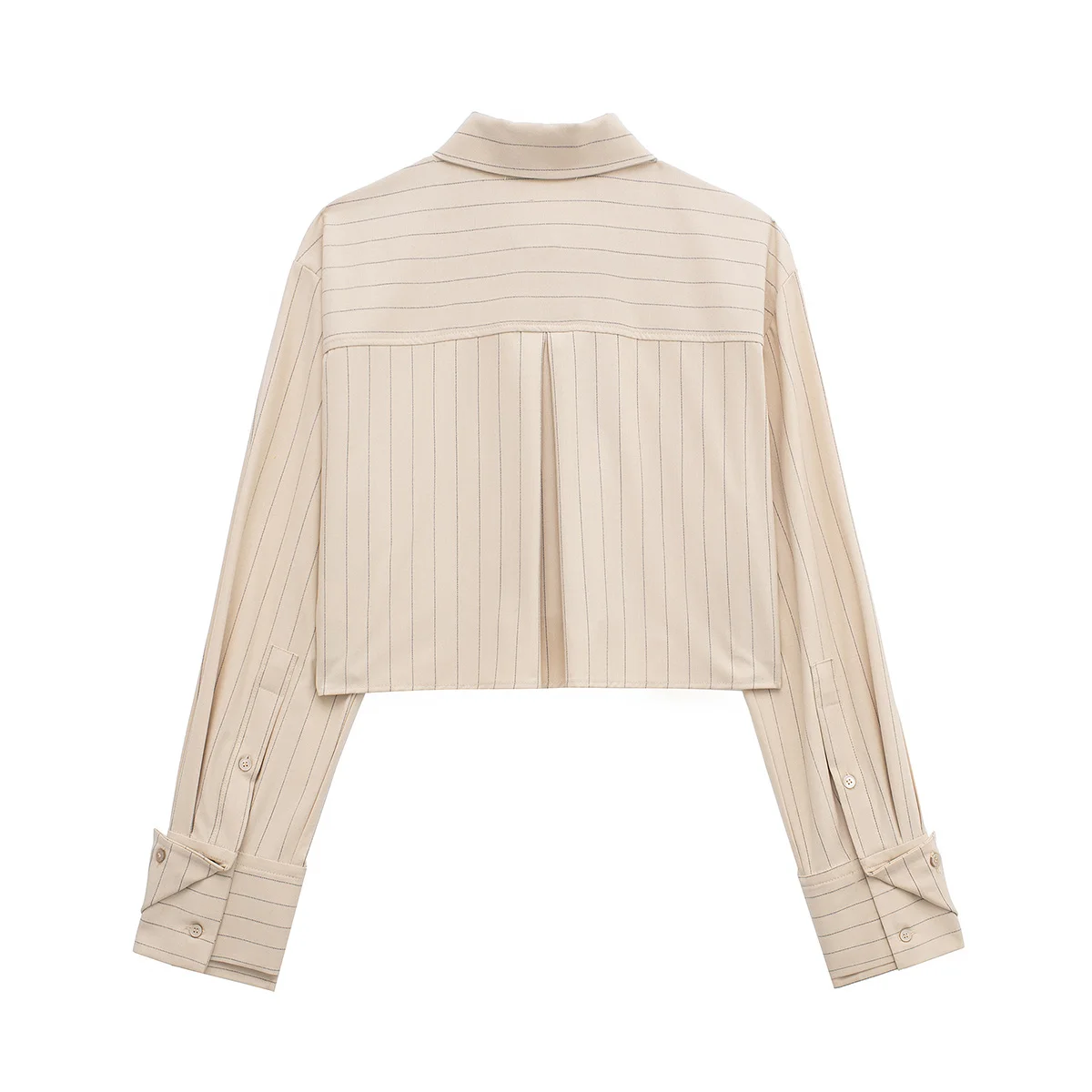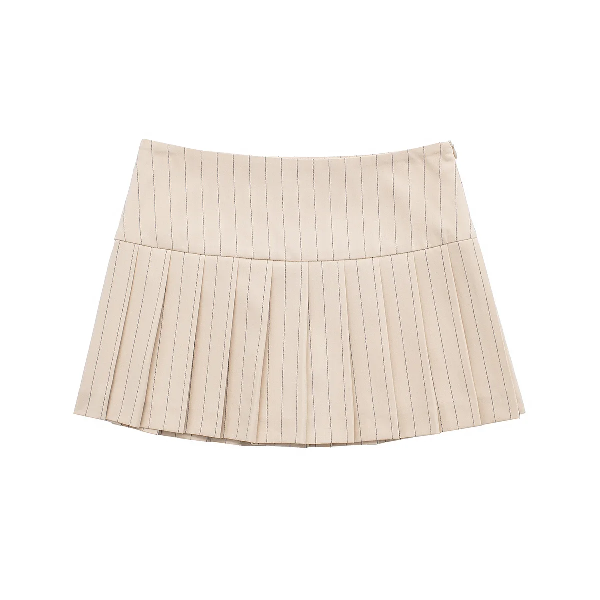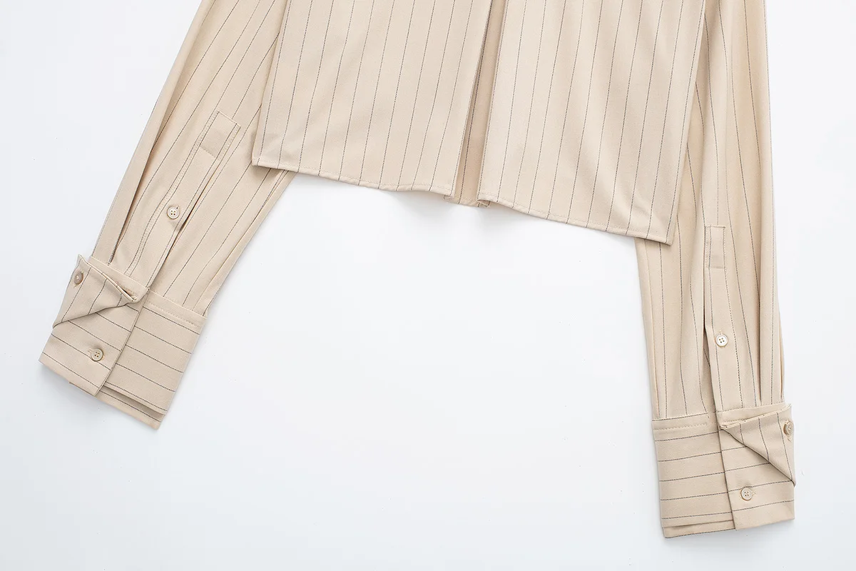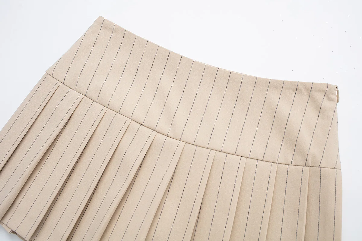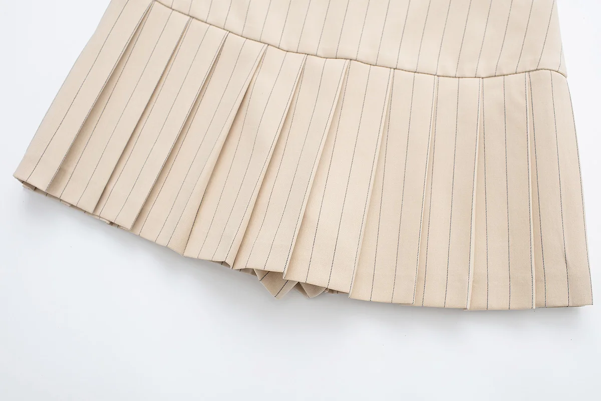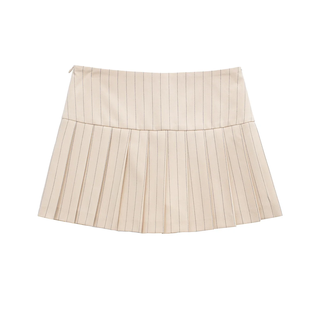 Mqtime Preppy Style Striped Sets Womens Outfits Long Sleeve Cropped Shirt And High Waist Skort Mini Pleated Skirt Two Piece Set