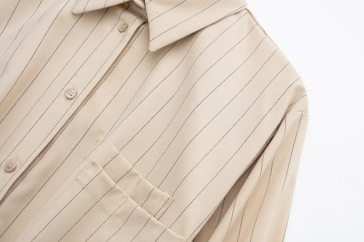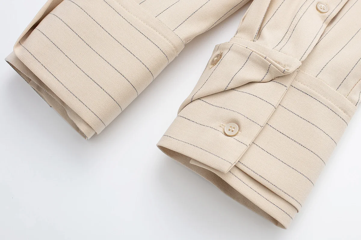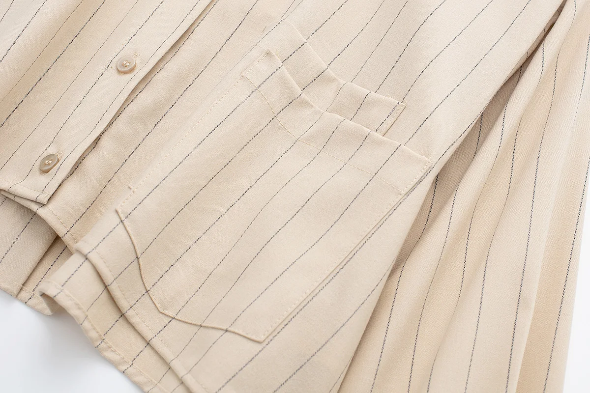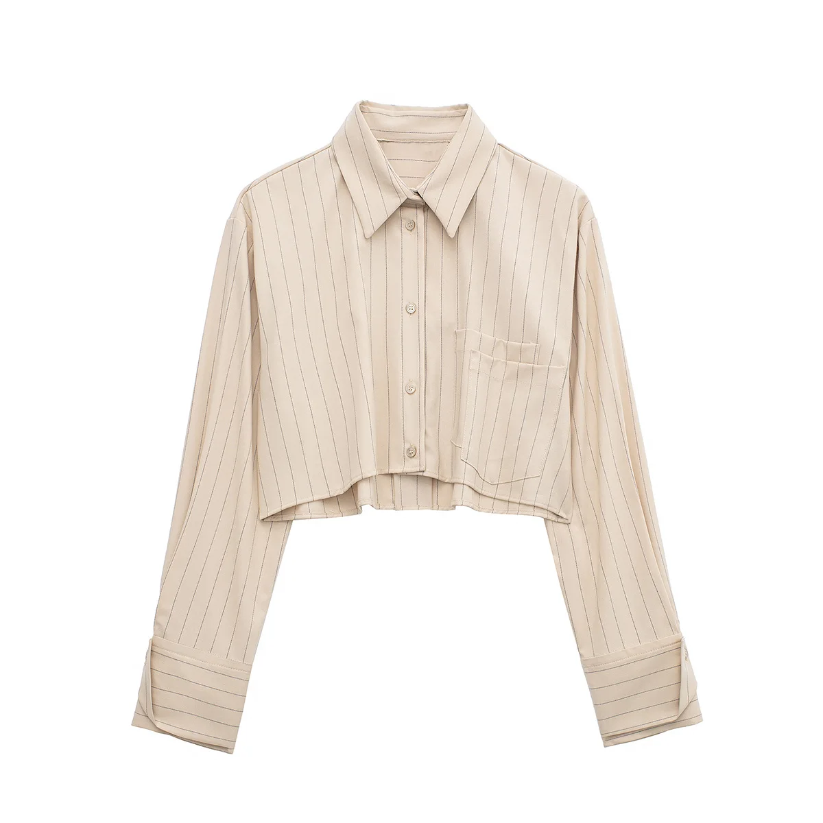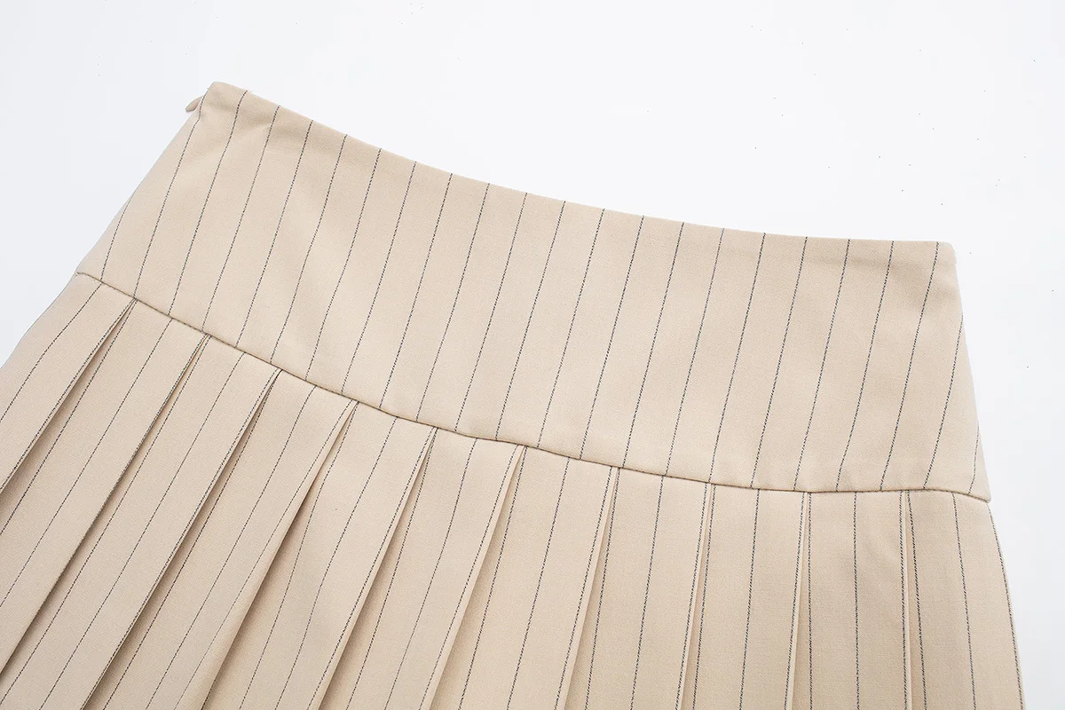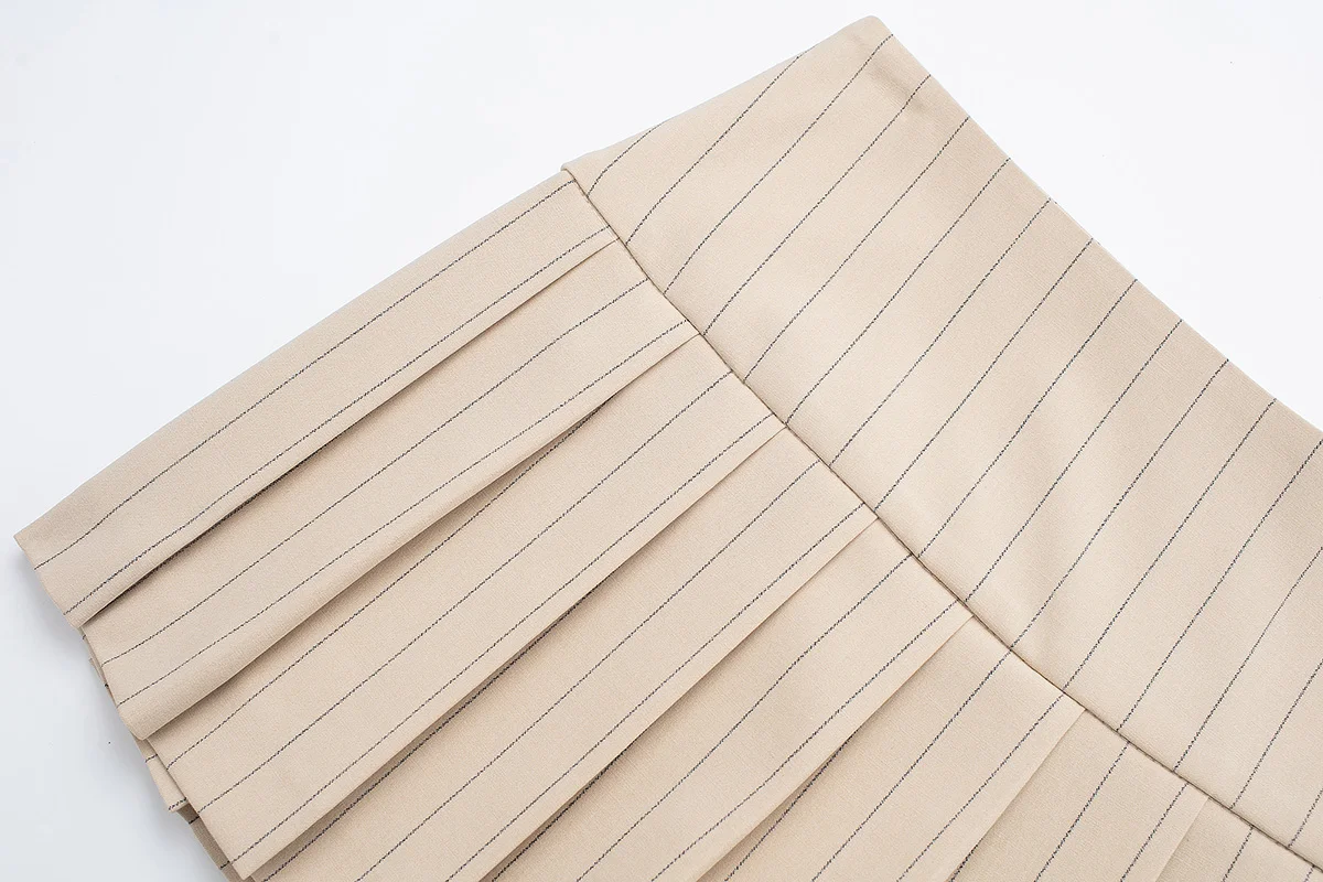 Mqtime Preppy Style Striped Sets Womens Outfits Long Sleeve Cropped Shirt And High Waist Skort Mini Pleated Skirt Two Piece Set