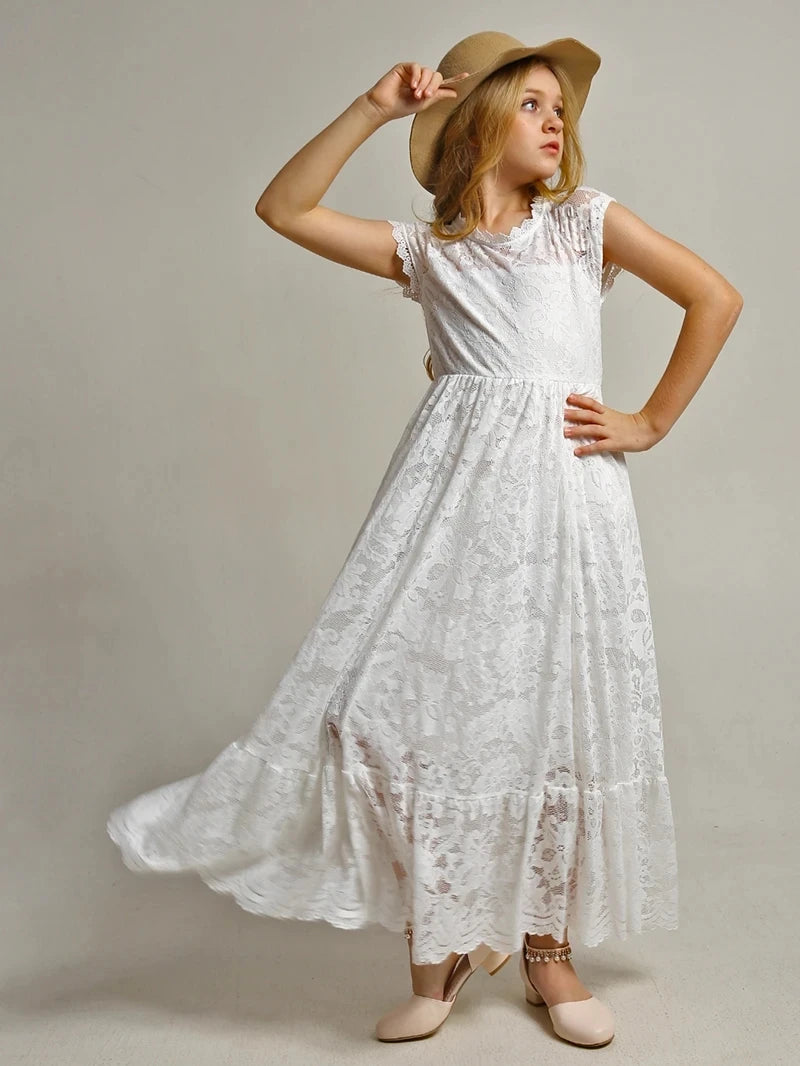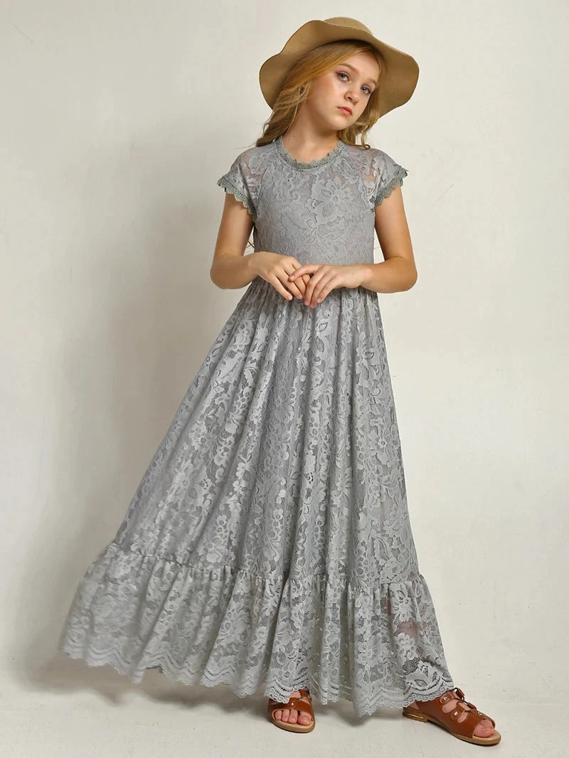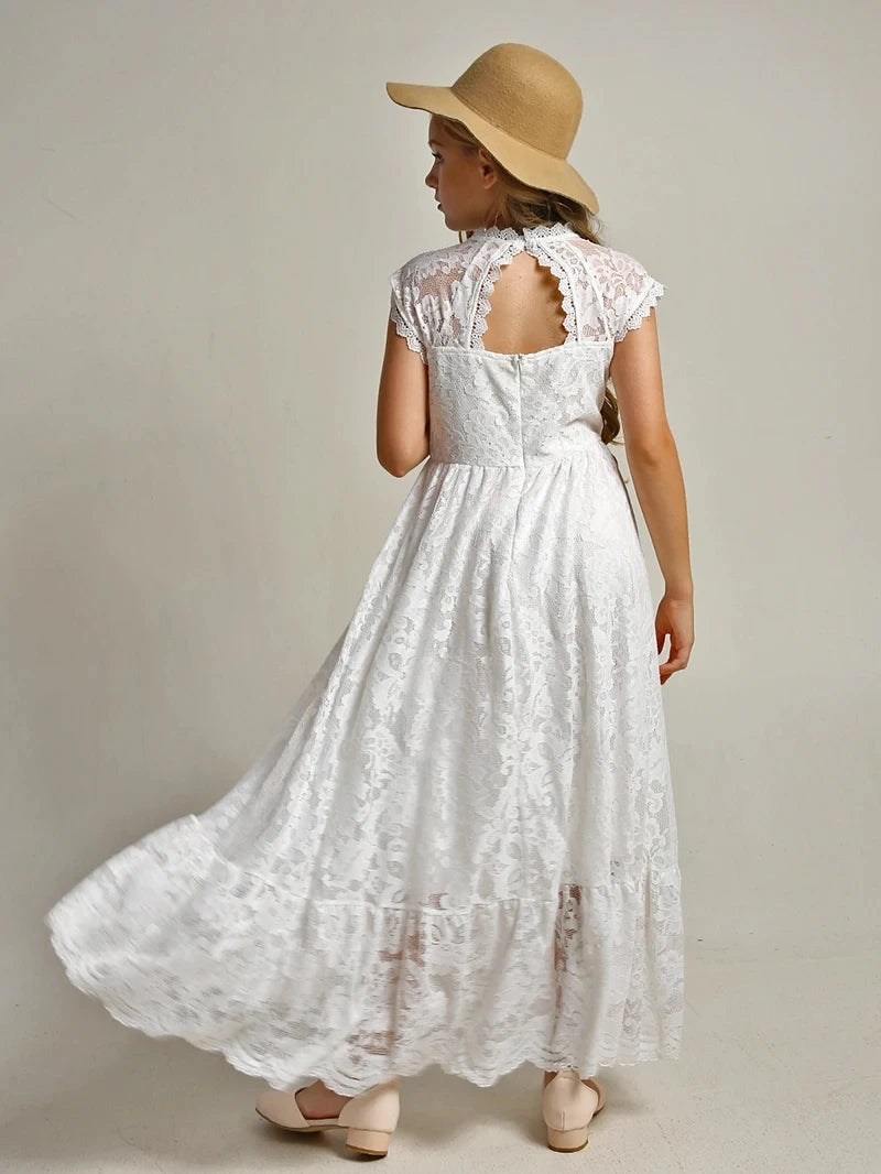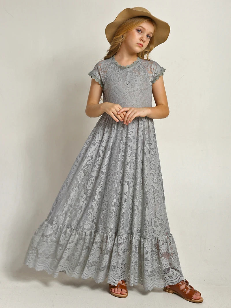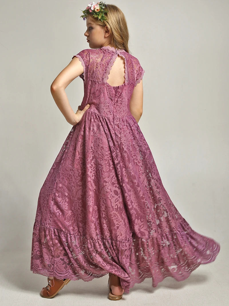 MQTIME - Princess Girls Lace Bohemia Long Dresses Baby Kids Flower Wedding Party Dress Cotton Lining Vestidos Costume Children Clothing