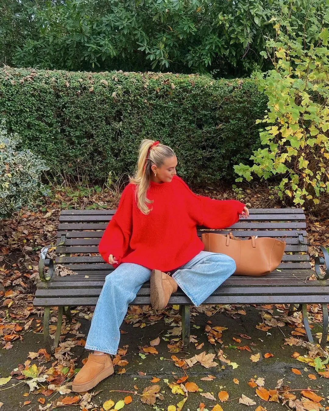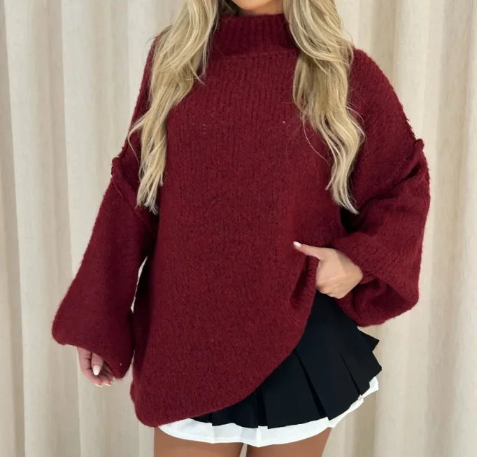 MQTIME - Red Solid Women's O Neck Long Sleeves Knit Sweater Pullover 2024 Autumn Chic Women Casual Loosen Sweater New Lady Warm Jumpers
