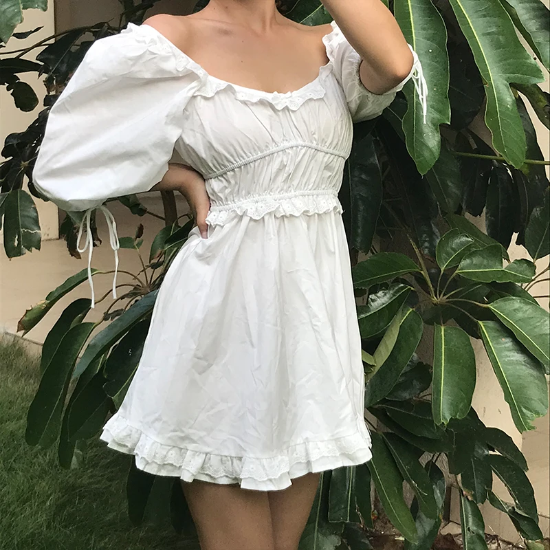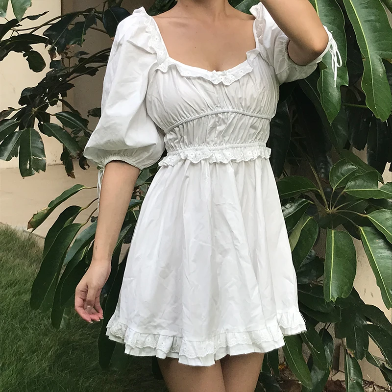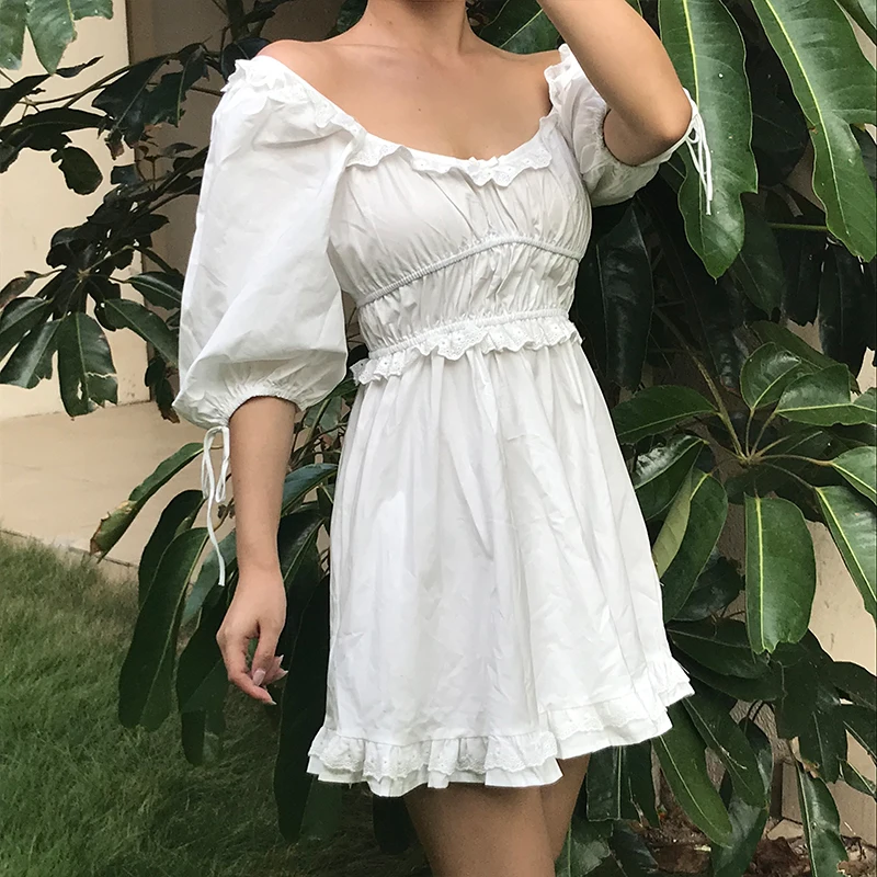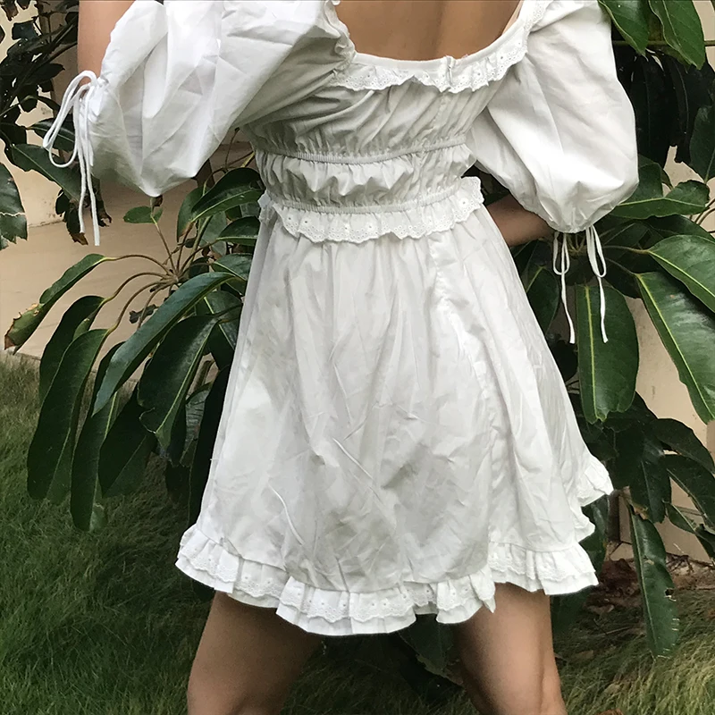 MQTIME  -  Retro French Lovely Princess Ear Lace Bubble Sleeve Waist Loose Dress