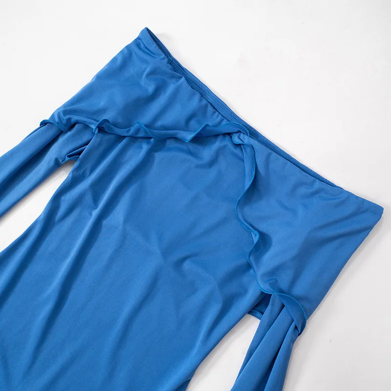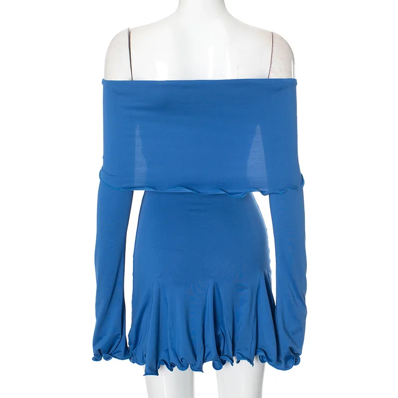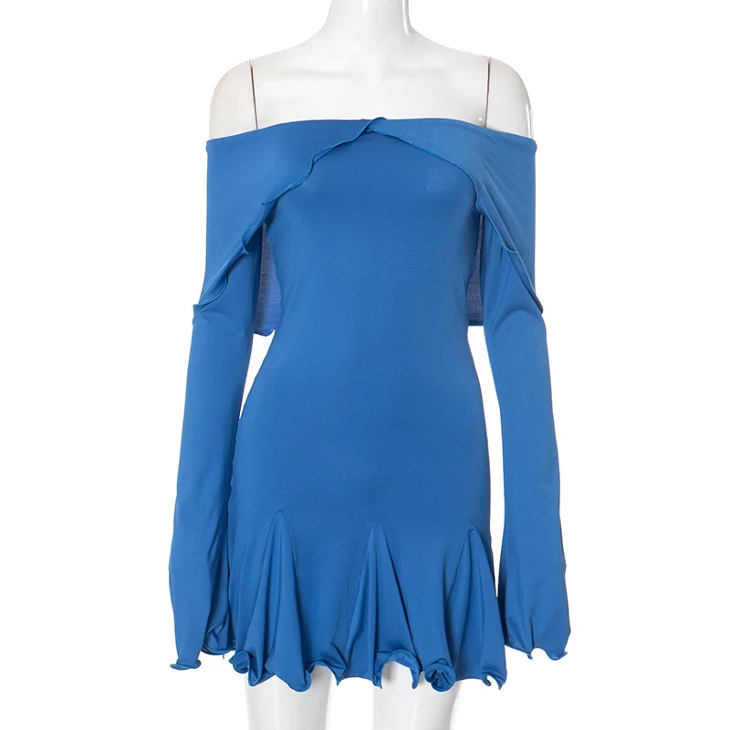 MQTIME - Ruffled Off-Shoulder Casual MIni Dress For Women Long Sleeve Patchwork Solid High Waist Party Dress Female Dress Autumn