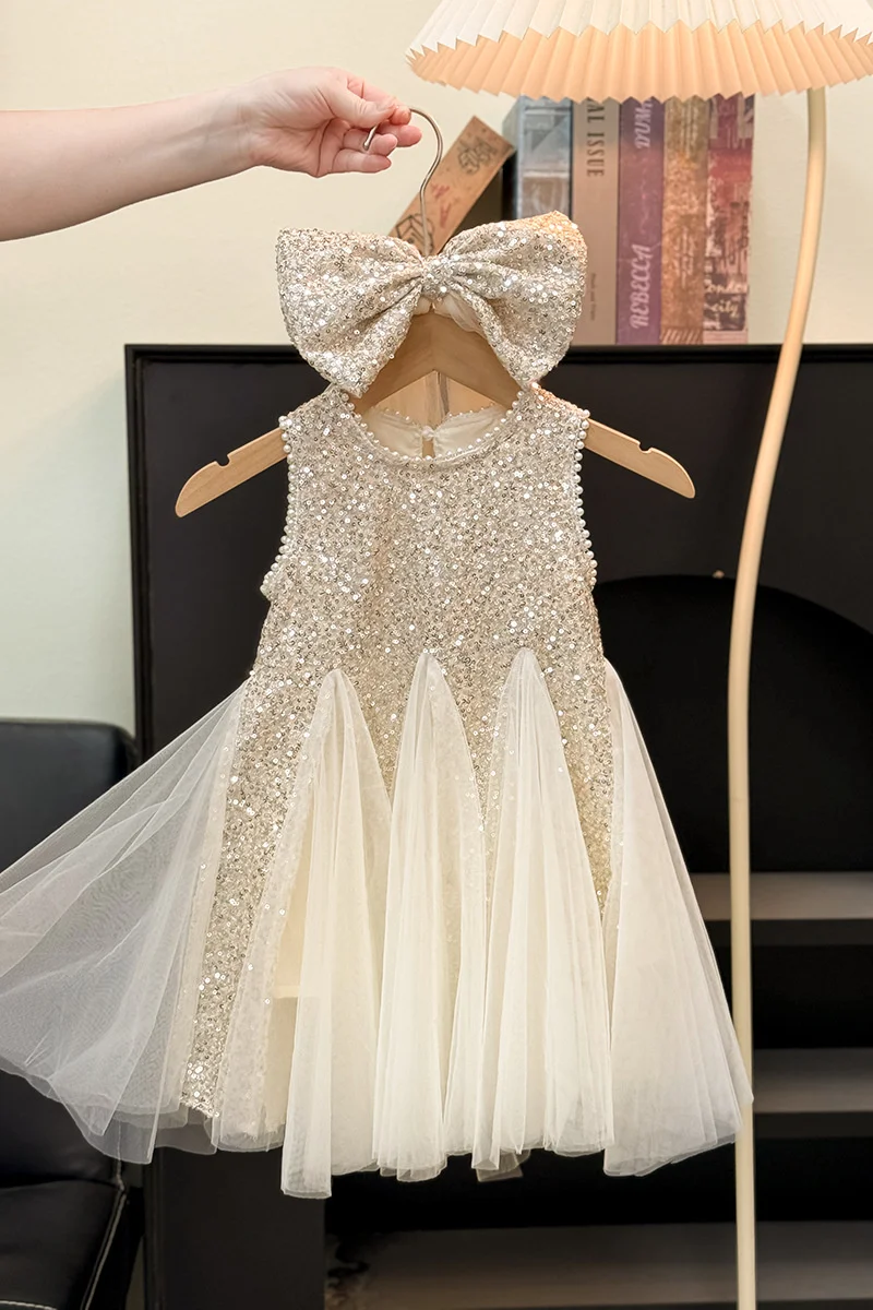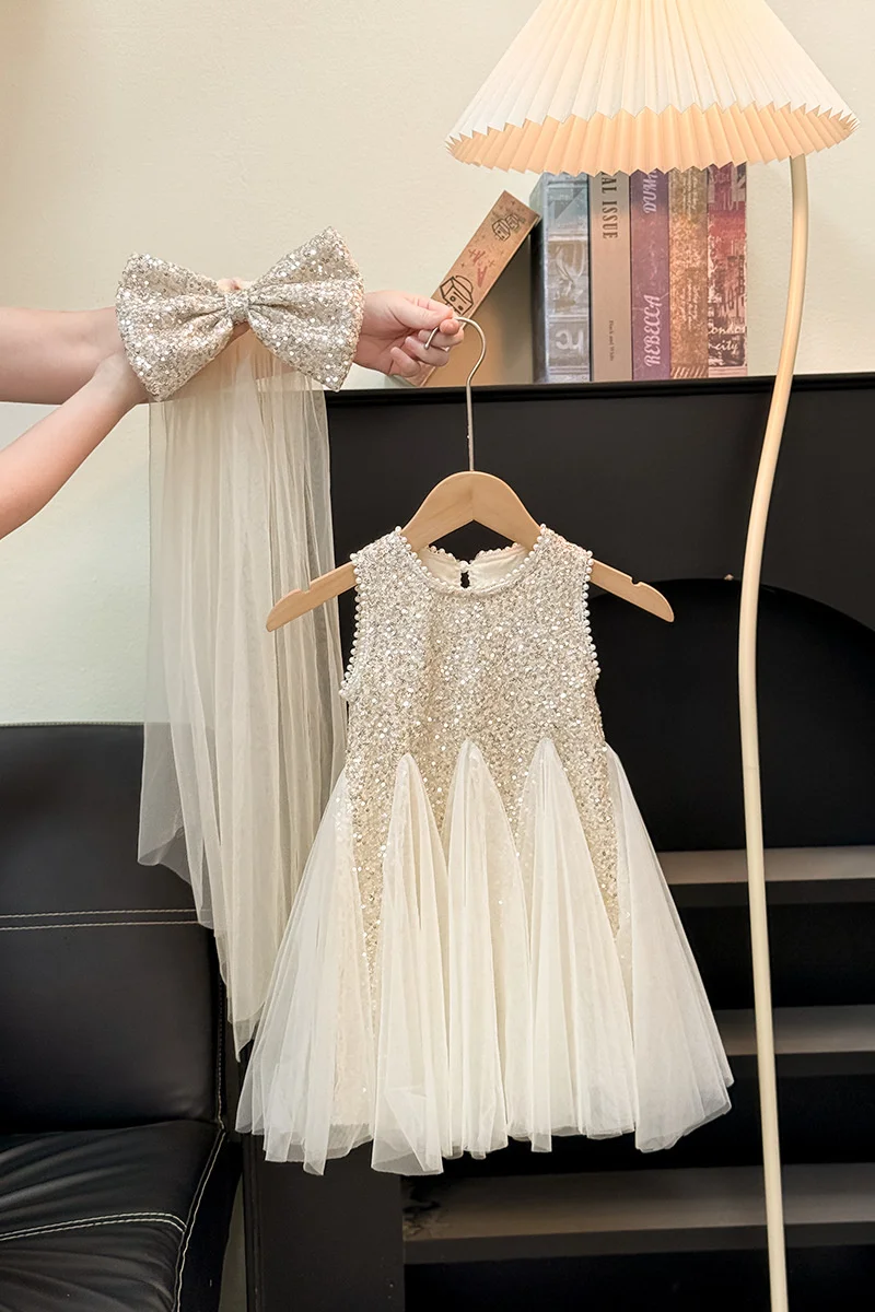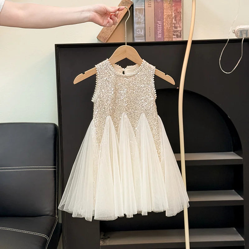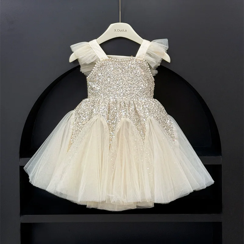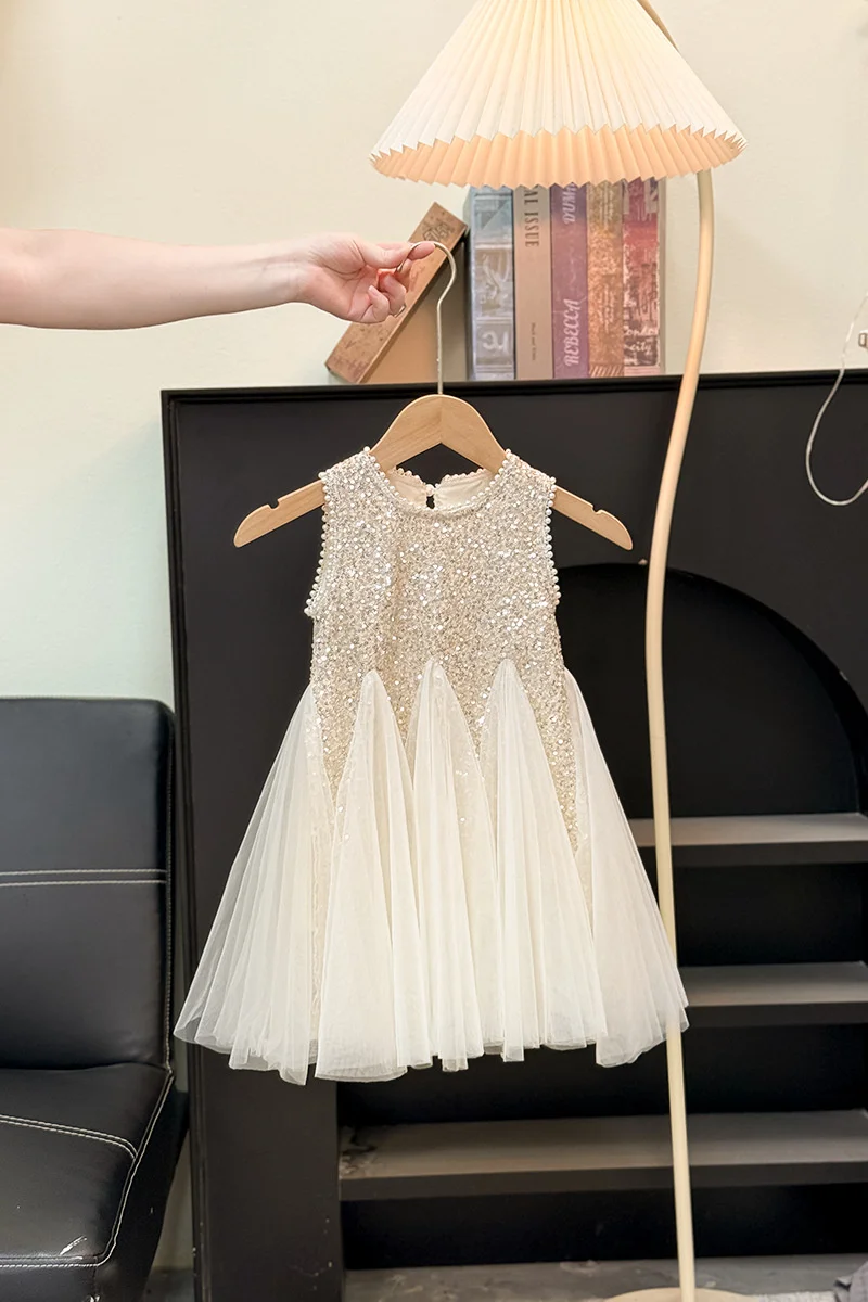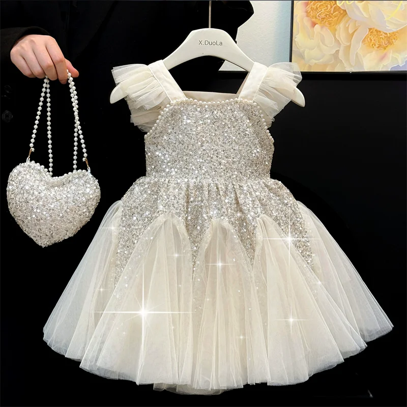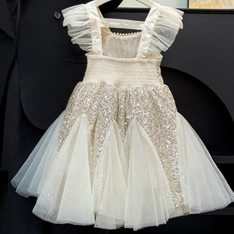 MQTIME - Sequined Princess Dress Girls Puff Dress Kids Birthday Party Mesh Gown Children Casual Clothes Toddler Fashion Vestidos 2-10Y