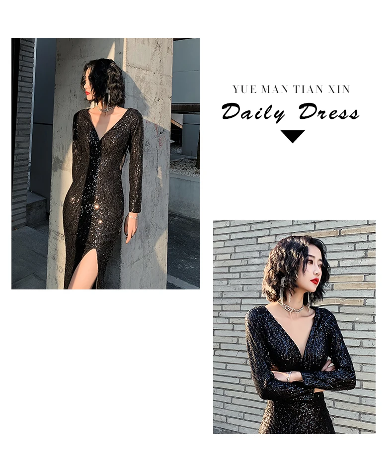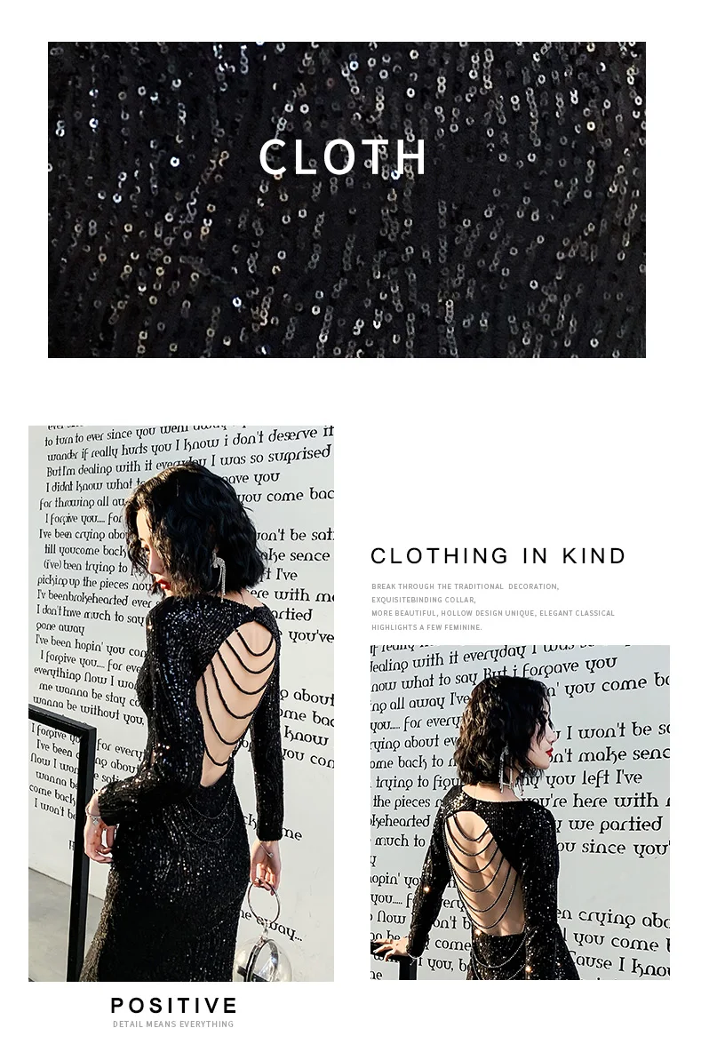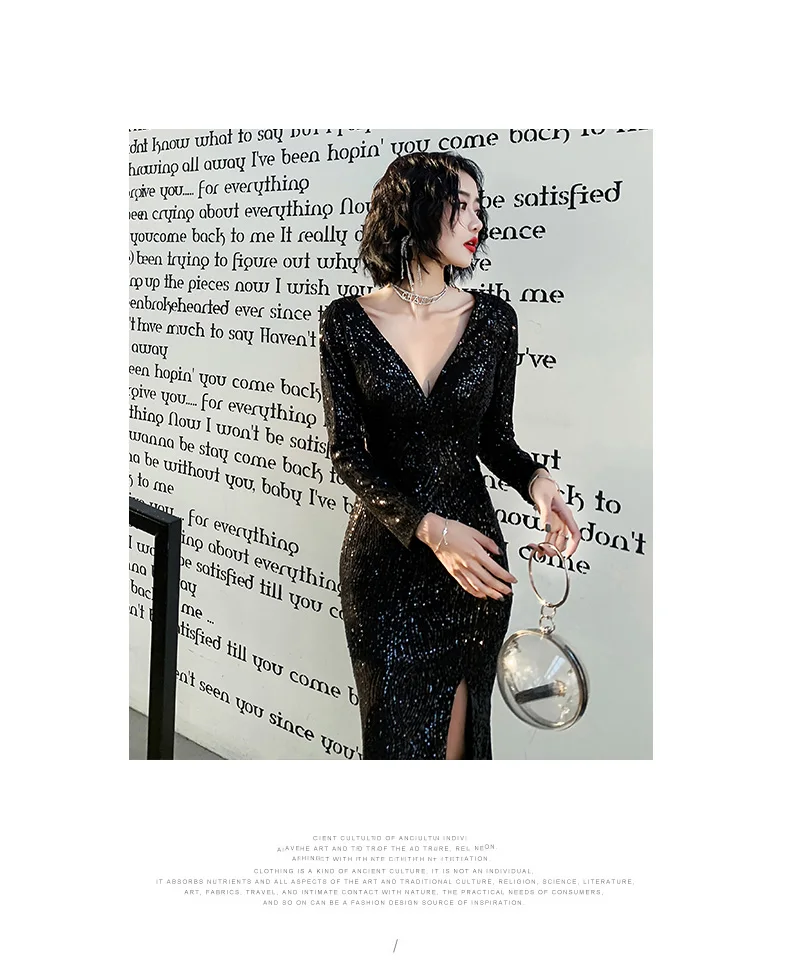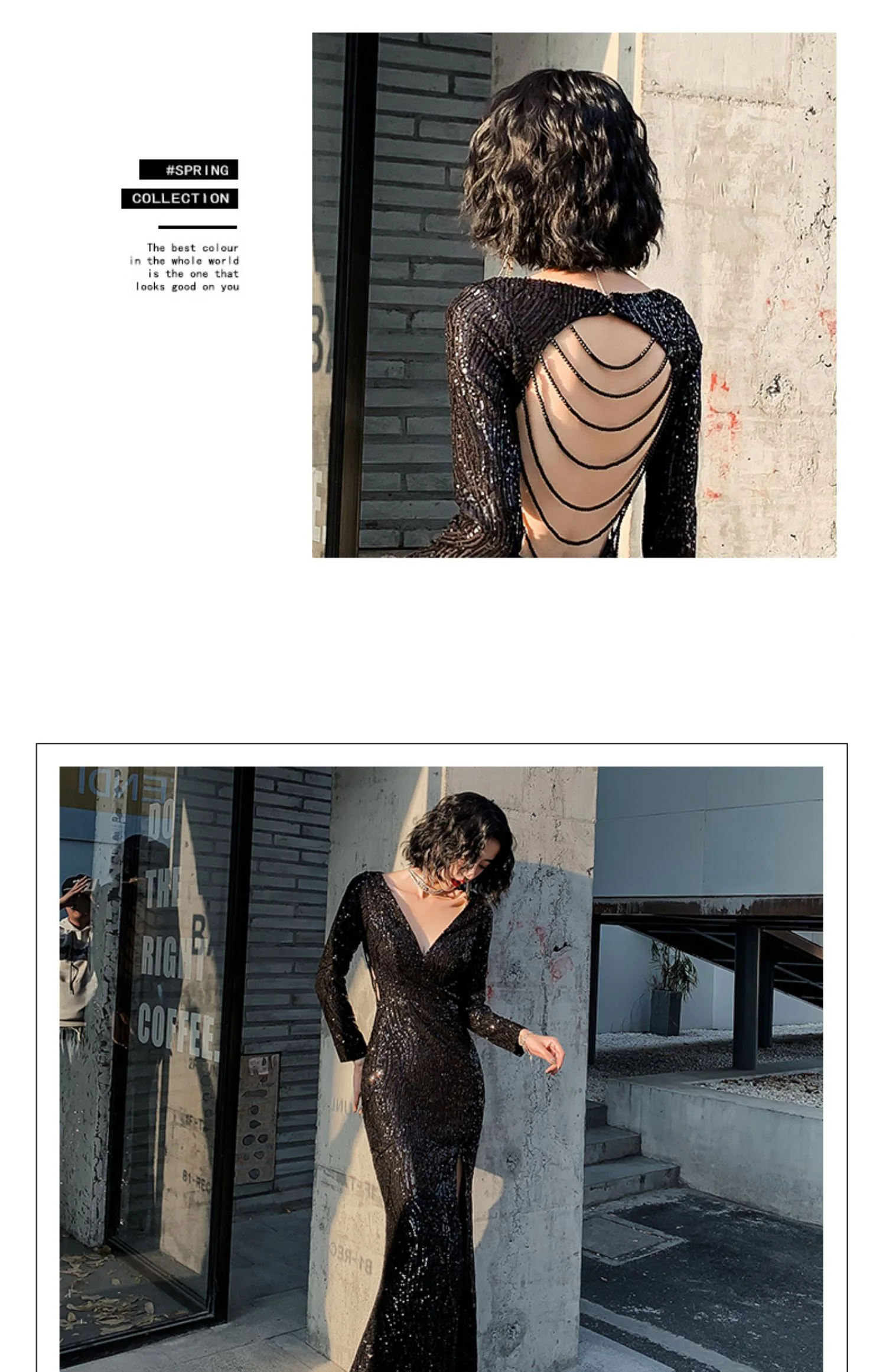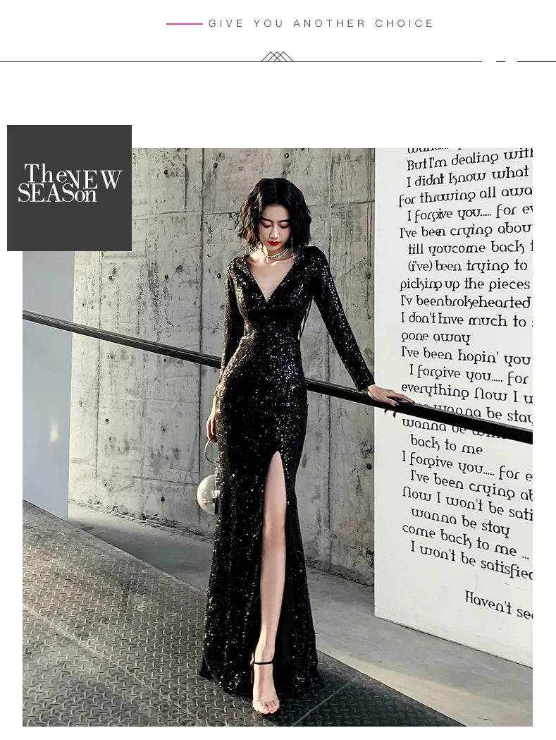 MQTIME - Sexy Black Mermaid Banquet Dress Deep V-Neck Beading Backless High Slit Floor Length Formal Evening Dresses Maxi Vestido