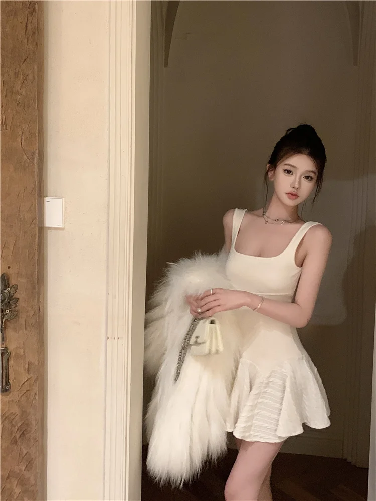 MQTIME  - Sexy White Club Outfits for Women Summer Ballet Style Patchwork Fishbone Waist Fluffy A-line Short Dress Sweet Y2k Mini Dress
