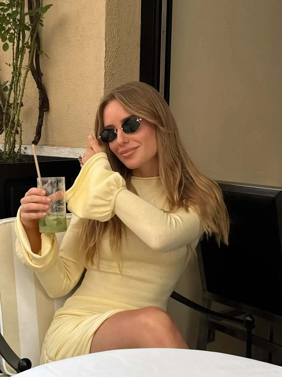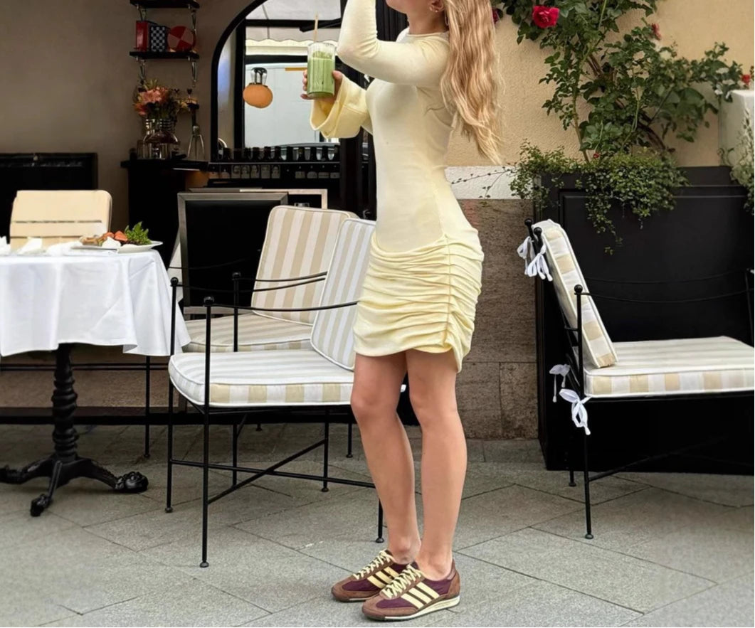 MQTIME - Sexy Women's Autumn and Winter New Flared Double Pleated Skirt Long Sleeve Slim Knit Short Skirt