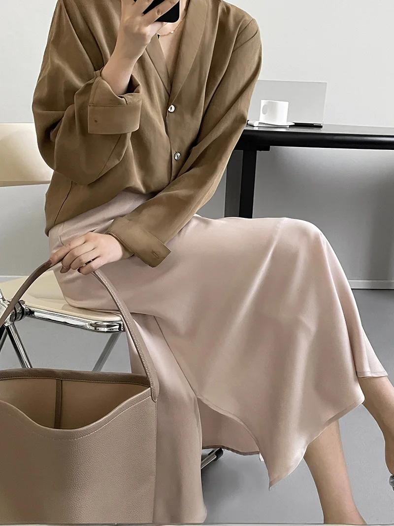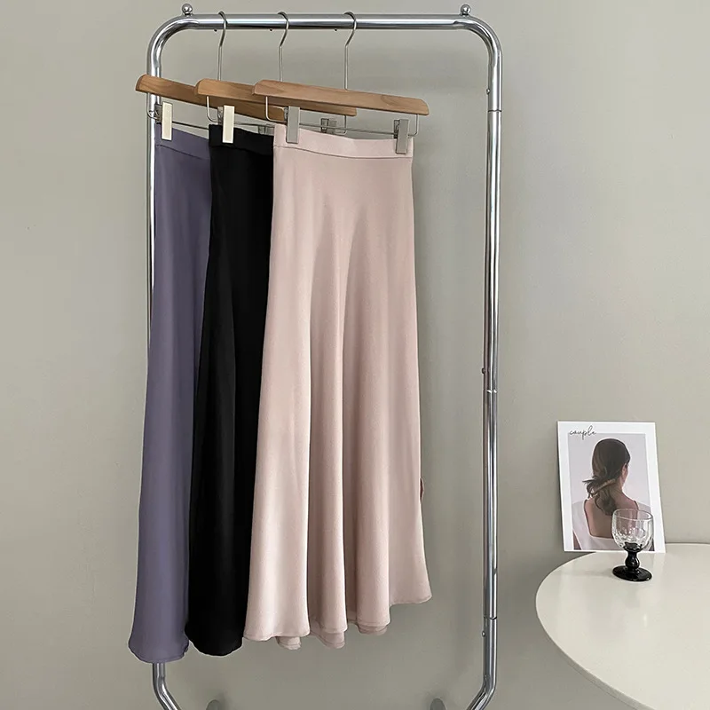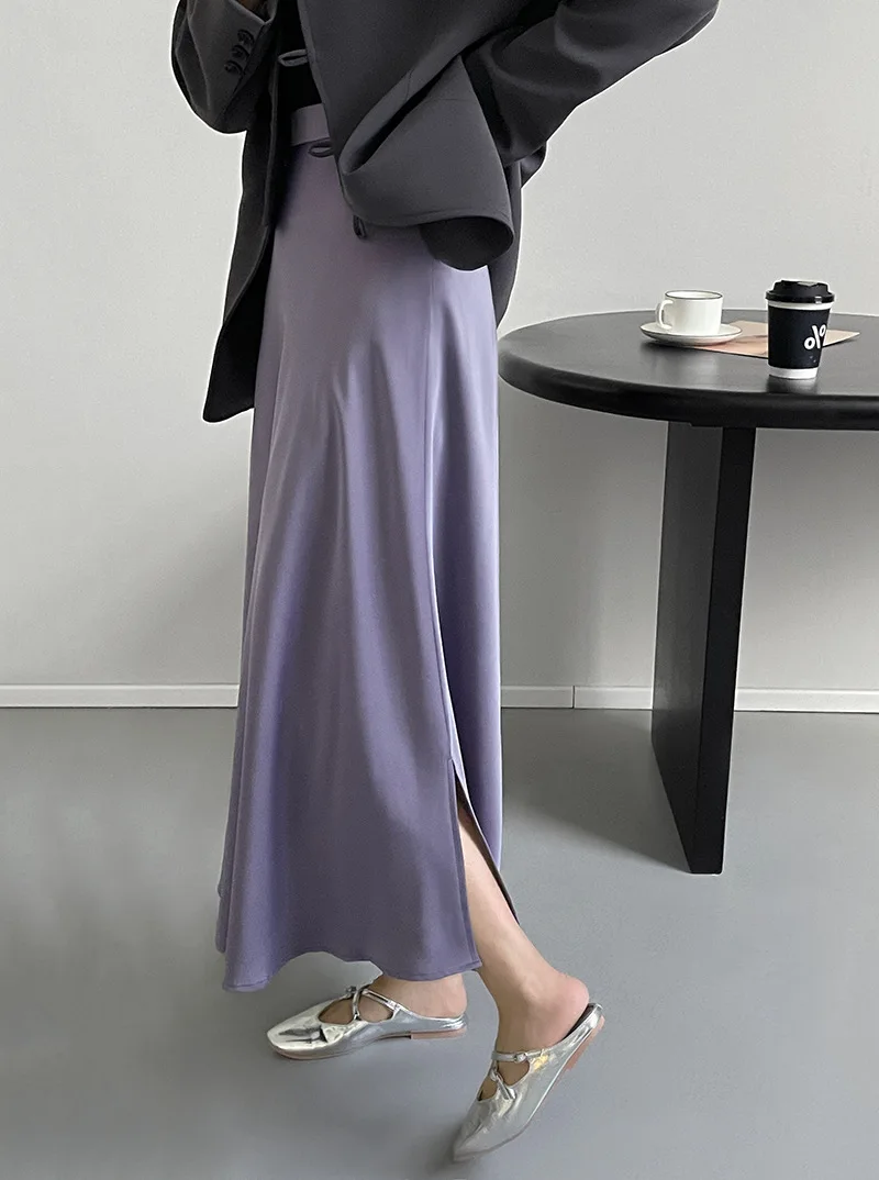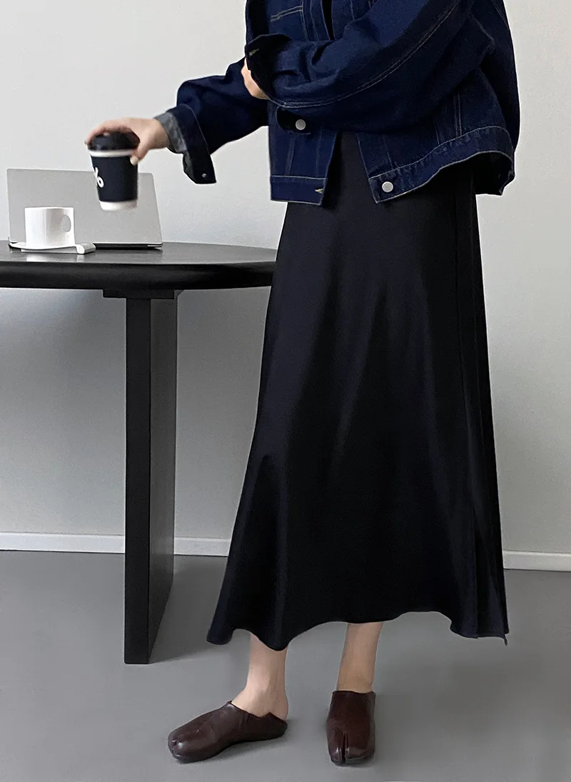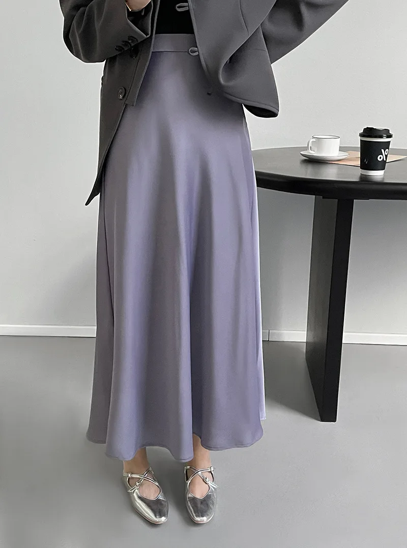 MQTIME - Silky Smooth Drooping Acetic Acid Satin Maxi Skirt Women's High Waisted Slim A Line Skirt
