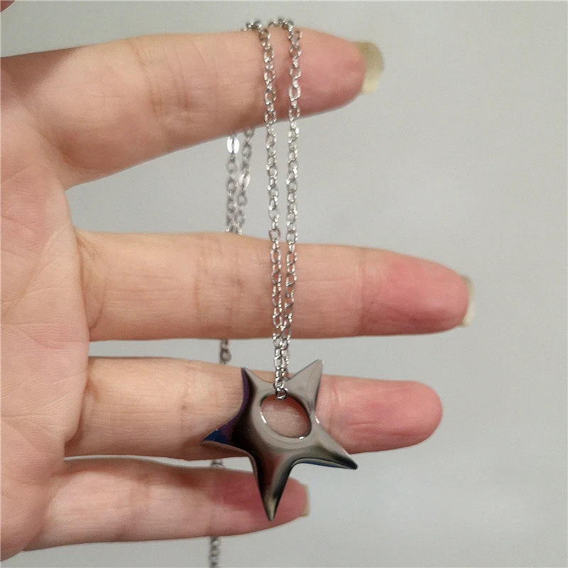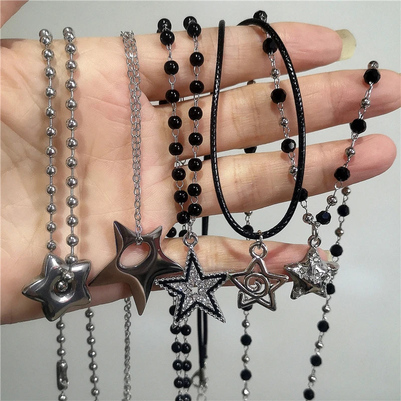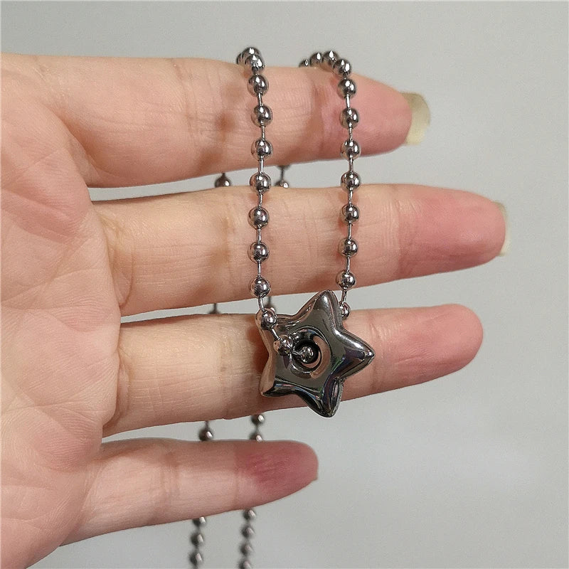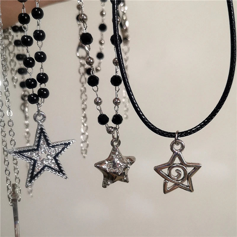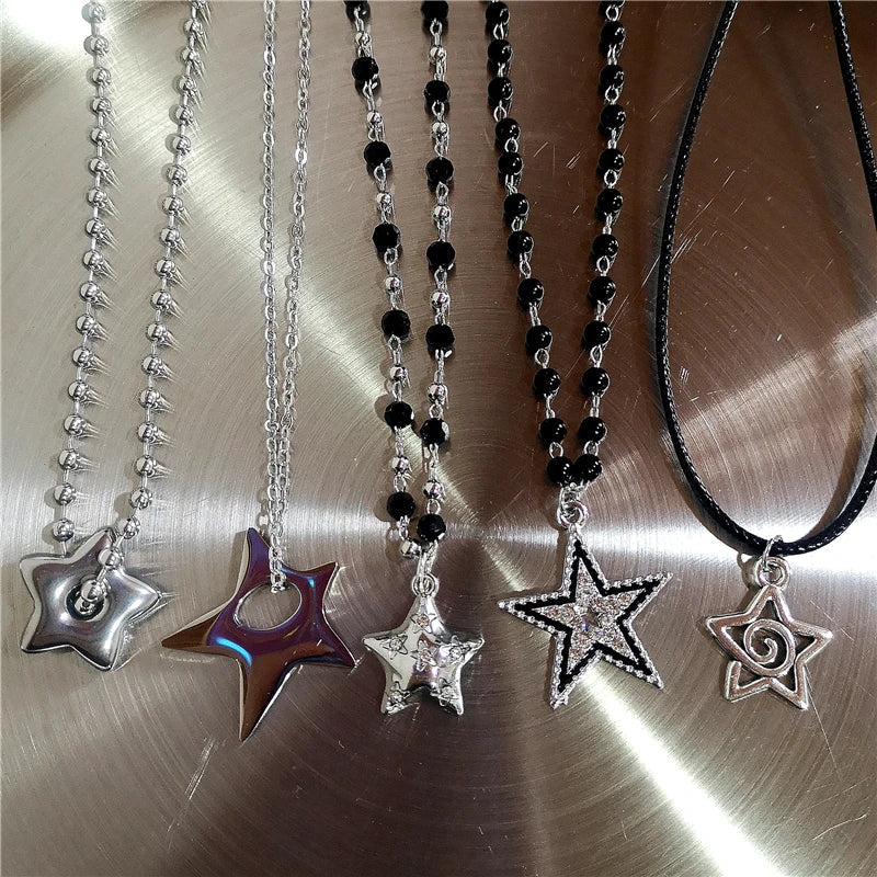 Mqtime Simple Trendy Star Hollow Choker Necklace Pendant Neck Jewelry Grunge Charm Accessories Women Men's Fashion Party Chain Necklace