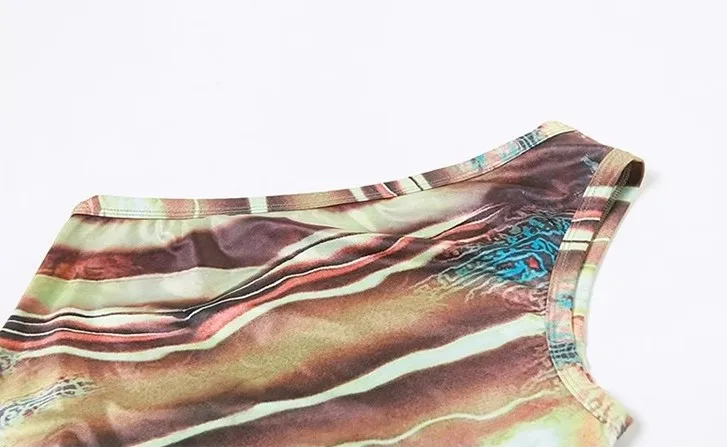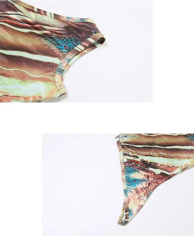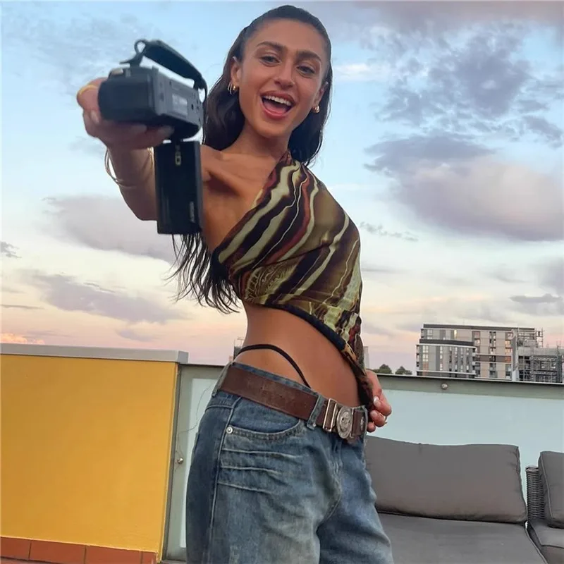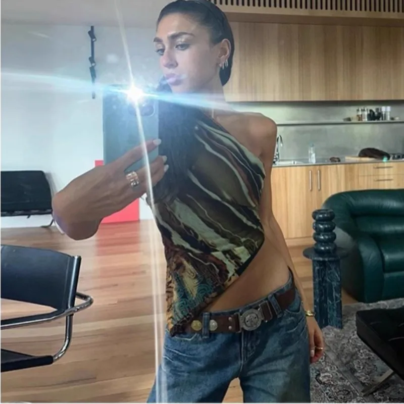 MQTIME - Single Shoulder Sexy Small Suspender For Women'S Retro Street Fashion Design, Colorful Printed Slim Fit Top