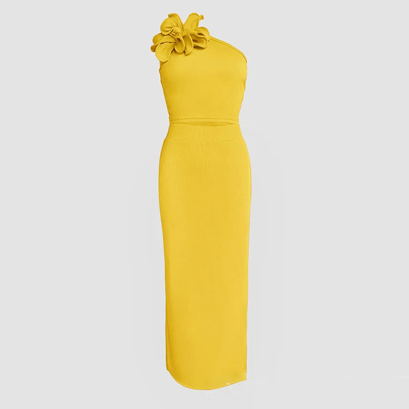 MQTIME - Slim Fashion Flower Embellished 2 Piece Sets Elegant Slant Shoulder Pullover and Skirt Suits Women Sexy Wrap Hip Skirt Outfits