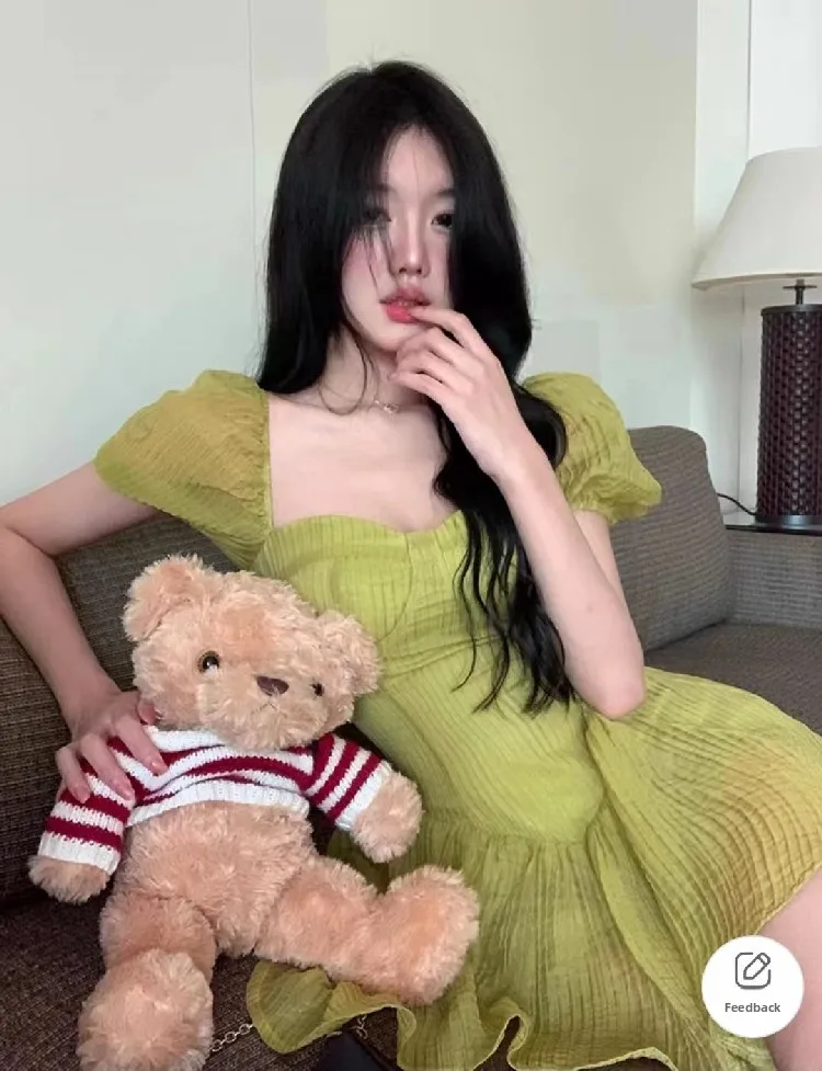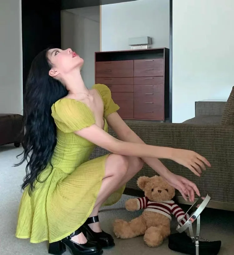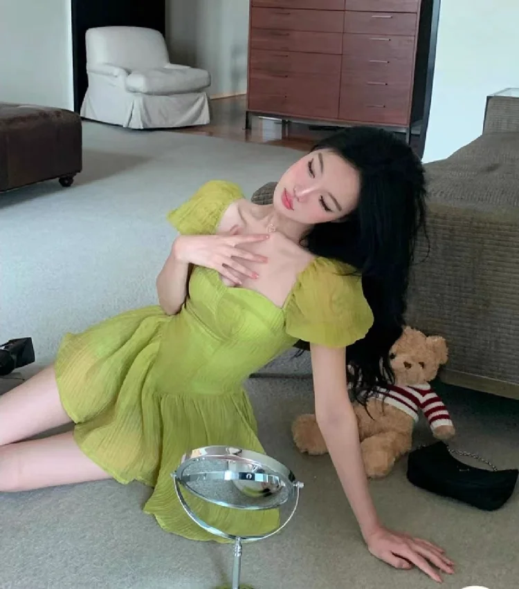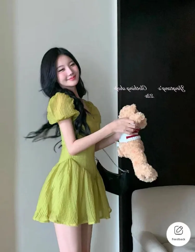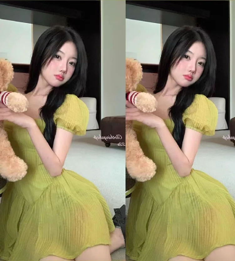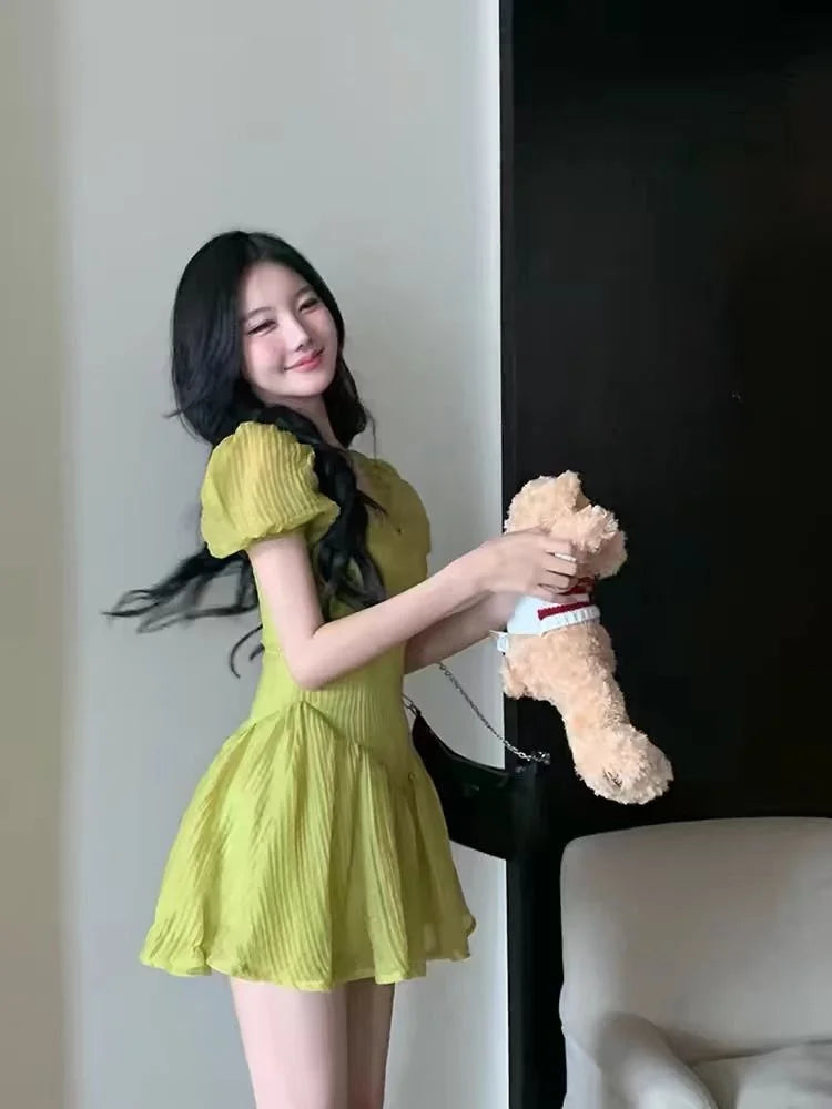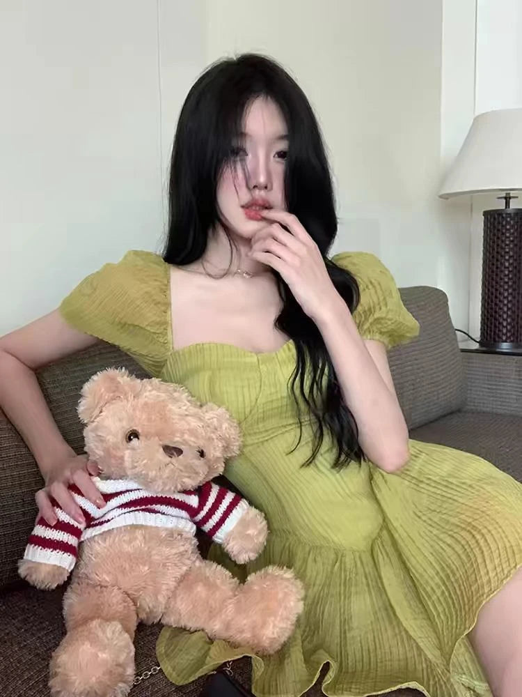 MQTIME  -  Slimming Bubble Hem Square Ne Chiffon ort Dr Women's Sexy Summer Sle Princ Waist Cinched Skirt