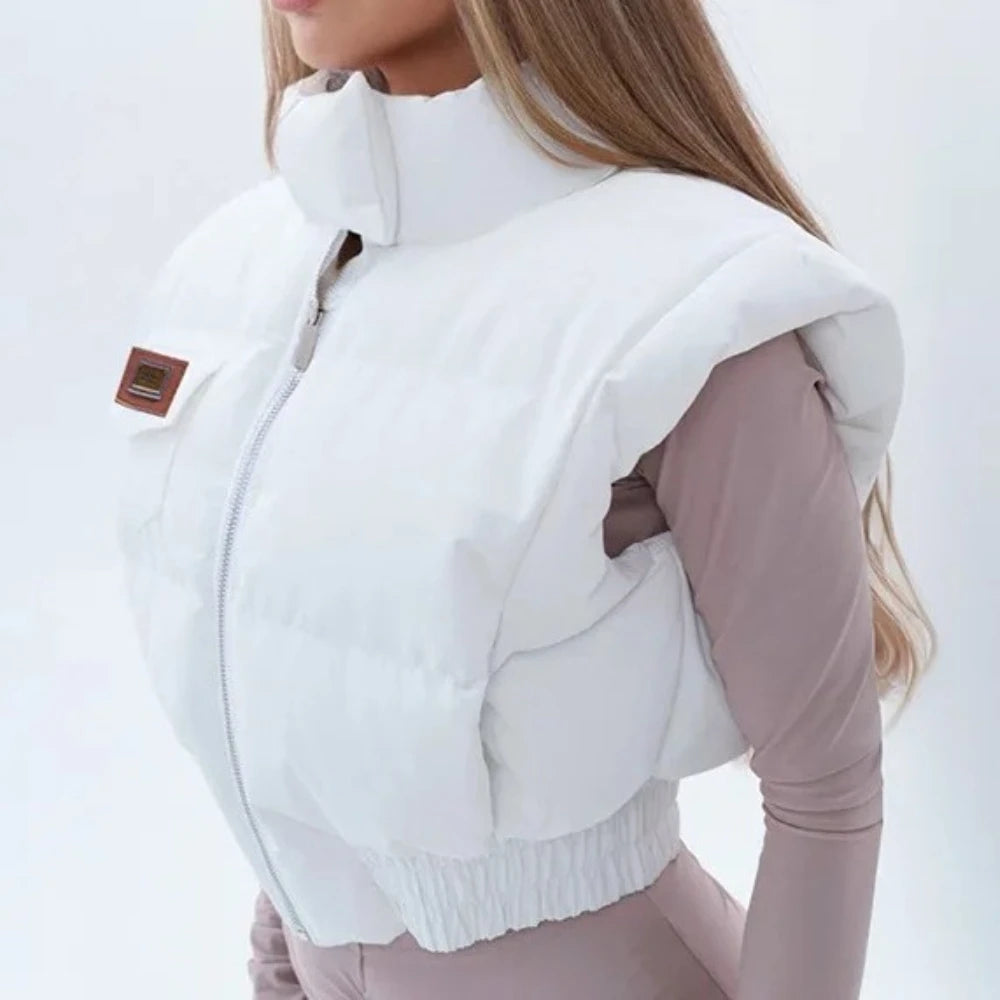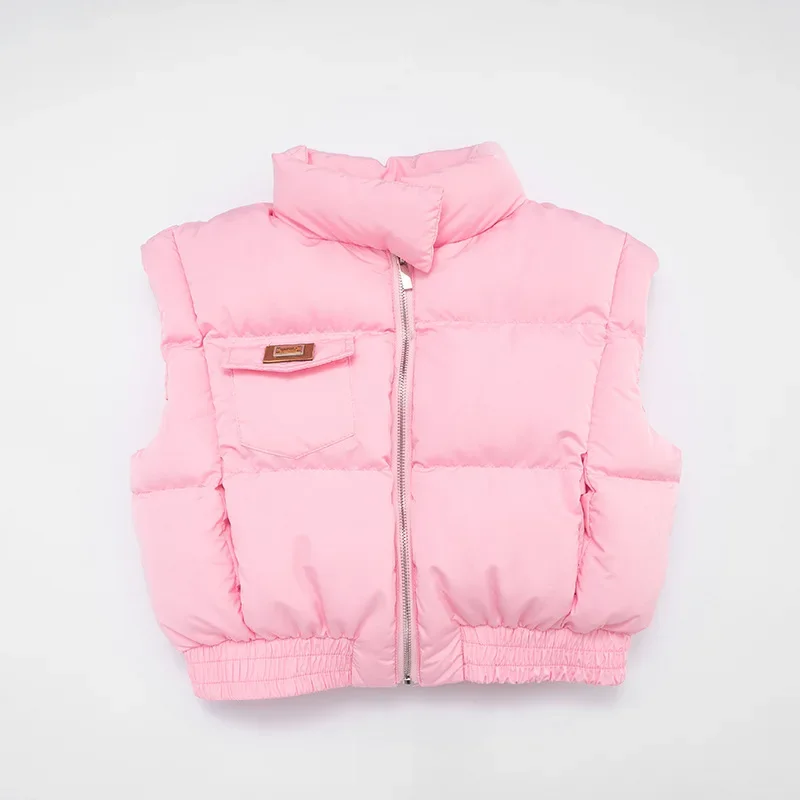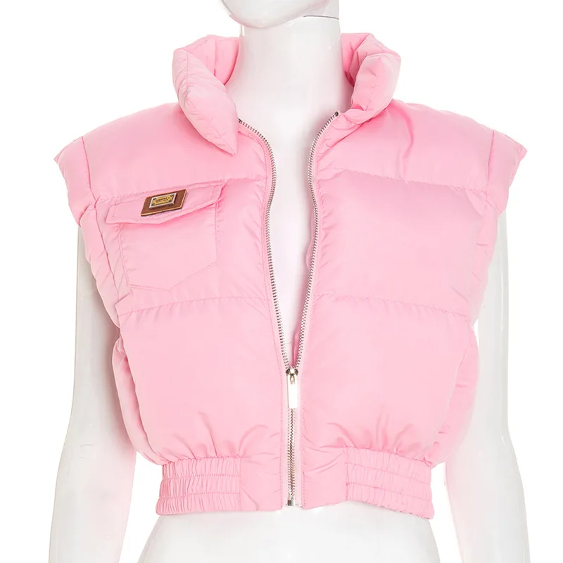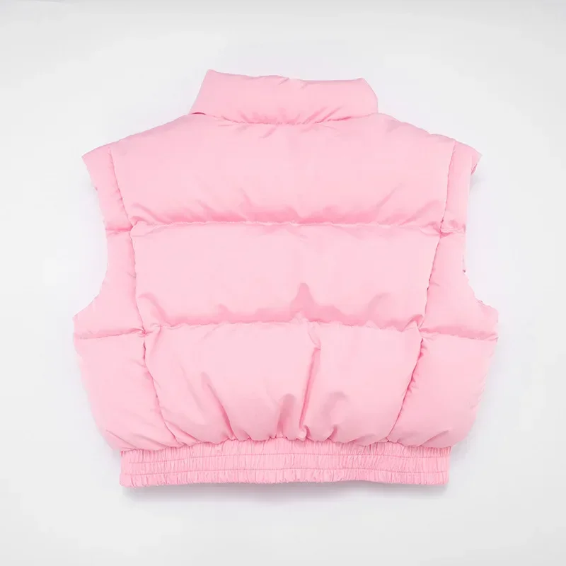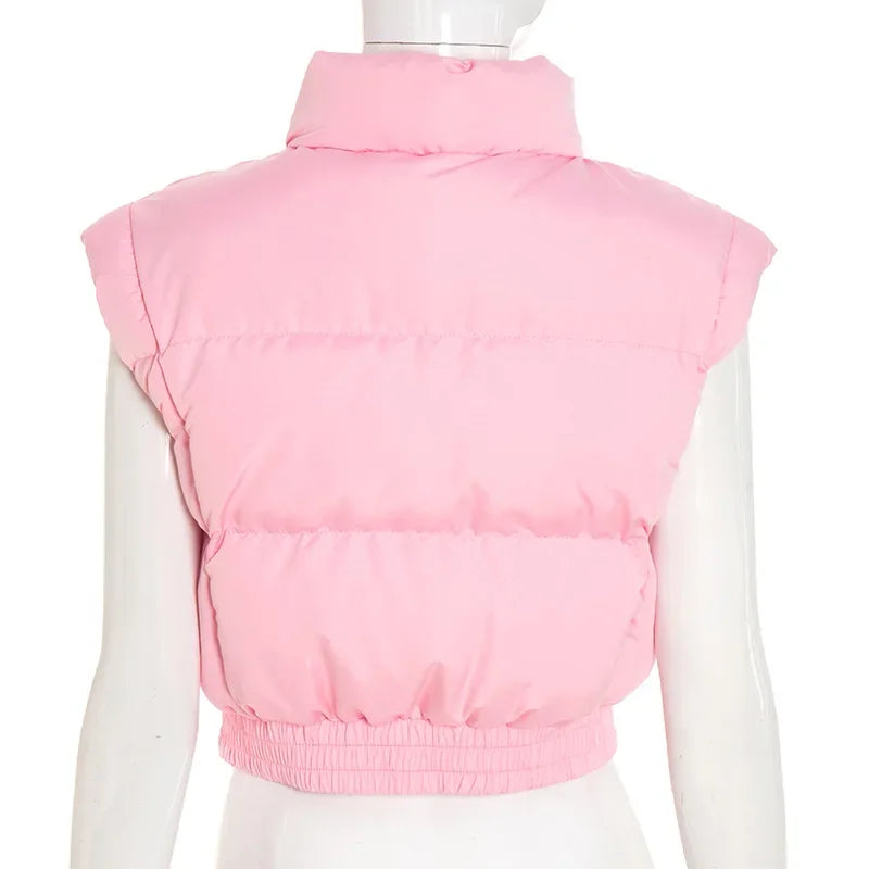 MQTIME - Solid Cotton Padded Coat Vests Women Fashion Warm Stand Collar Sleeveless Zipper Parkas Jackets 2025 Fall Winter Puffy Crop Tops