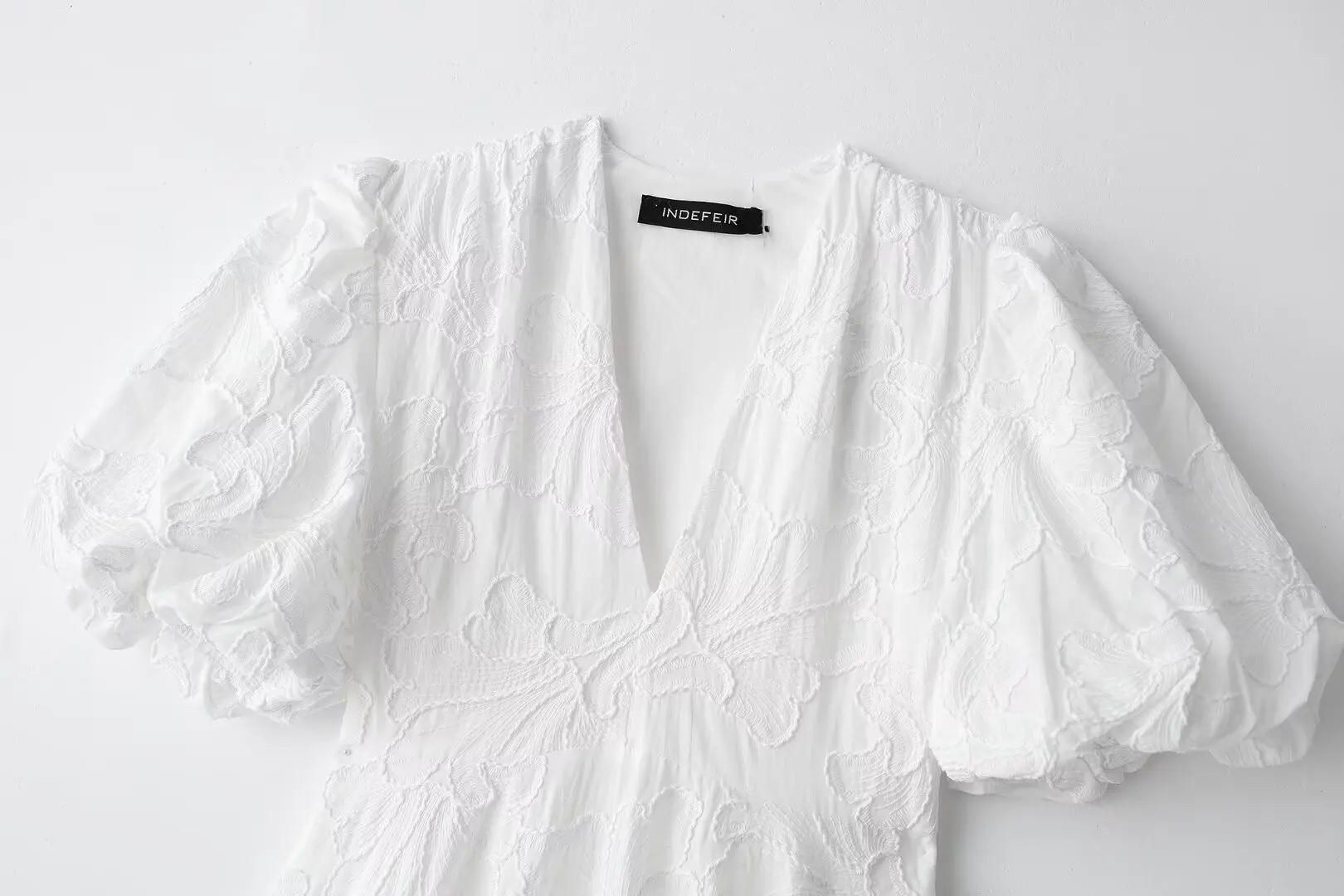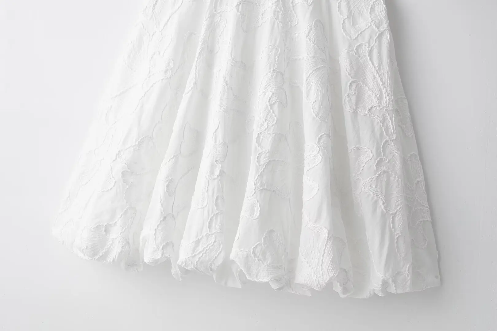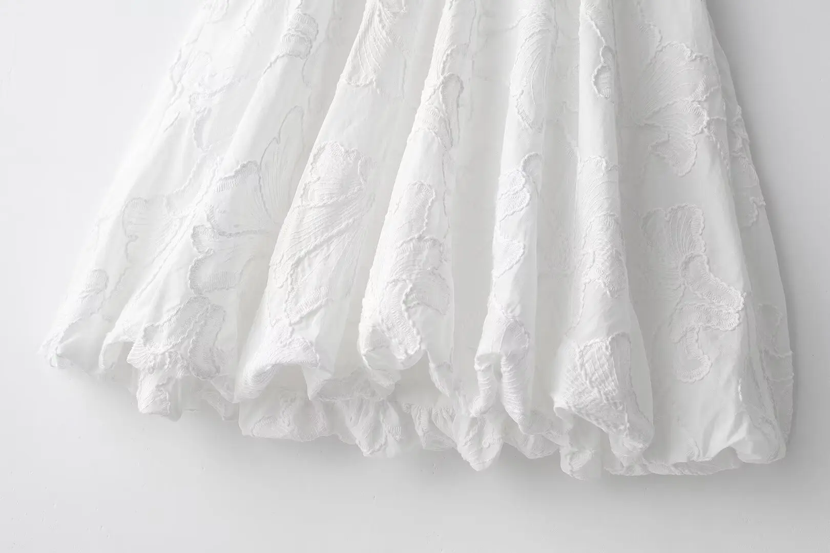 MQTIME - Solid Floral Embroidered Voluminous Mini Dress V-Neck Puff Sleeve White Tutu Mini Dress Woman Elegant Party Holiday Wear