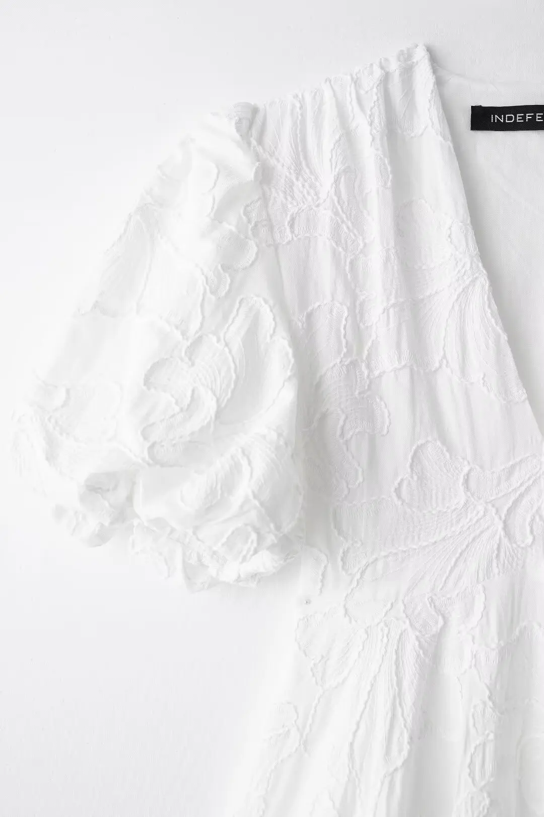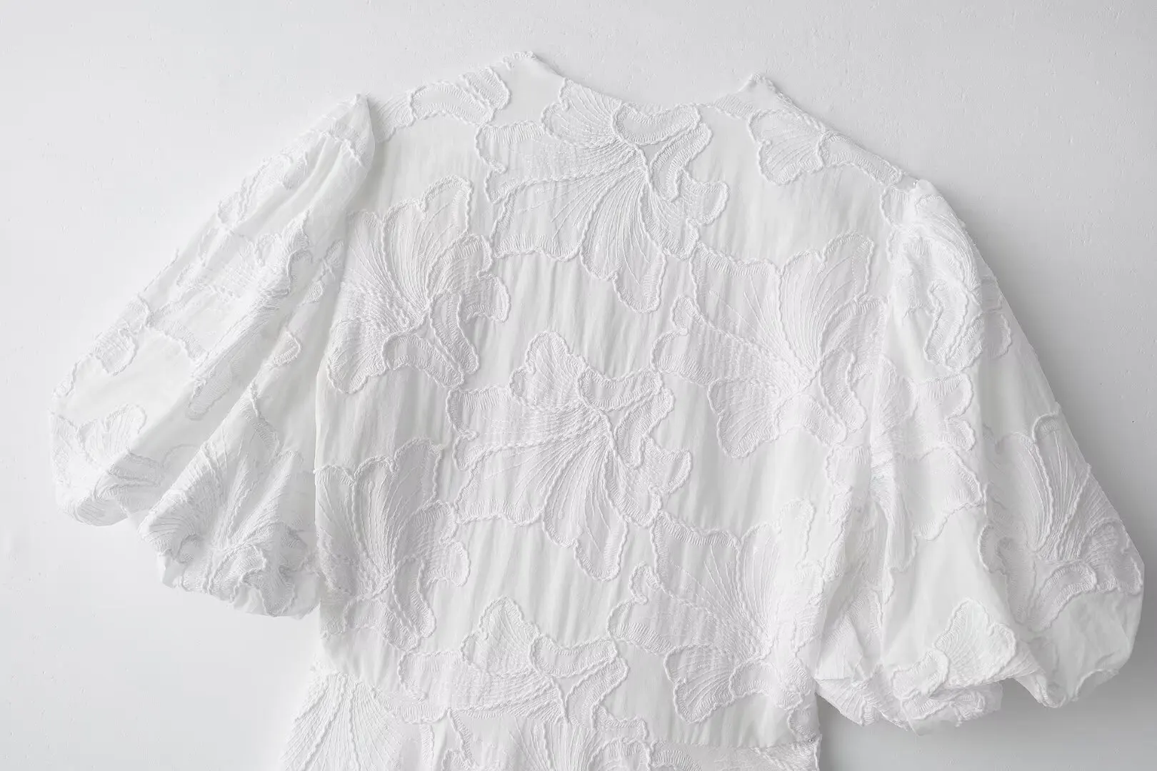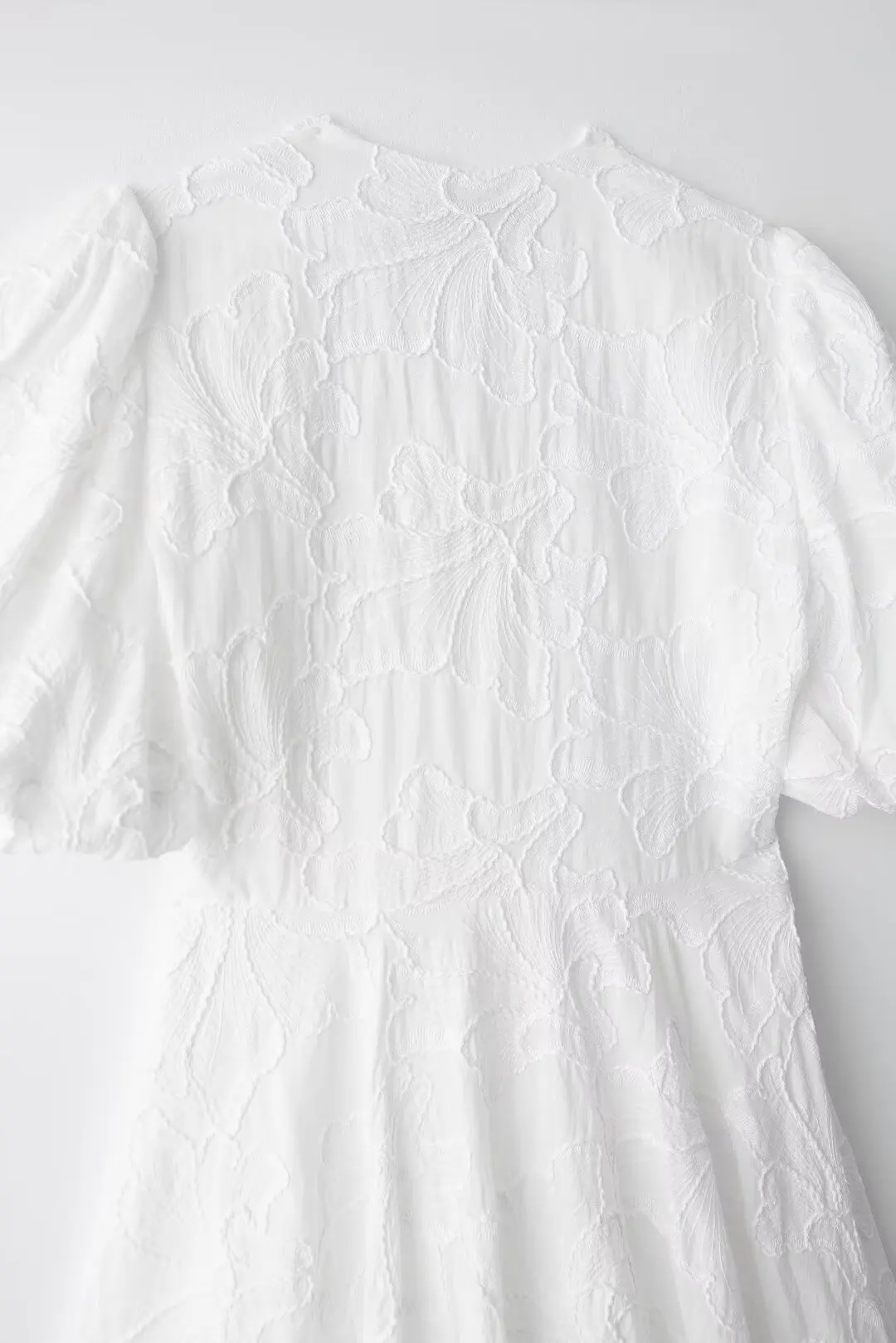 MQTIME - Solid Floral Embroidered Voluminous Mini Dress V-Neck Puff Sleeve White Tutu Mini Dress Woman Elegant Party Holiday Wear