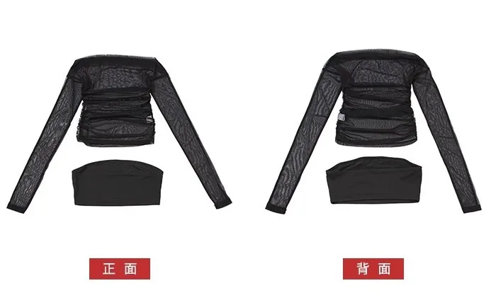 MQTIME - Spicy Girl One Shoulder T-Shirt Women'S Design Sense Perspective Mesh Versatile Sexy Slimming Top Two Piece Set