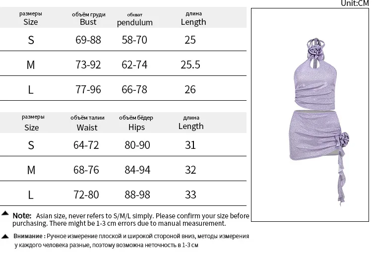 MQTIME - Spicy Summer Two Piece Set Women 3D Flower Halter Crop Top and Bodycon Skirts Sexy 2 Piece Suits Y2K Glitter Nightclub Outfits
