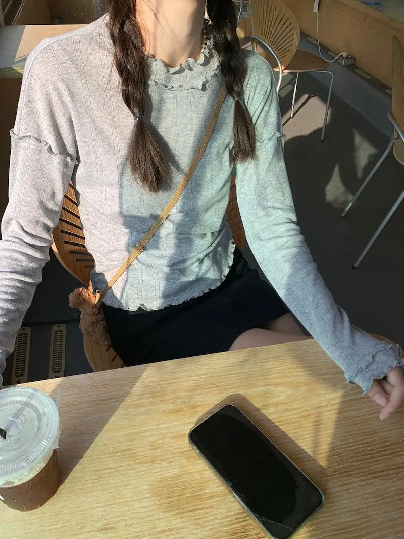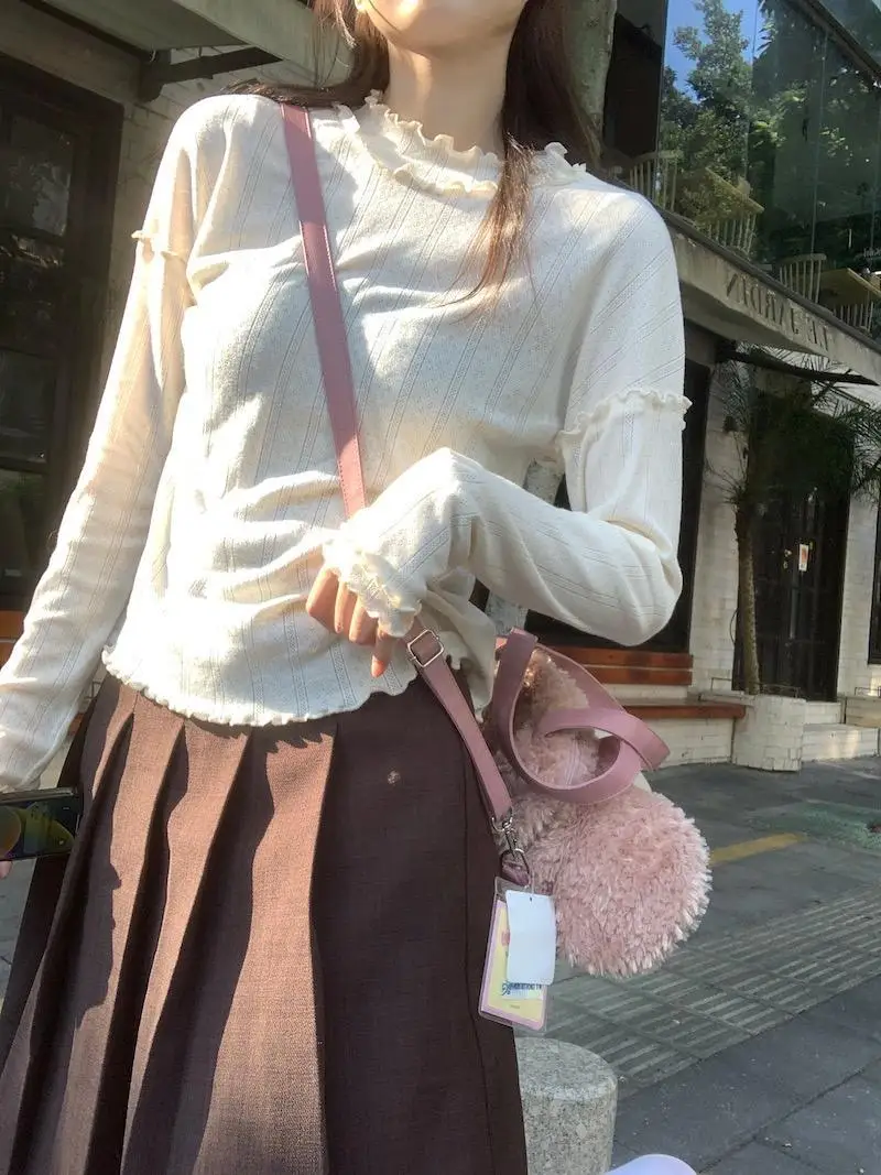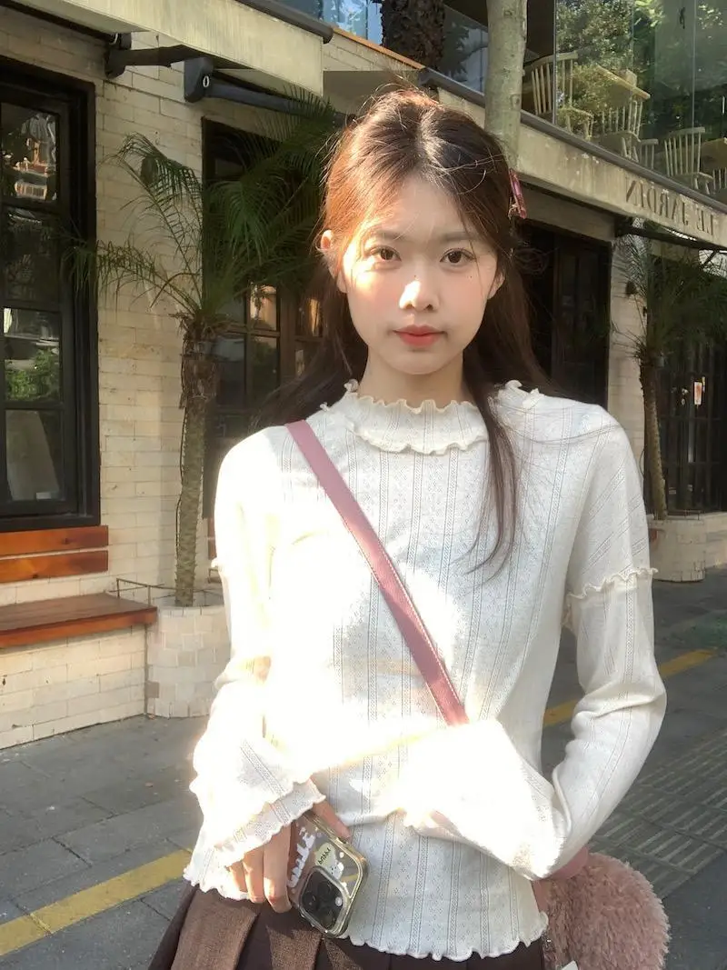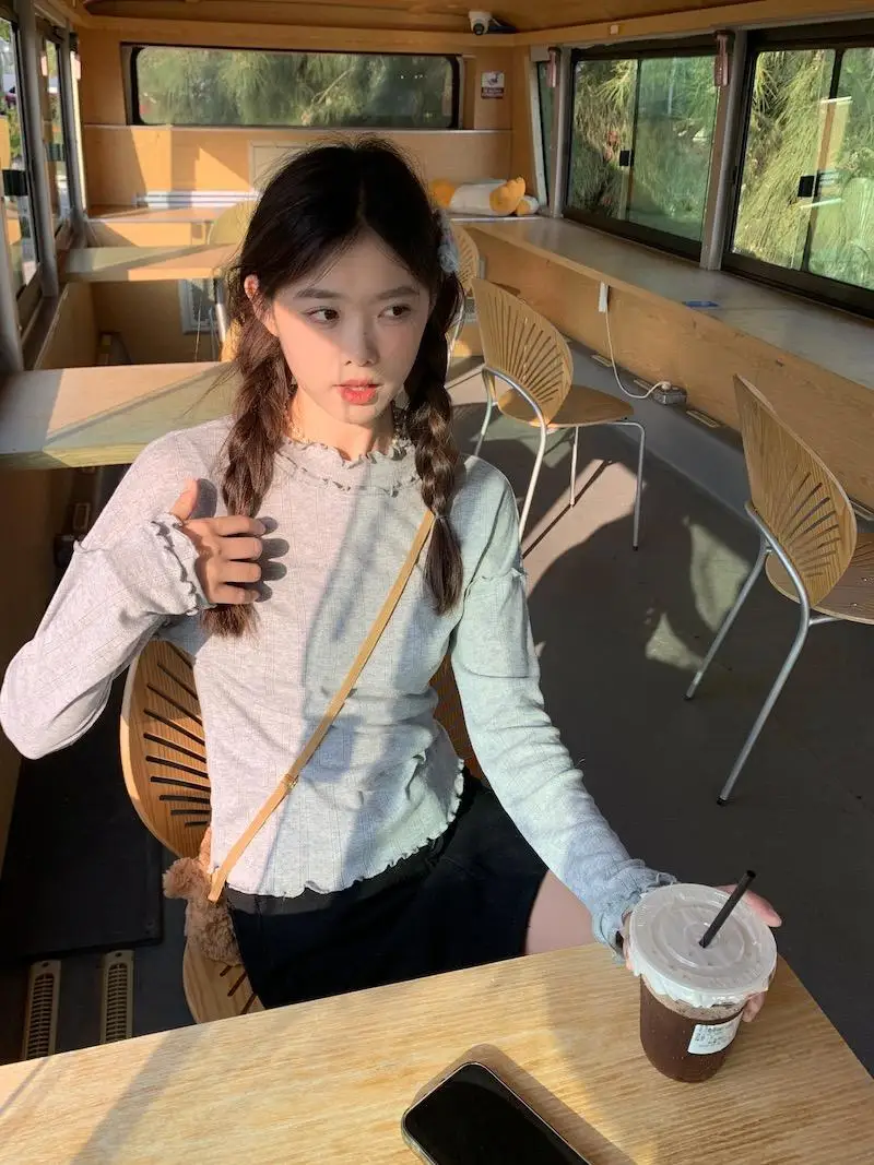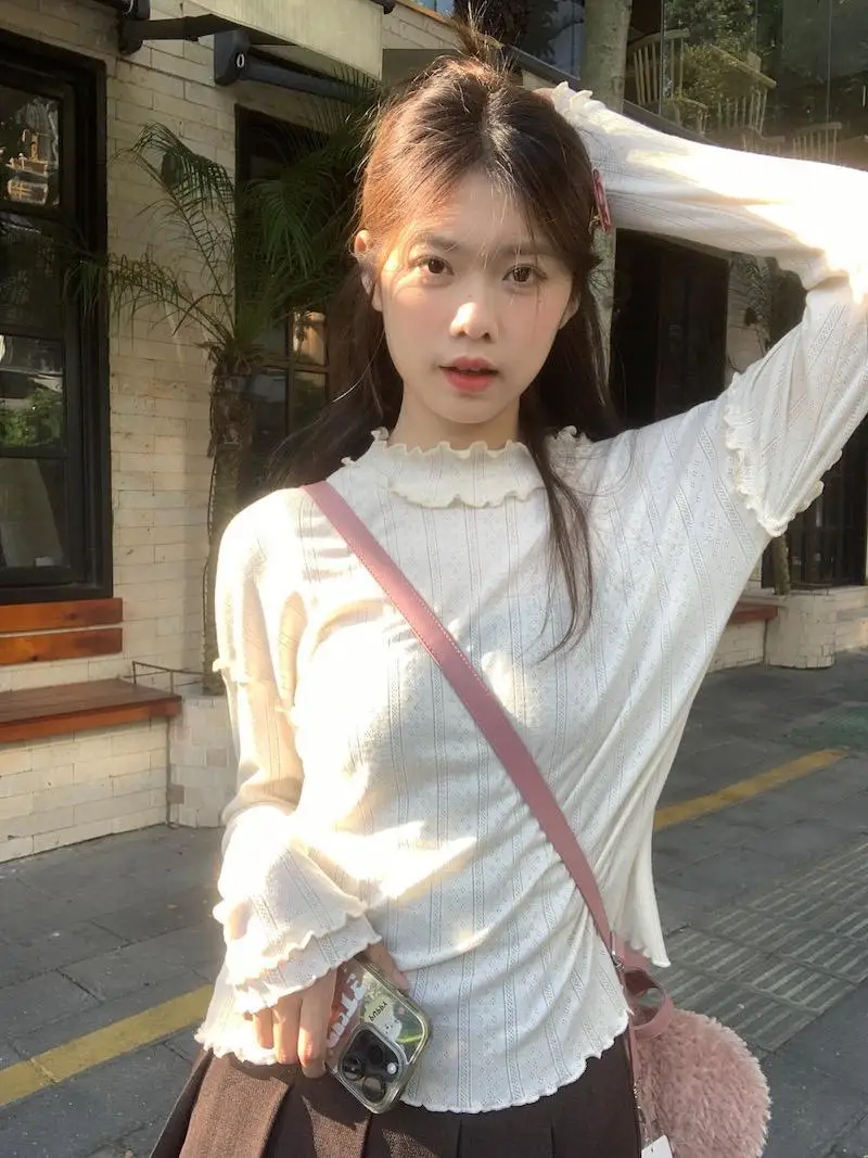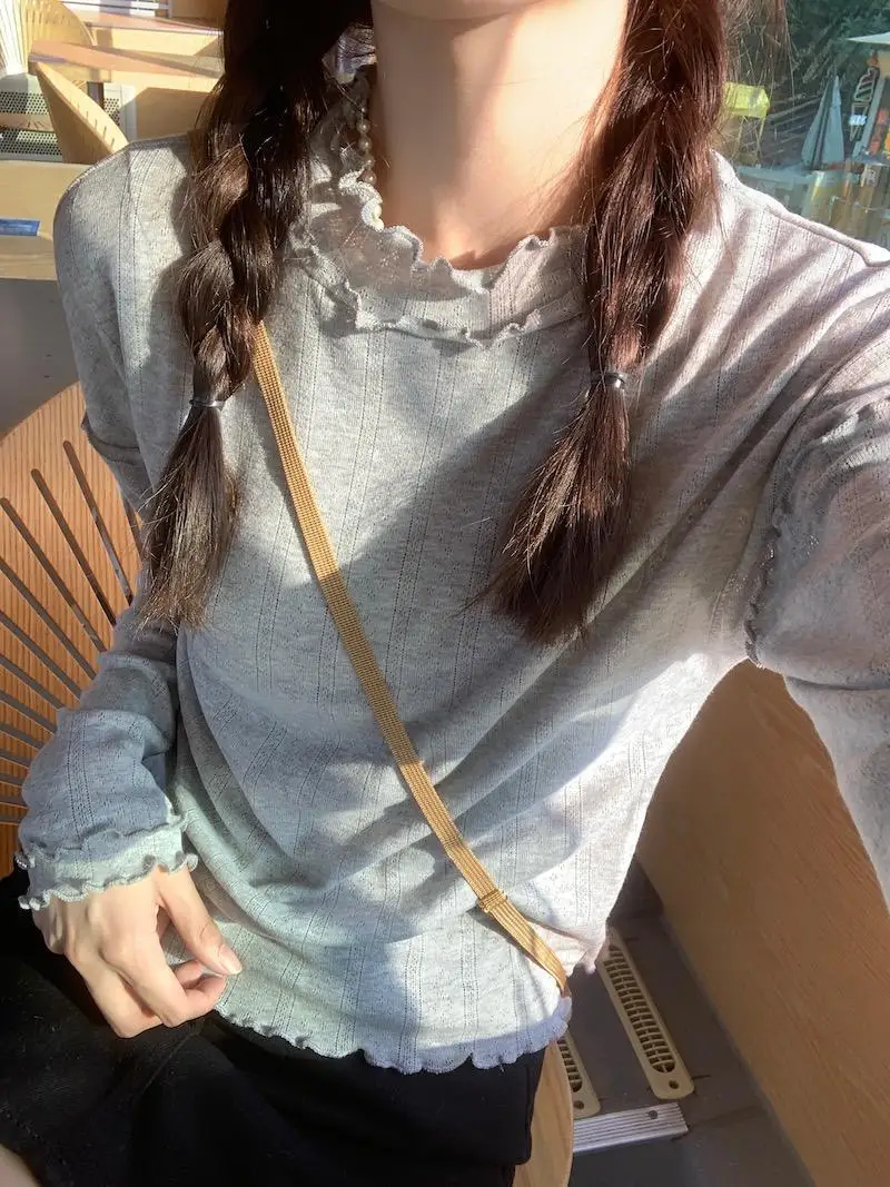 Mqtime - Spliced Long Sleeve Base Shirt for Women Autumn and Winter New Korean Design Sense Slimming Inside a T-shirt