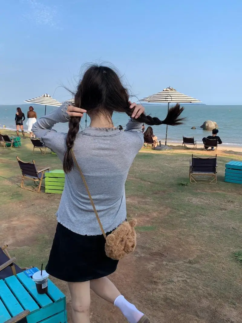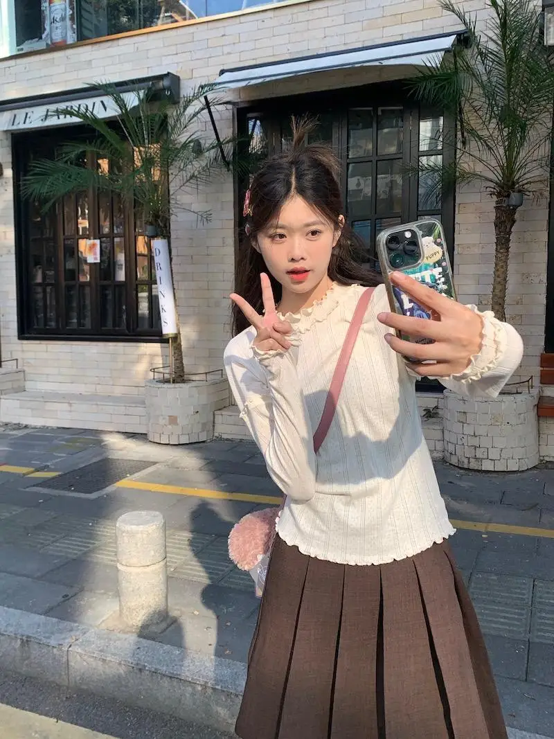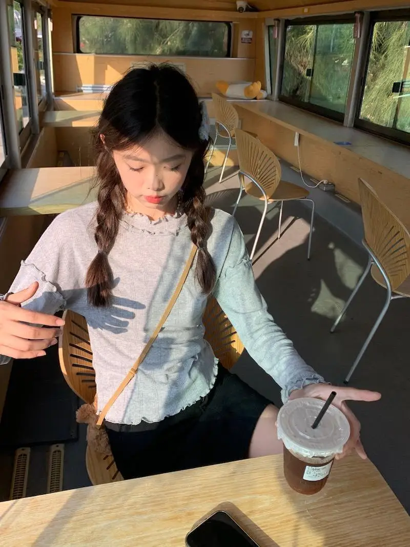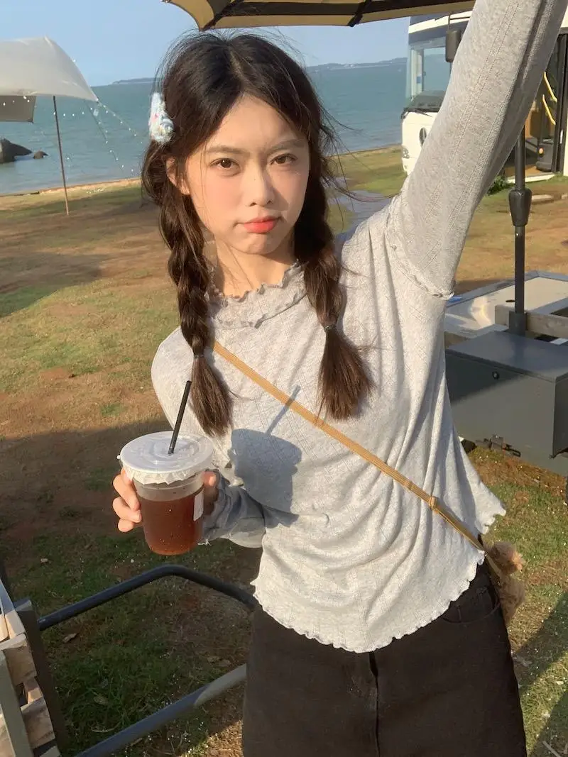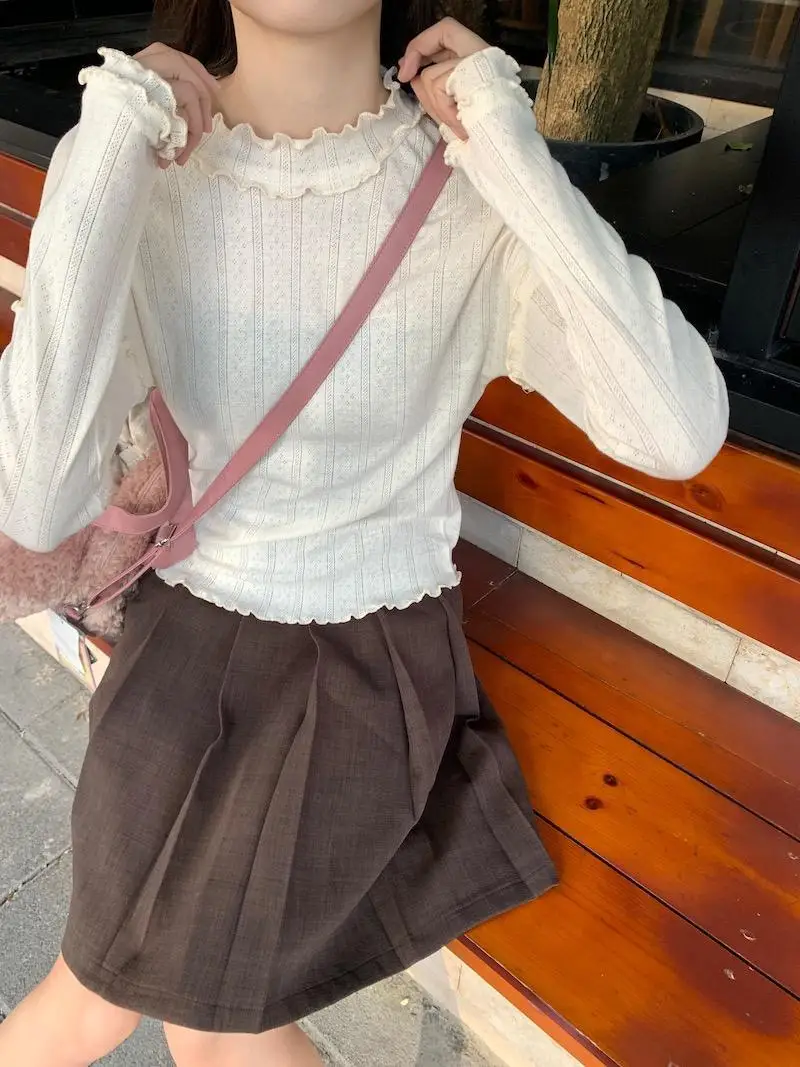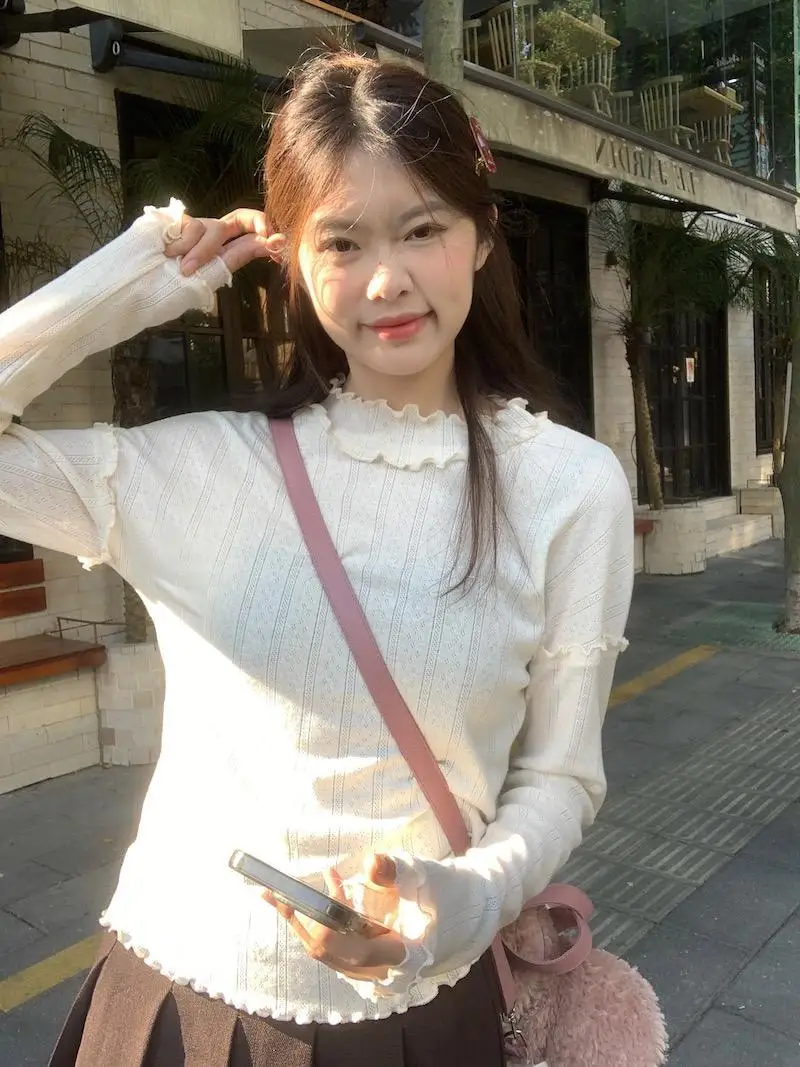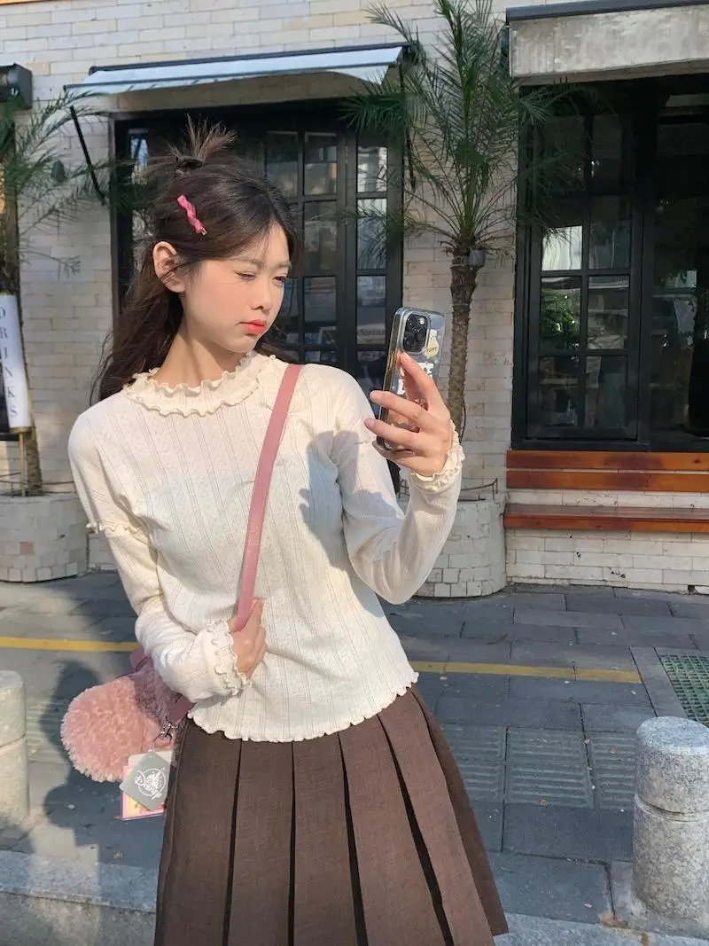 Mqtime - Spliced Long Sleeve Base Shirt for Women Autumn and Winter New Korean Design Sense Slimming Inside a T-shirt