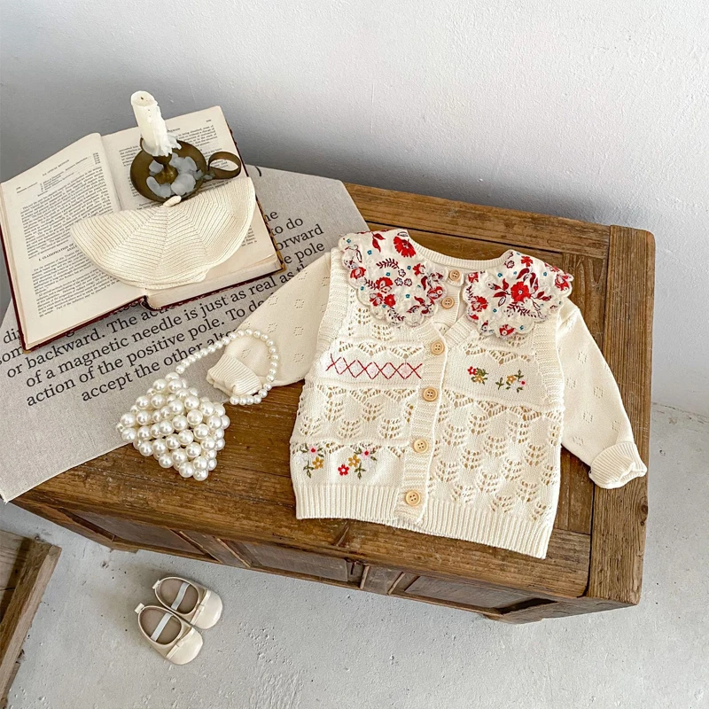 MQTIME - Spring and Autumn New Baby Clothing, 0-3 Year Old Female Baby, Versatile Cardigan Flower Embroidered Knitted Vest