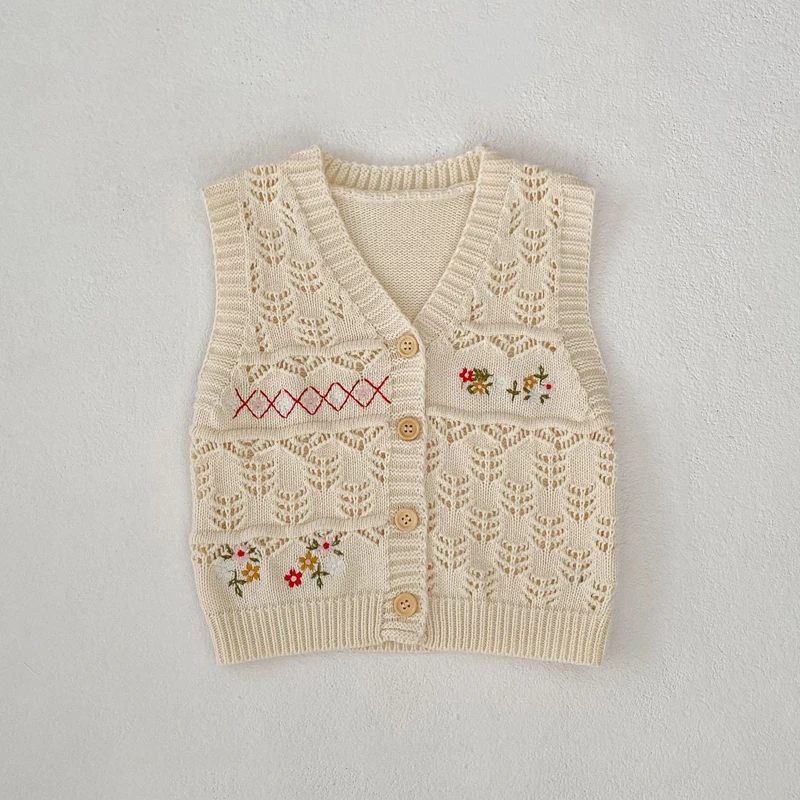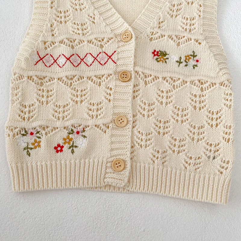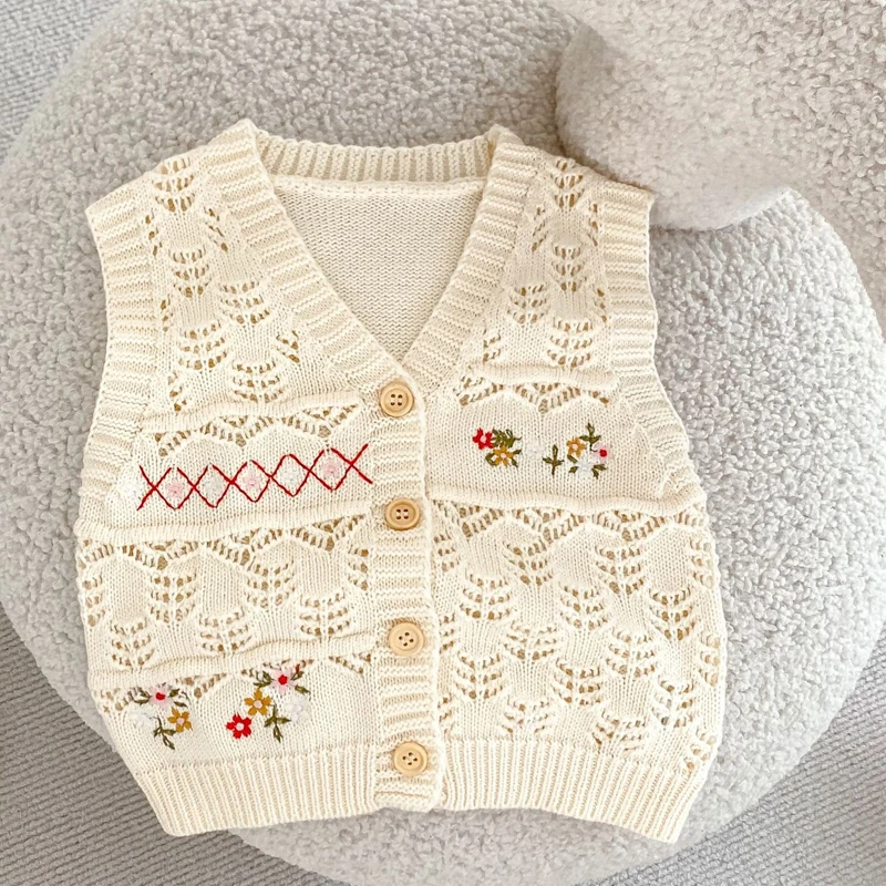 MQTIME  -  Spring and Autumn New Baby Clothing, 0-3 Year Old Female Baby, Versatile Cardigan Flower Embroidered Knitted Vest