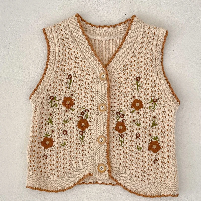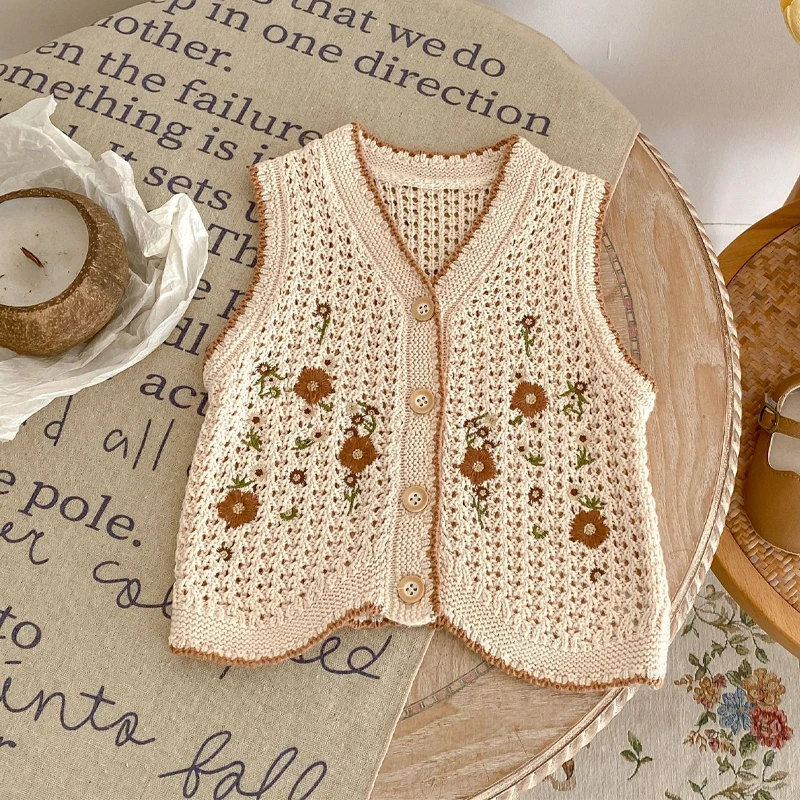 MQTIME  -  Spring and Autumn New Baby Clothing, 0-3year-old Female Baby, Embroidered Knitted Sweater, Vest Small Coat