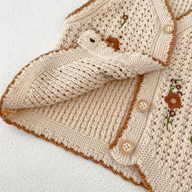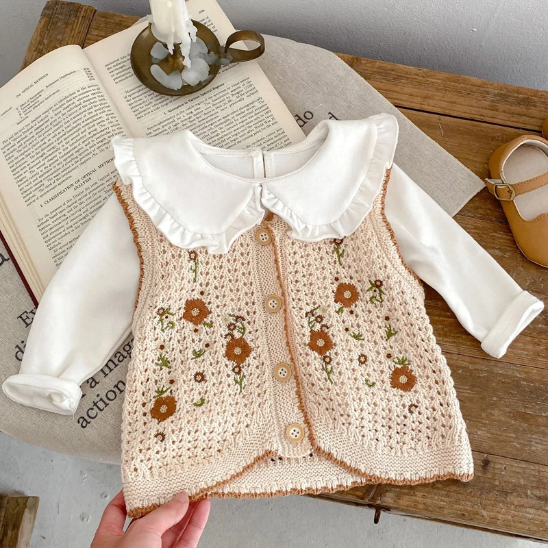 MQTIME - Spring and Autumn New Baby Clothing, 0-3year-old Female Baby, Embroidered Knitted Sweater, Vest Small Coat