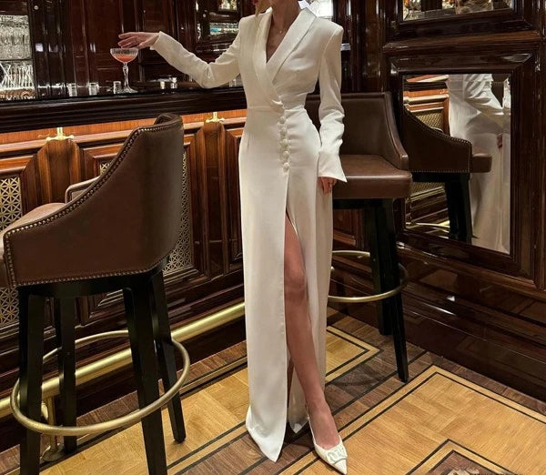 MQTIME - Spring and Autumn New Party Dress Skirt Women's High-end V-neck Long Sleeve Temperament High-waisted Slit French Dress
