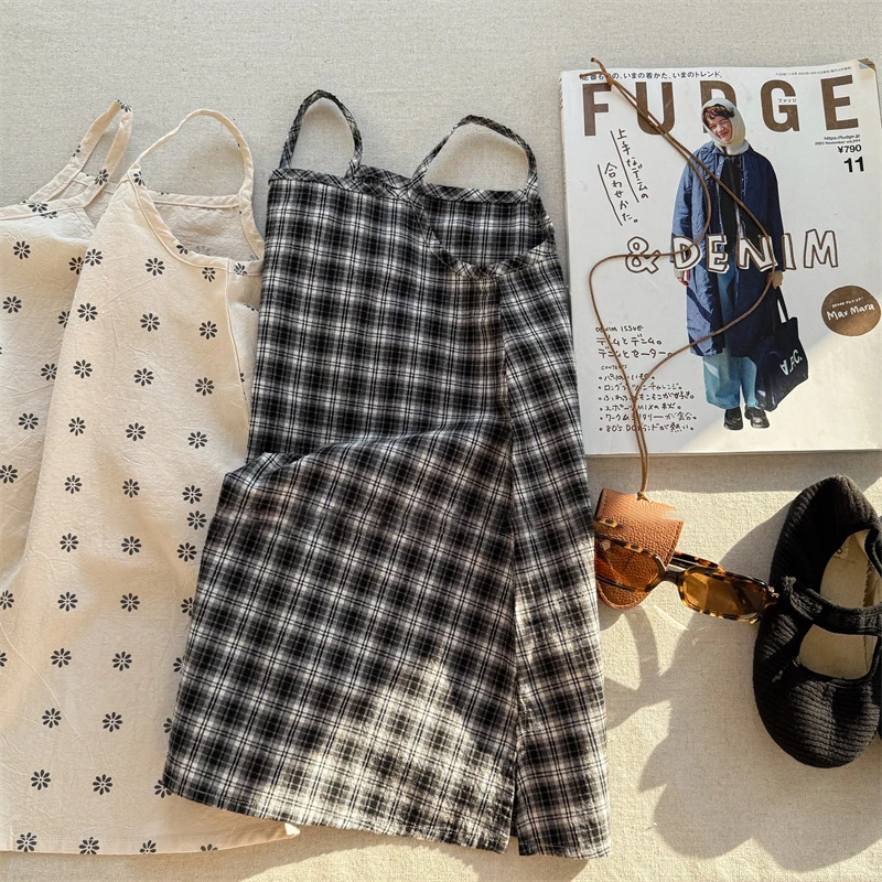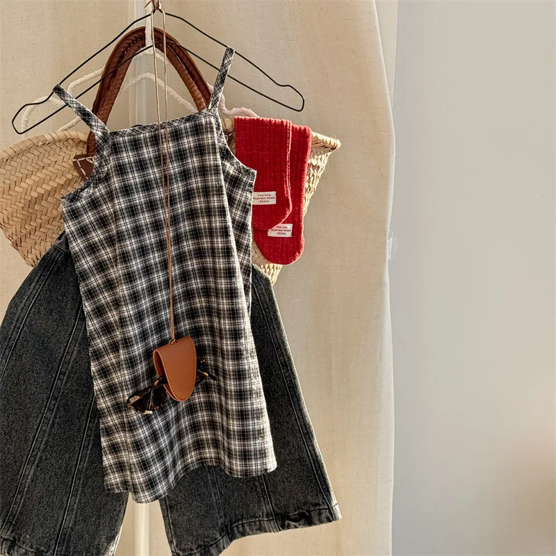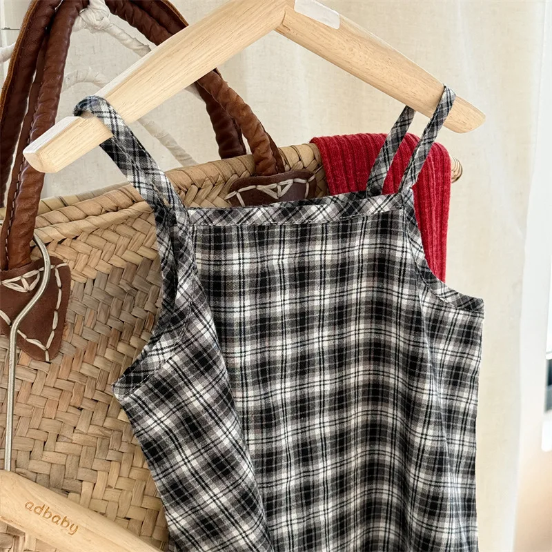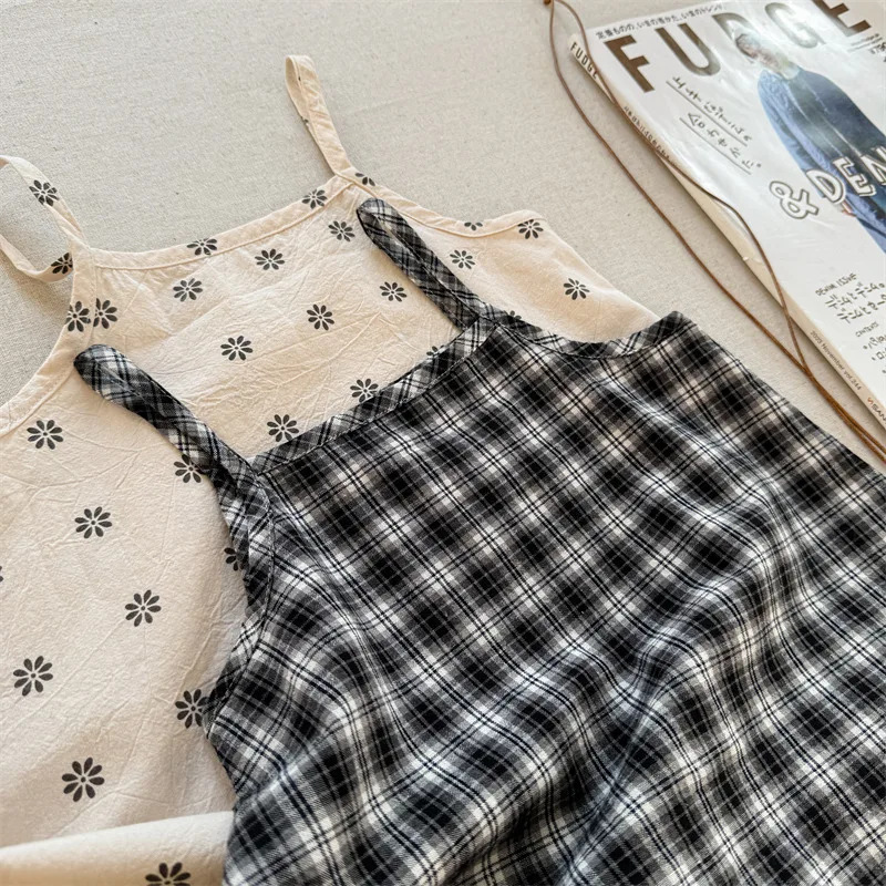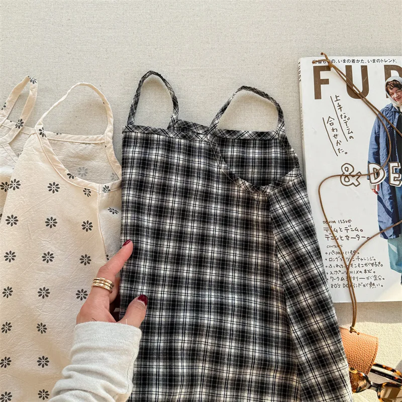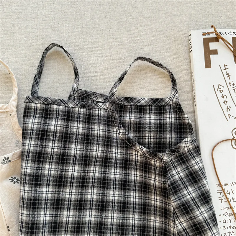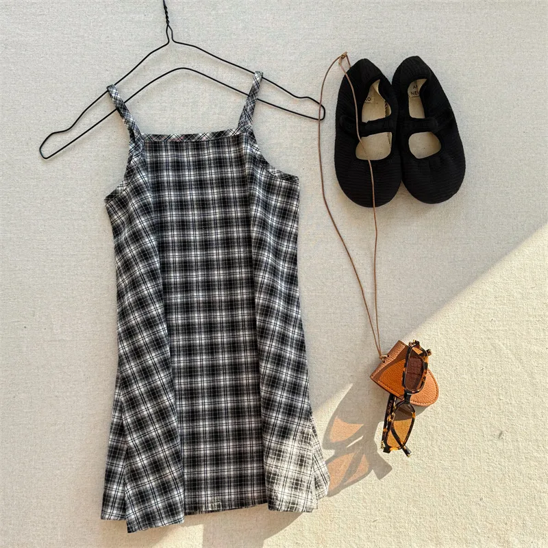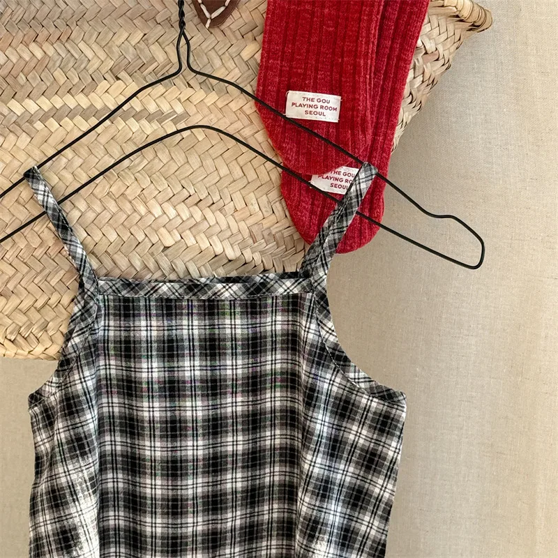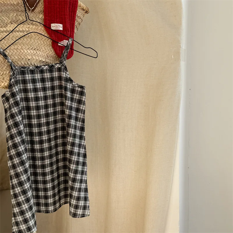MQTIME - Spring and Summer Girls' Clothing Korean Kid's Sleeveless Camisole Dress Children's Classic Plaid Slings Dress Match with Top