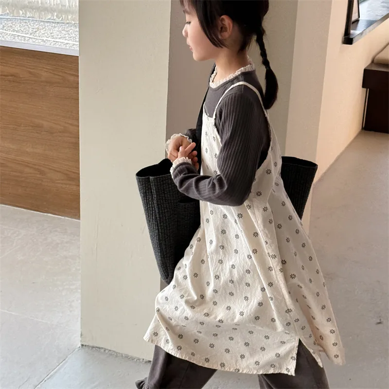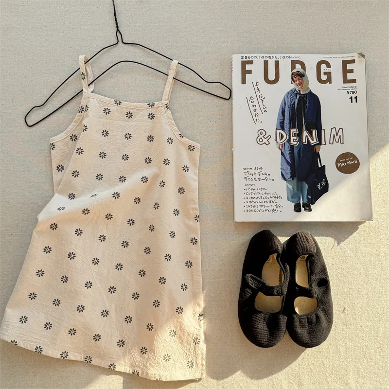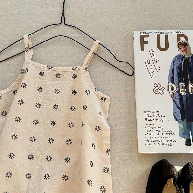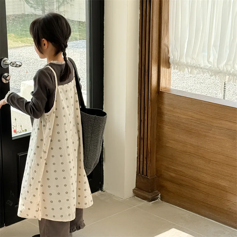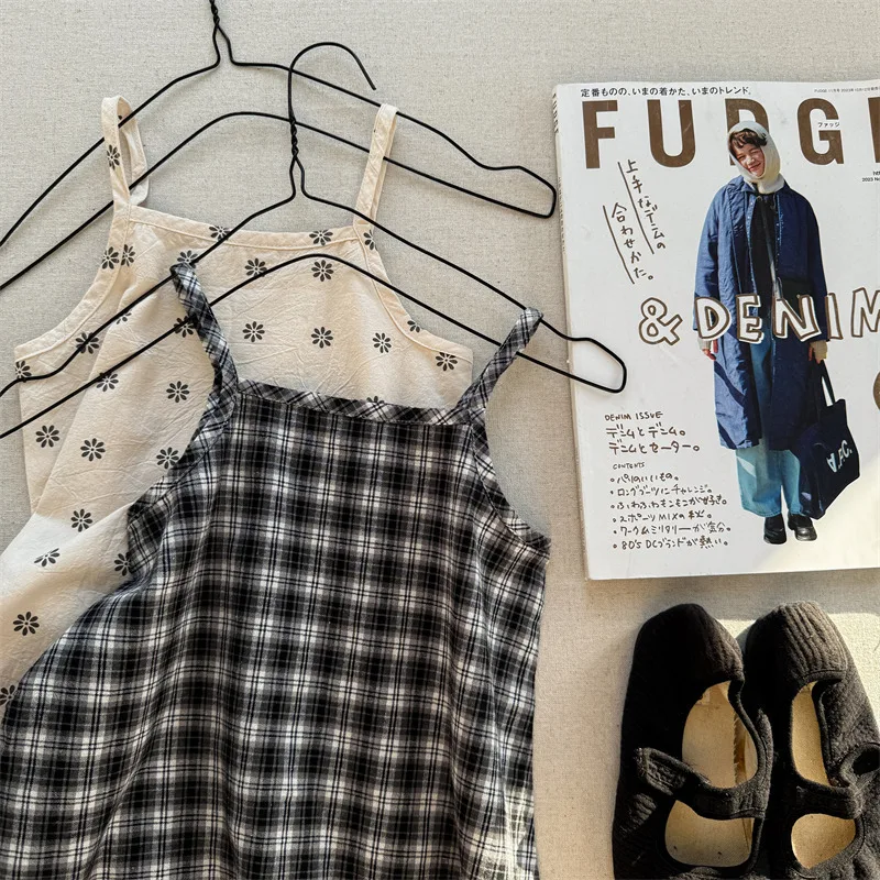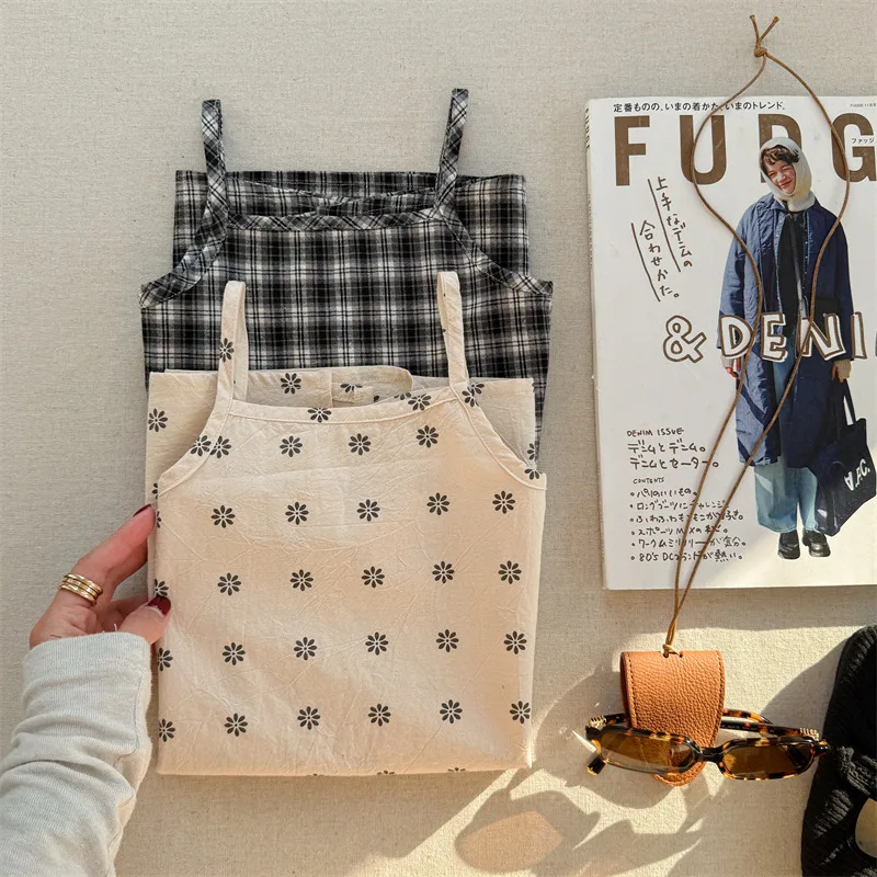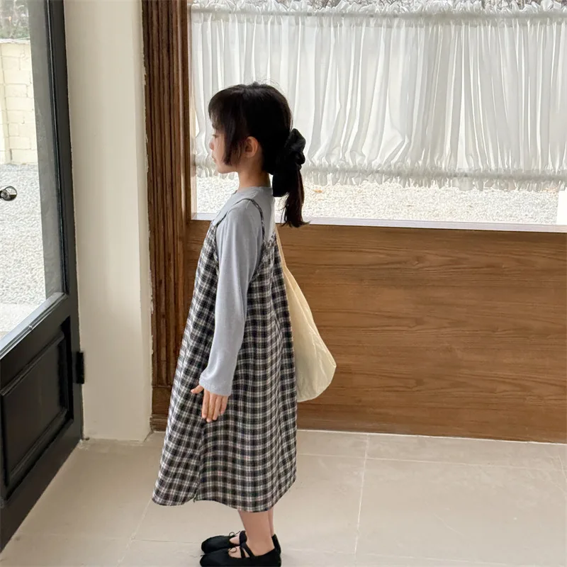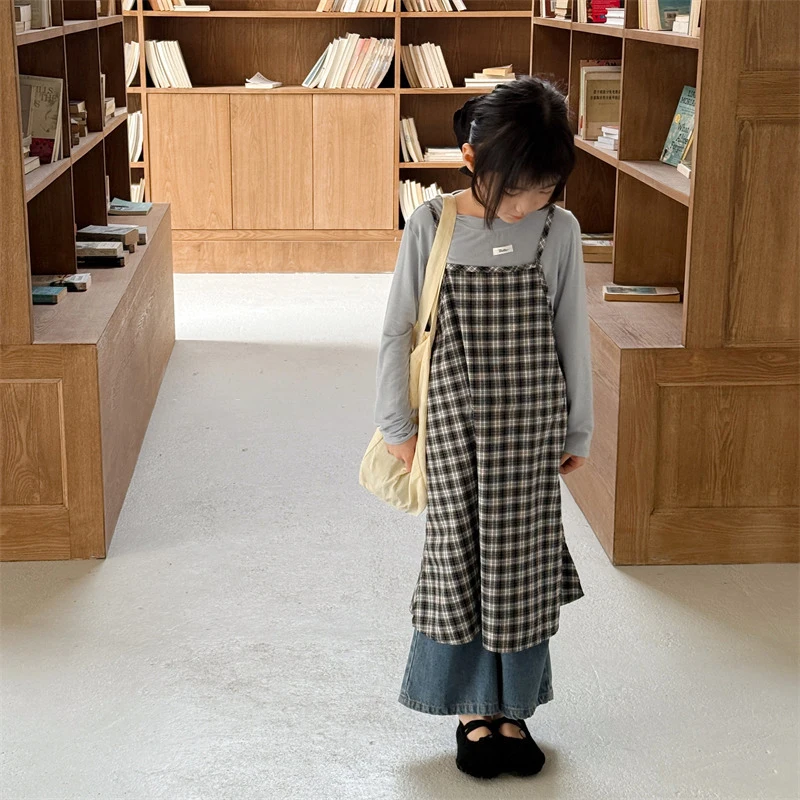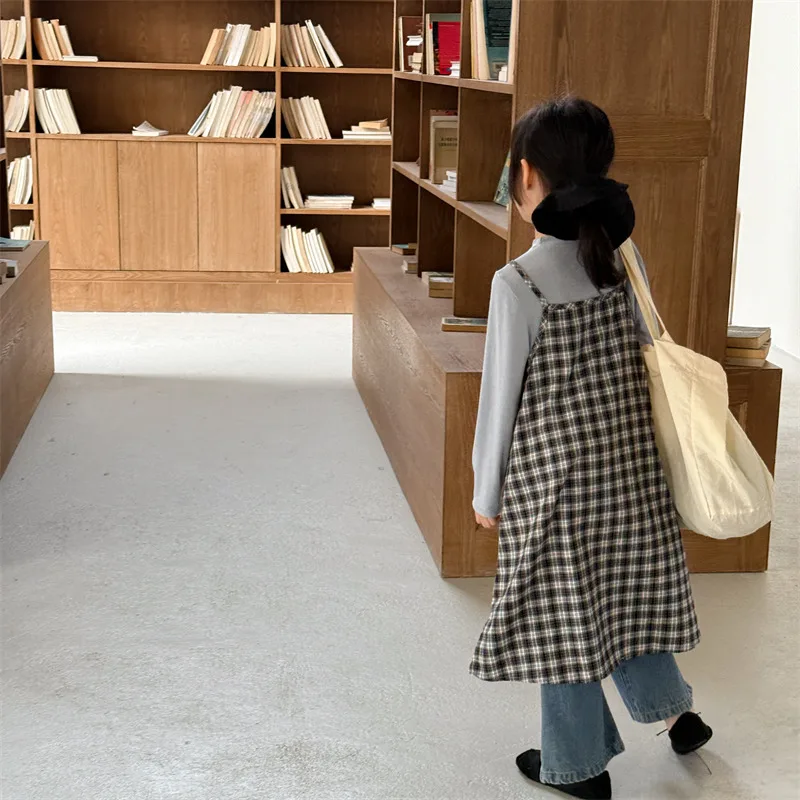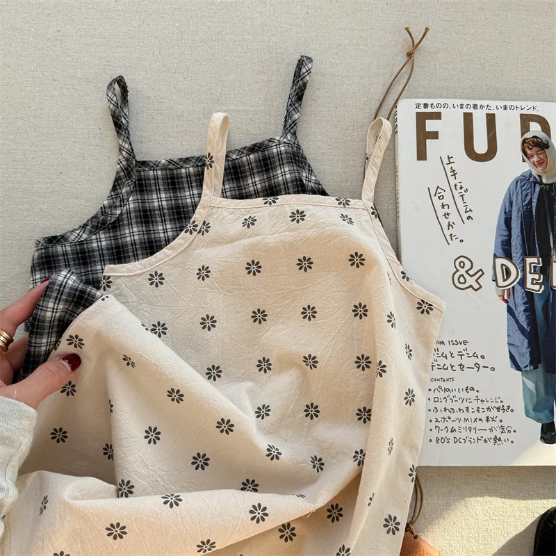 MQTIME - Spring and Summer Girls' Clothing Korean Kid's Sleeveless Camisole Dress Children's Classic Plaid Slings Dress Match with Top