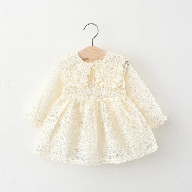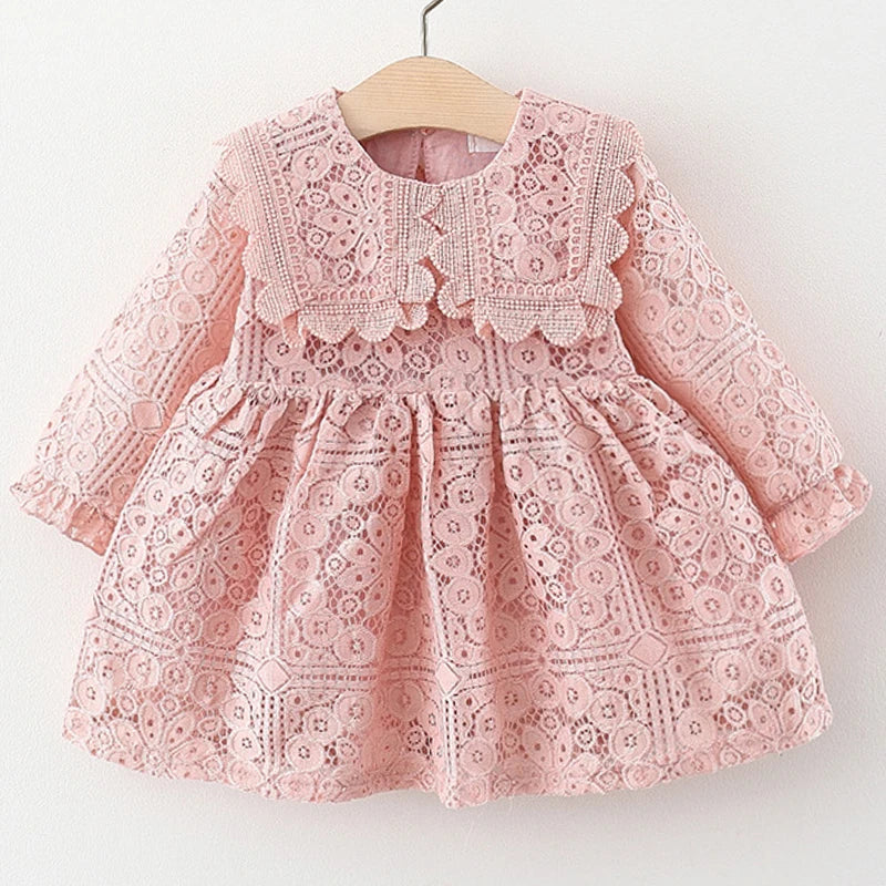MQTIME - Spring Autumn Toddler Girl Clothes Korean Fashion Lace Doll Collar Long Sleeve Princess Birthday Baby Dresses Kids Dress BC1246