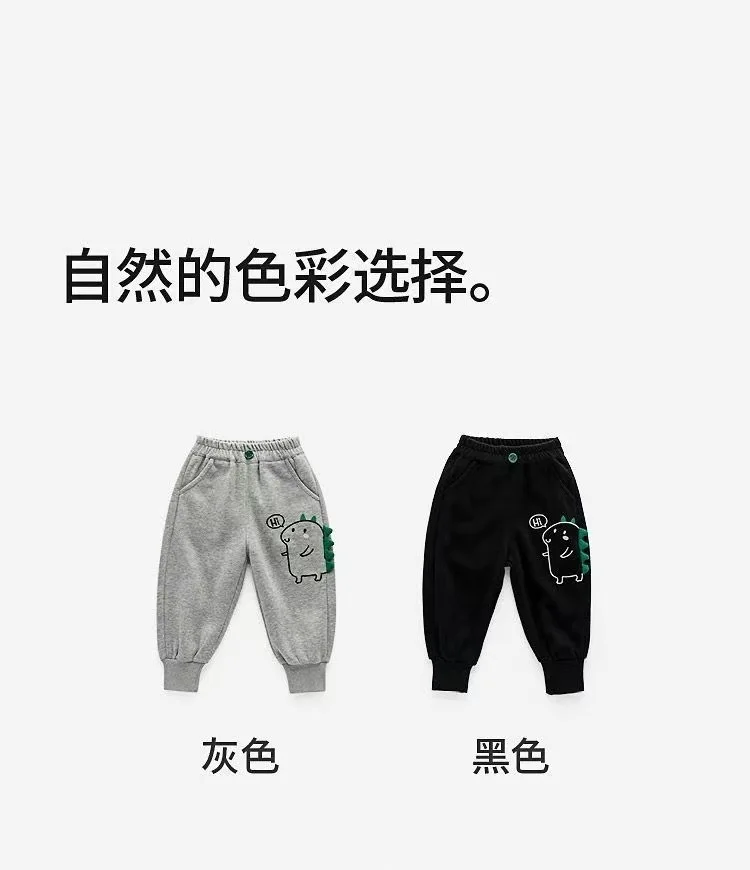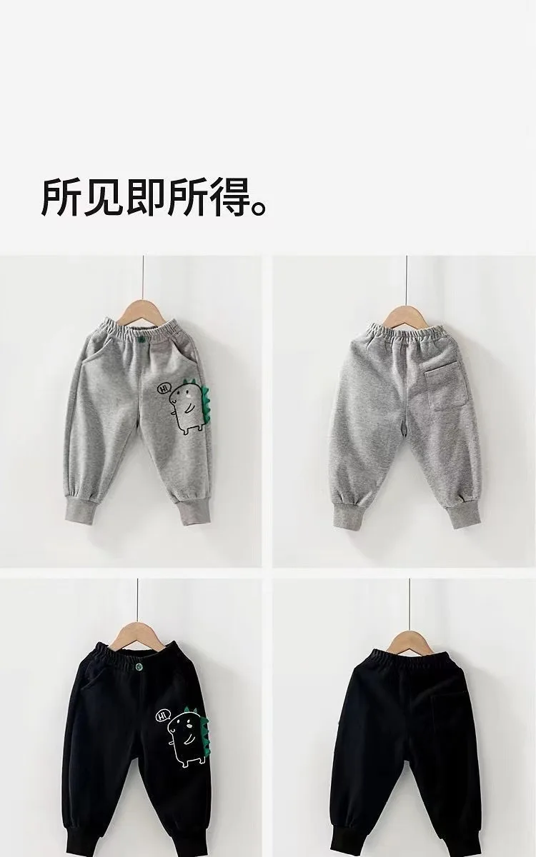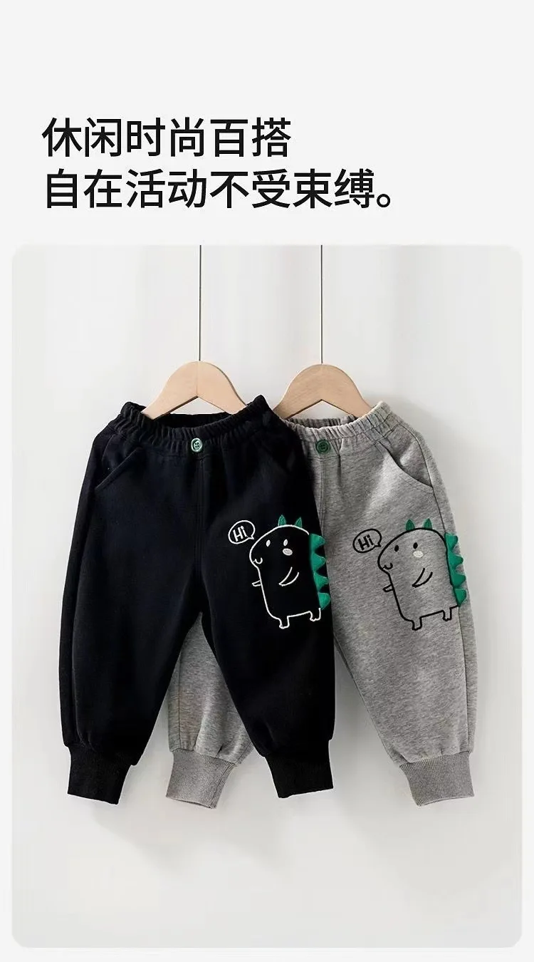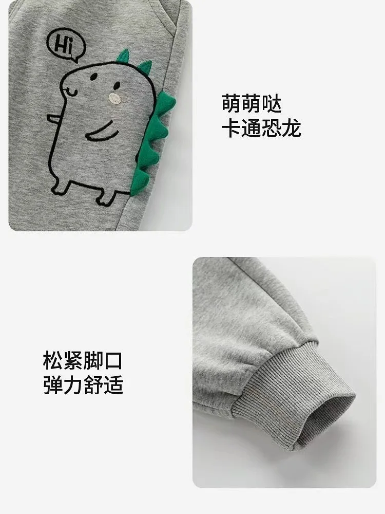 Mqtime Spring Kid Trousers Autumn Children Straight Thin Fleece Warm Sports Pant Baby Cartoon Dinosaur Jogger Sweatpant for Boy
