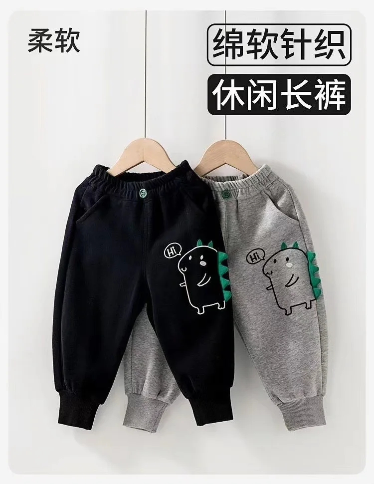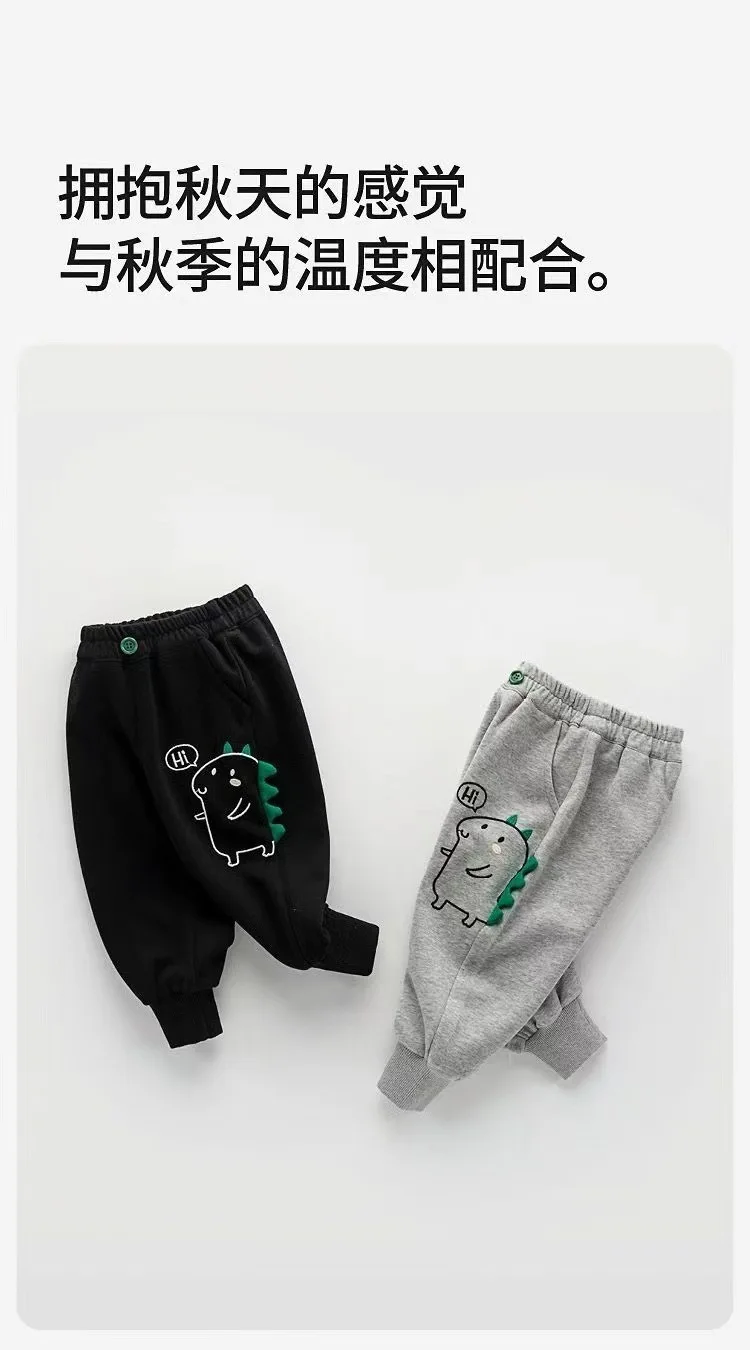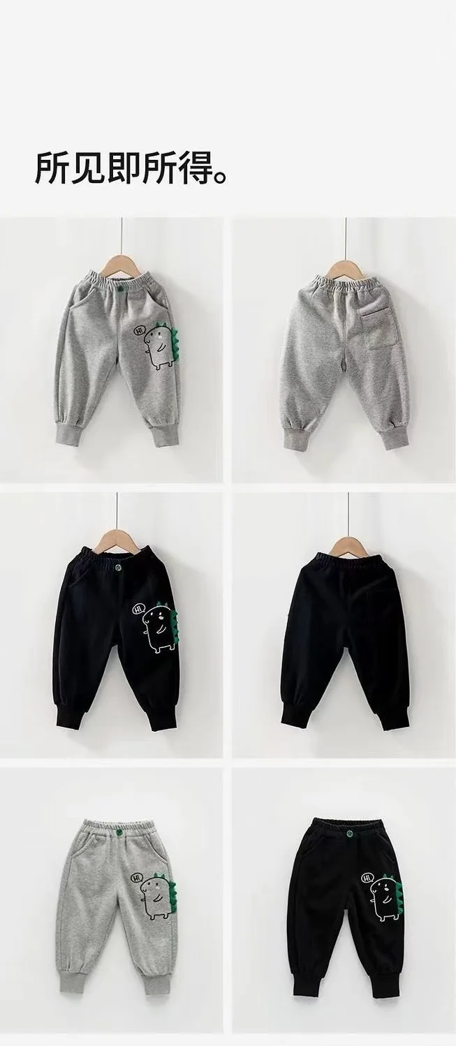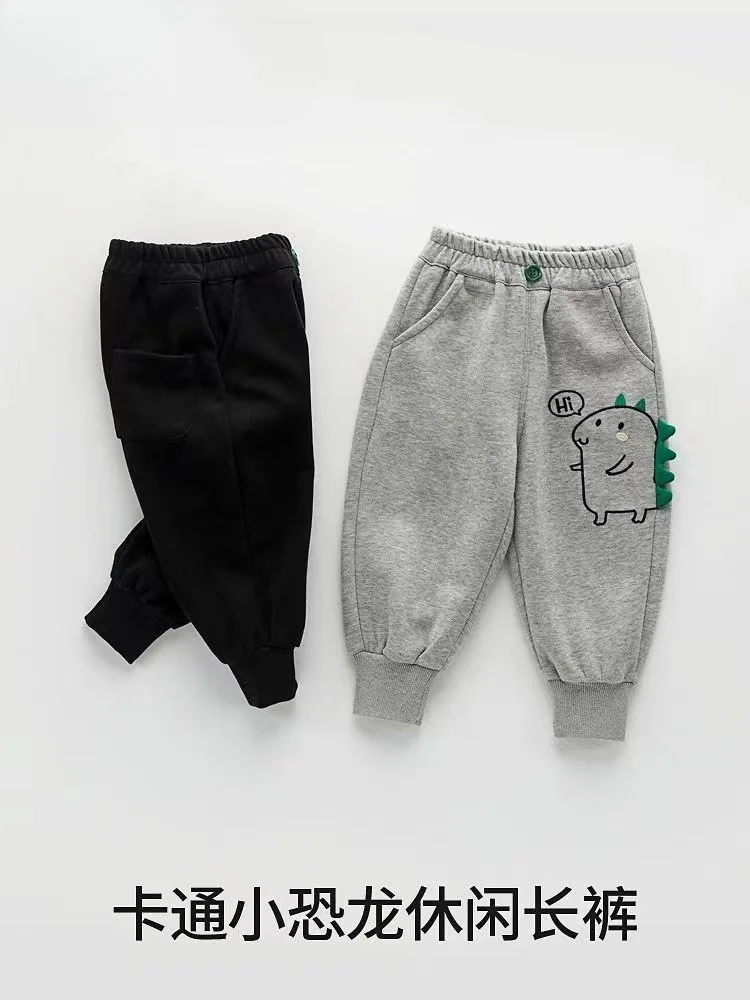 Mqtime Spring Kid Trousers Autumn Children Straight Thin Fleece Warm Sports Pant Baby Cartoon Dinosaur Jogger Sweatpant for Boy