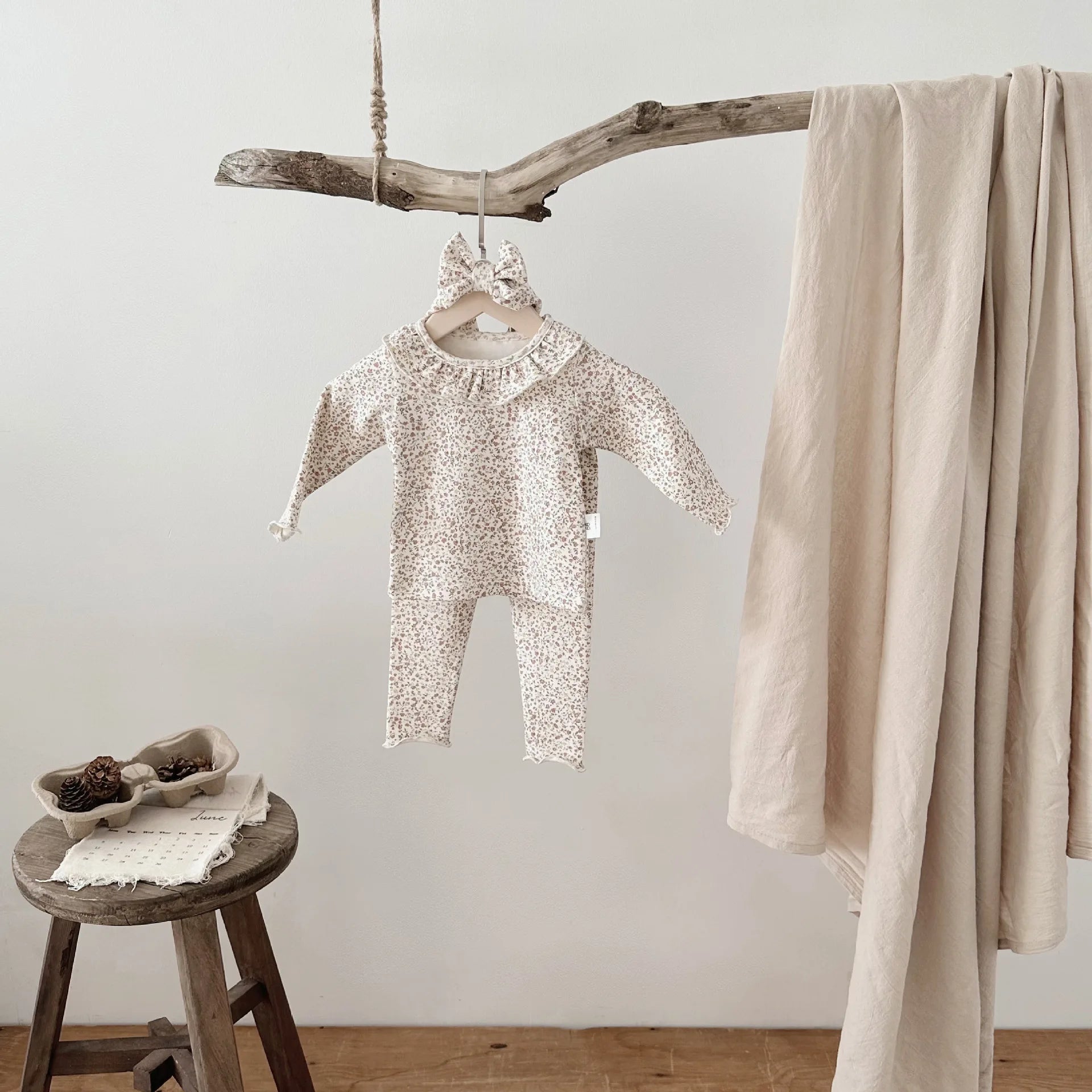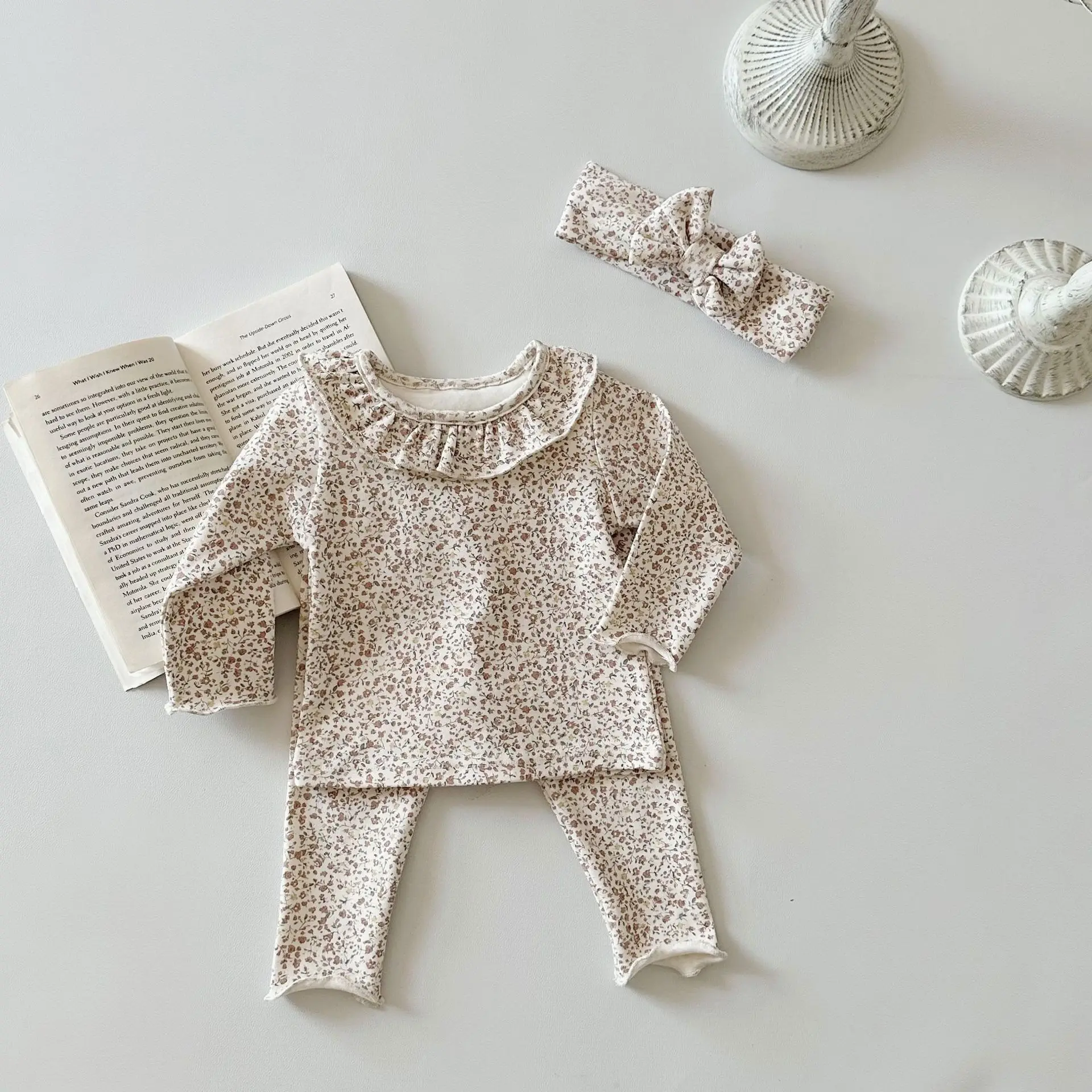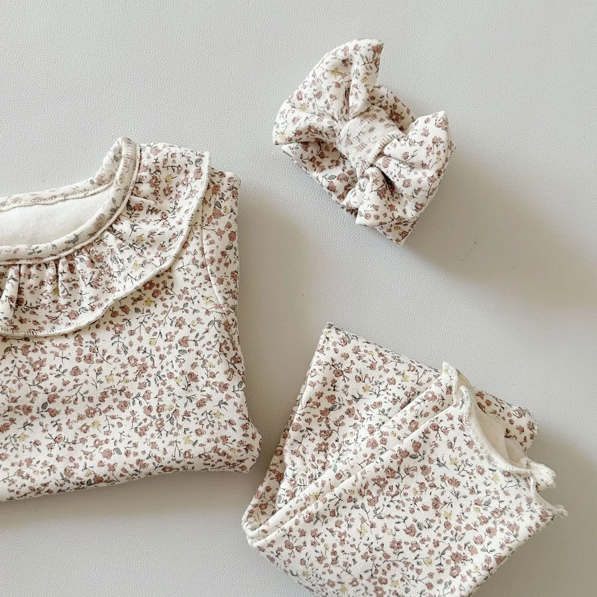MQTIME - Spring New Baby Long Sleeve Clothes Set Infant Girls Floral Tops +Leggings +Headband 3PCS Suit Cotton Toddler Outfits