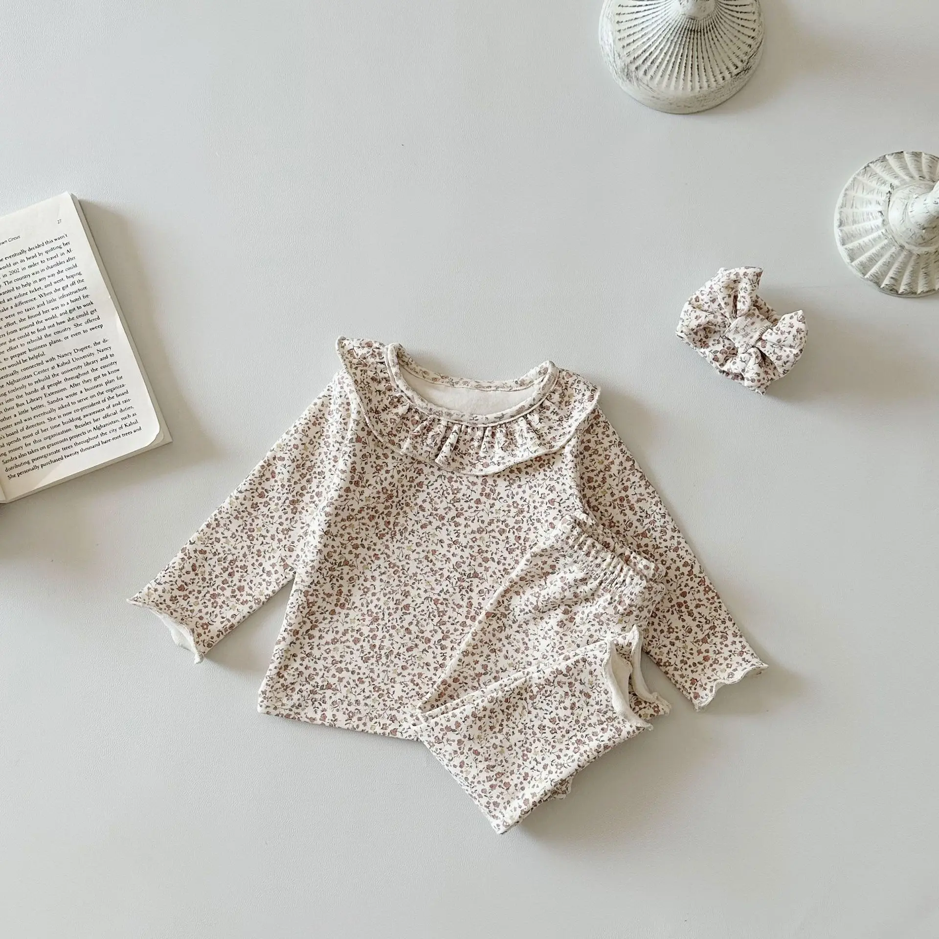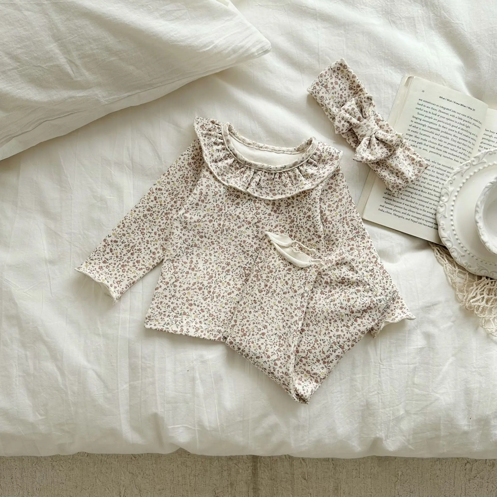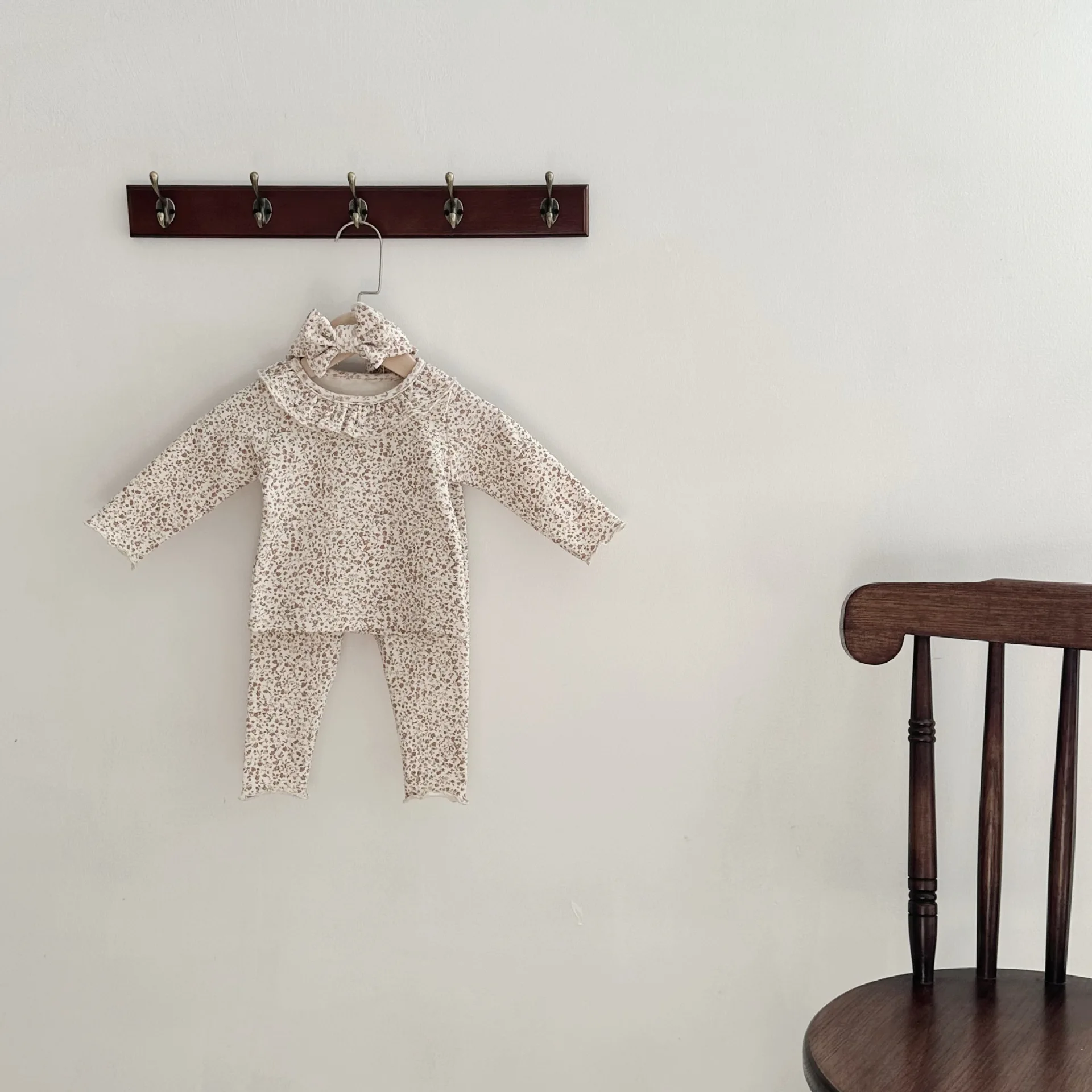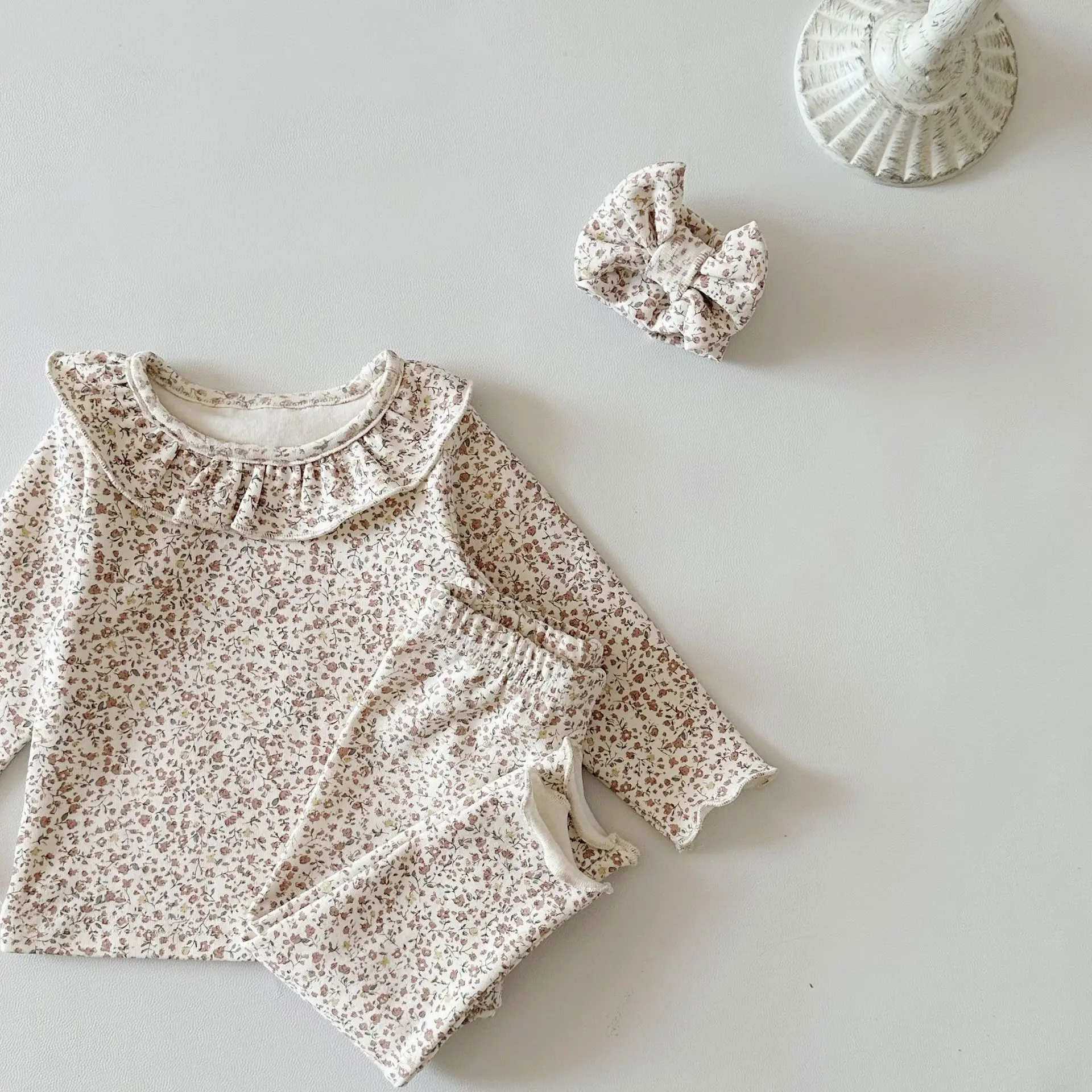 MQTIME - Spring New Baby Long Sleeve Clothes Set Infant Girls Floral Tops +Leggings +Headband 3PCS Suit Cotton Toddler Outfits