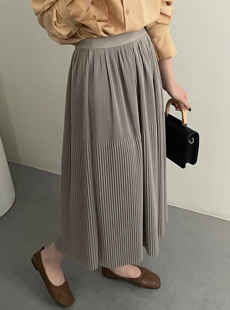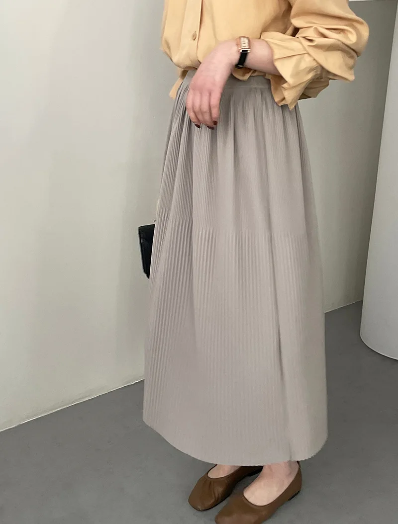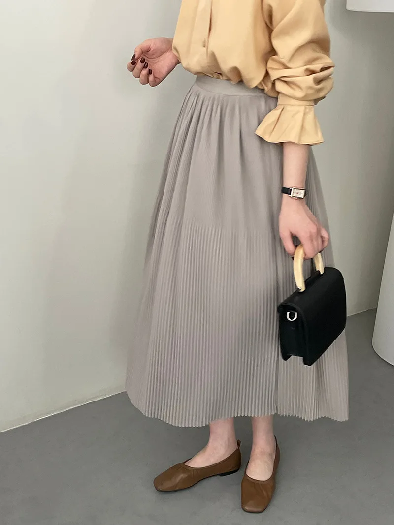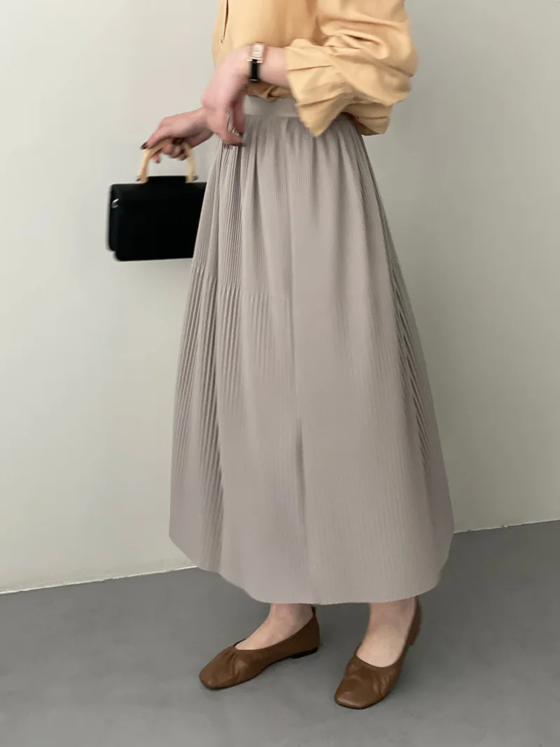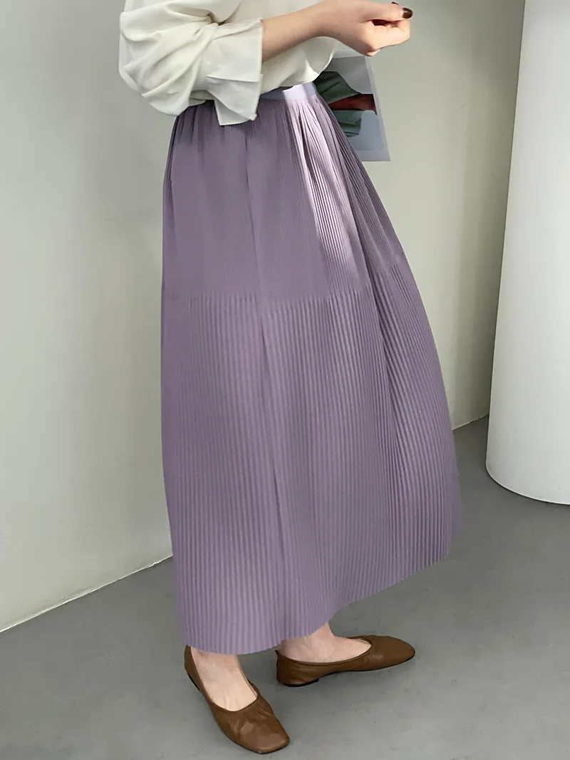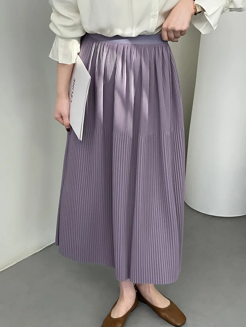 MQTIME - Spring Solid Women's Pleated Skirt Elastic Waist Slimming A-line Skirt