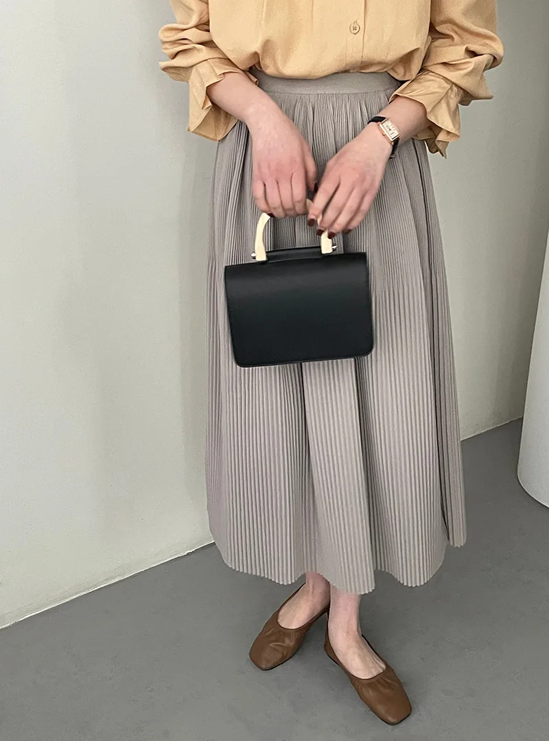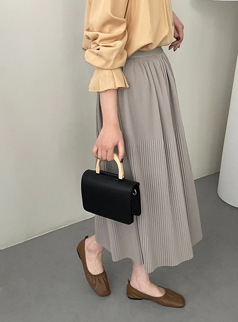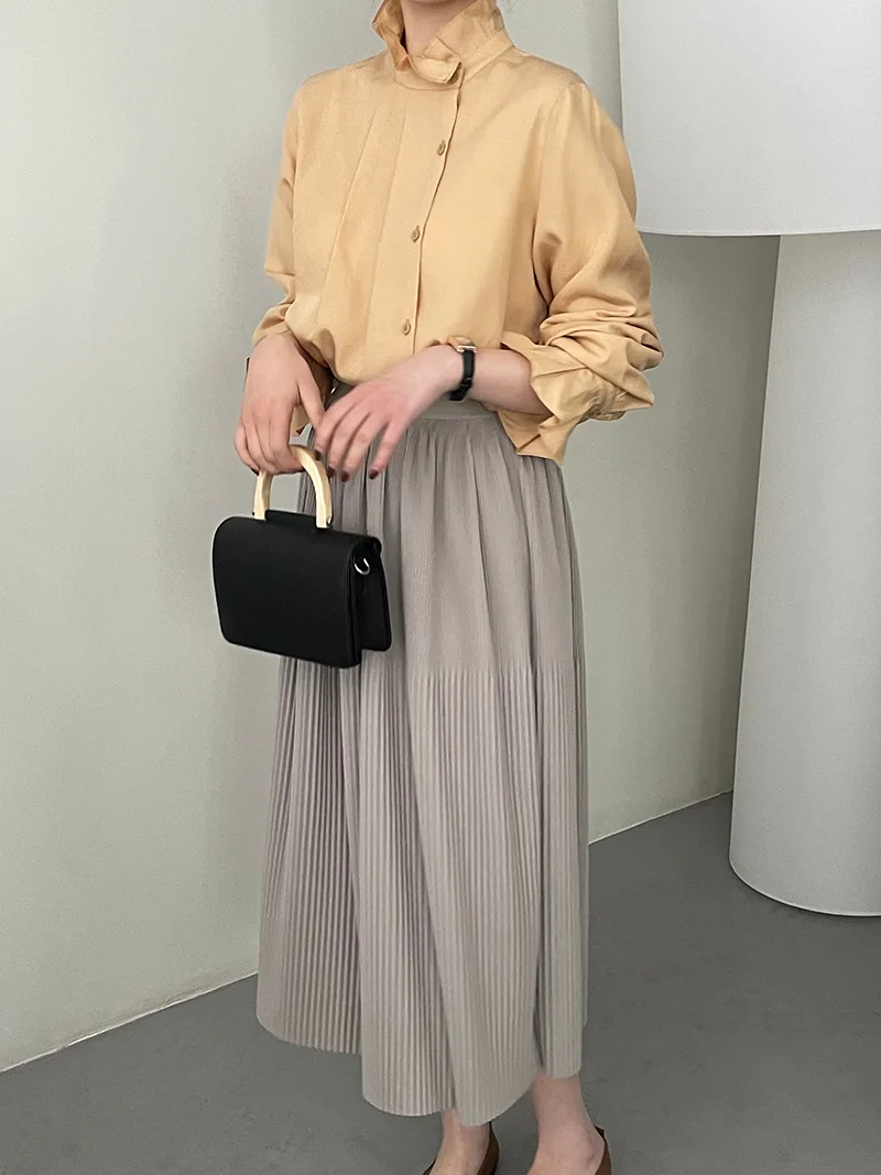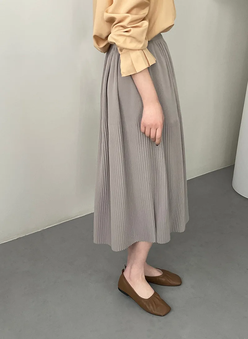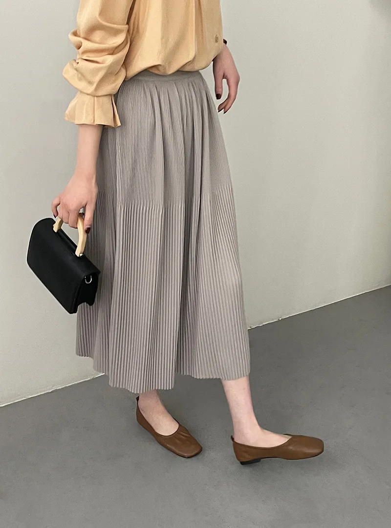 MQTIME - Spring Solid Women's Pleated Skirt Elastic Waist Slimming A-line Skirt