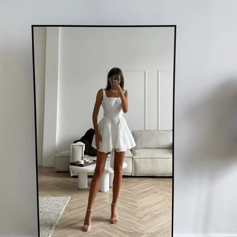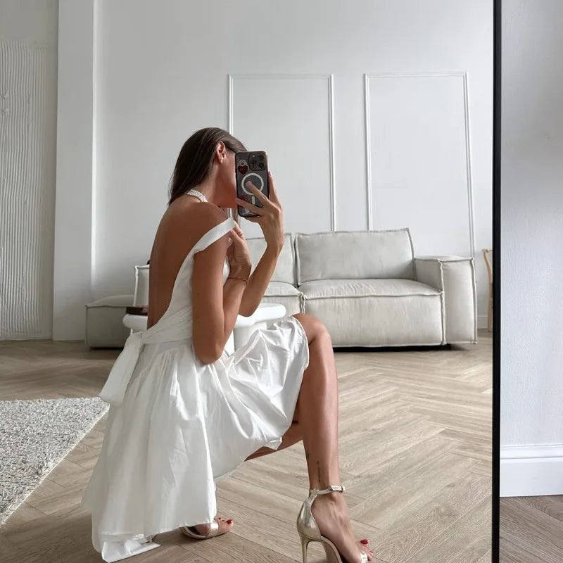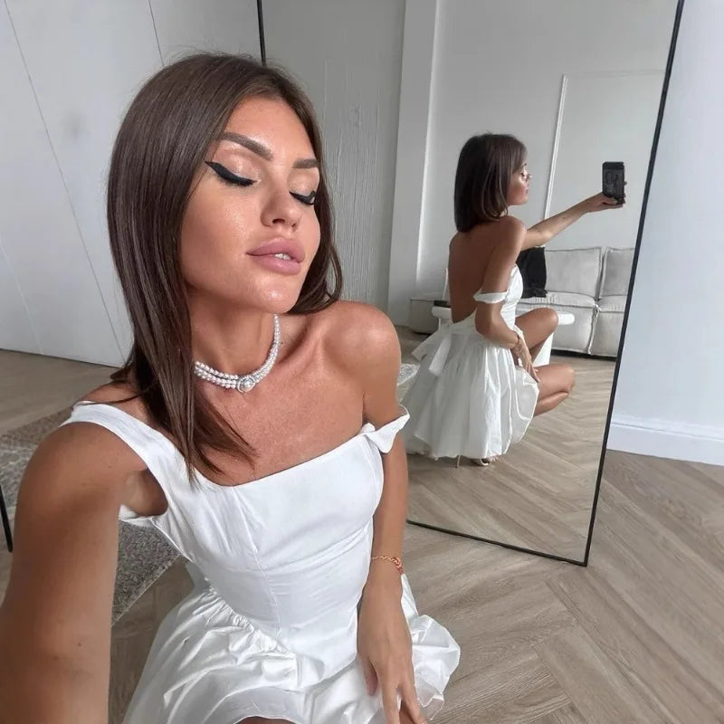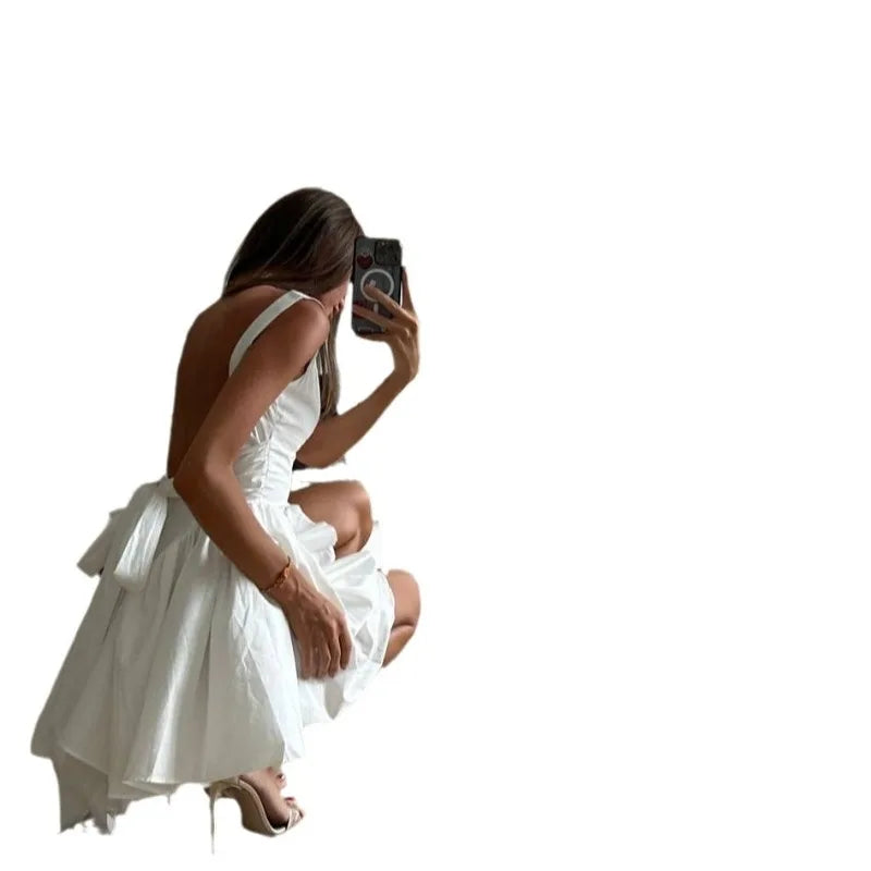 MQTIME - Spring/Summer New Design Style Strap Short Skirt for Women, Bareback Bow, Slimming and Slimming Dress