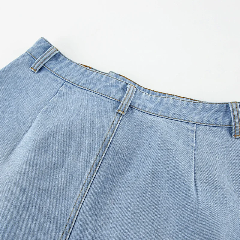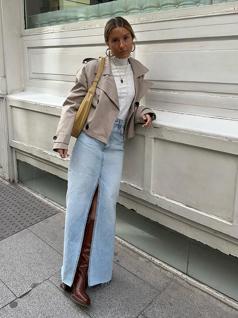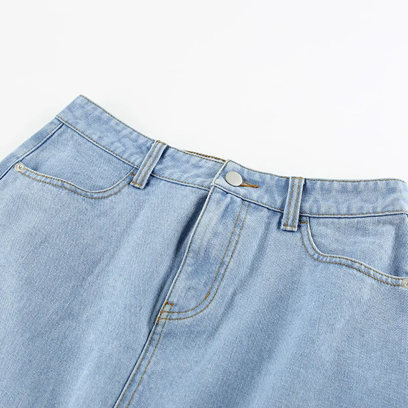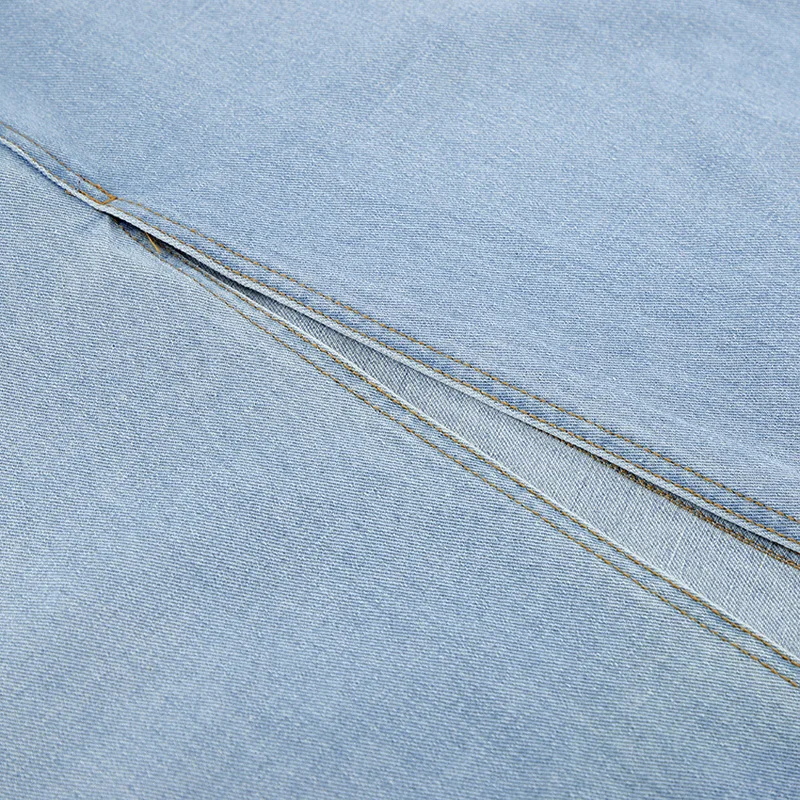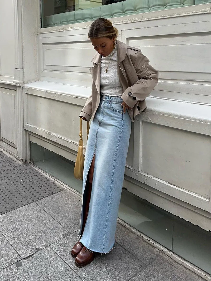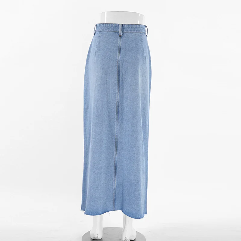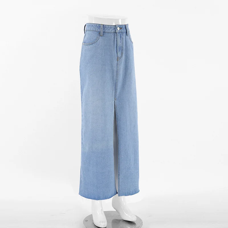 MQTIME - Spring Summer Women High Waist Vintage Solid Straight Maxi Denim Skirt With Slit